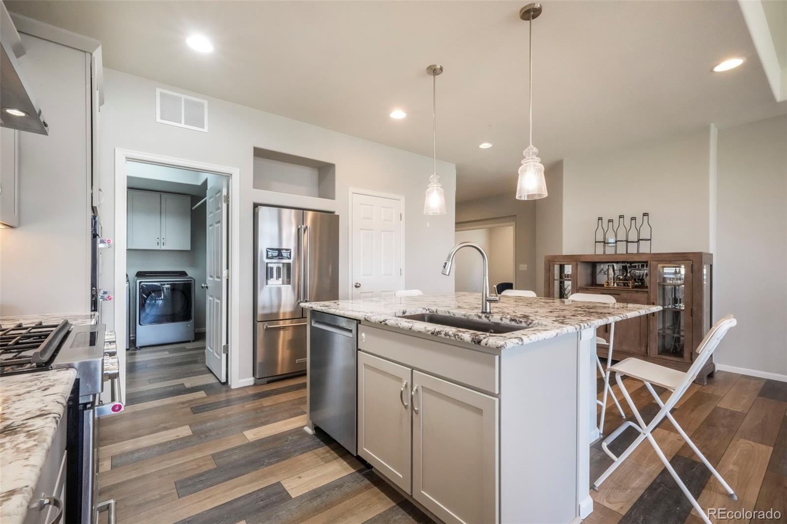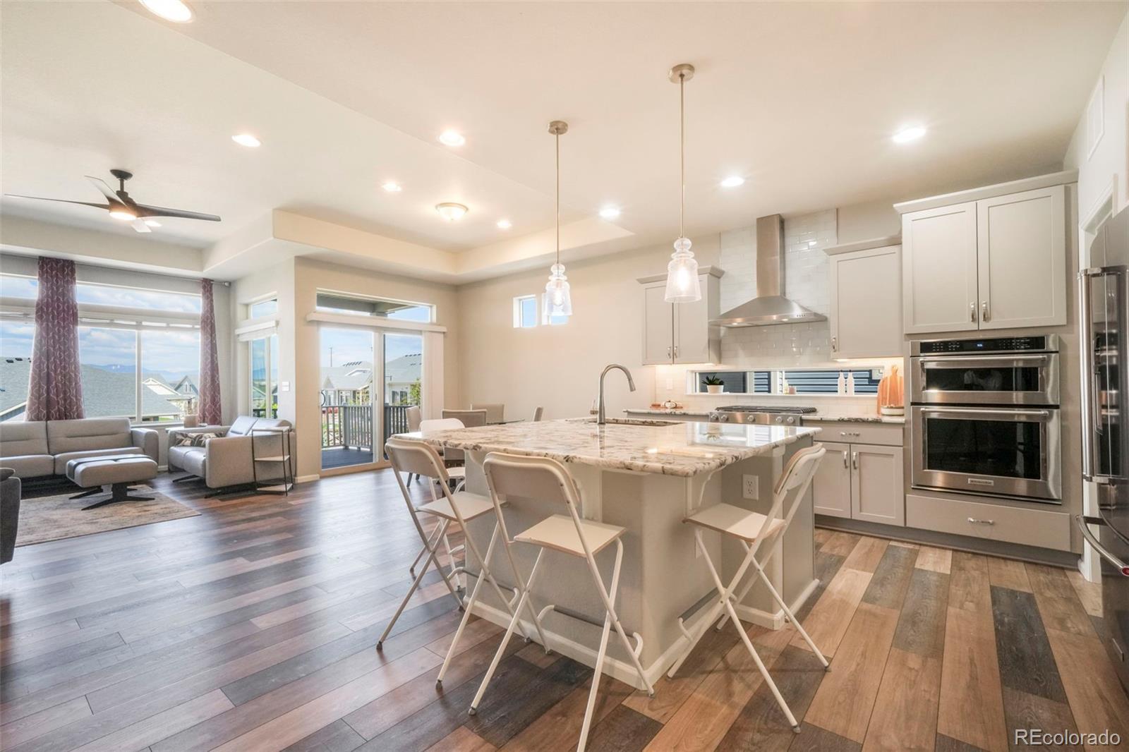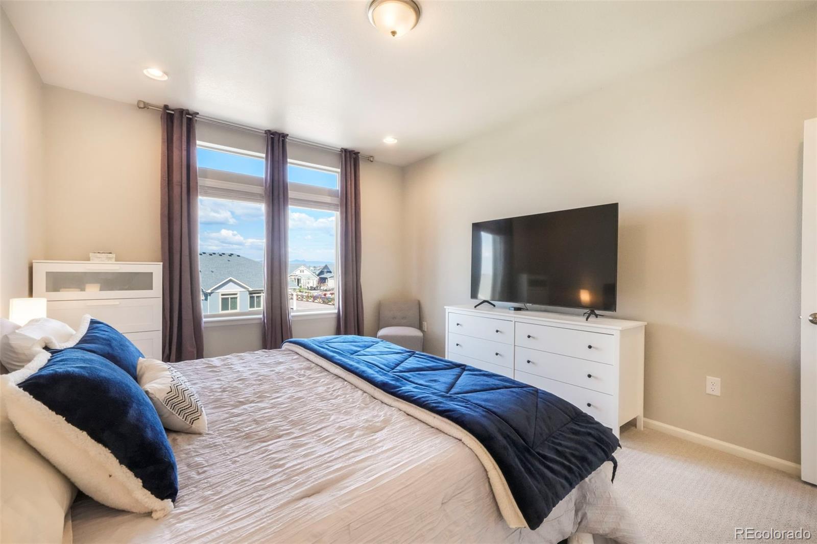 Step into luxury living in this like new two story home, nestled in The Retreat—a gated 55+ community offering low maintenance living with exceptional amenities. Designed with comfort and elegance, this open concept residence is ideal for entertaining and taking advantage of Colorado's scenic beauty. At the heart of the home is a chef inspired kitchen featuring sleek granite countertops, stainless steel appliances, 5 burner gas cooktop and a spacious pantry. Conveniently located off the kitchen is an oversized laundry room, large enough to accommodate customized storage solutions. The kitchen flows effortlessly into a welcoming dining area, new fireplace and bright living room for gathering with loved ones. Step out onto the covered deck to soak in sweeping views of the Front Range—perfect for relaxing mornings or stunning sunset dinners. Retreat to the primary suite, filled with natural light and a spa like ensuite bathroom complete with dual quartz vanities, an expansive walk in shower, private water closet, and large walk in closet. The main level also features a secondary bedroom near the entry, a full bathroom and a versatile office space or formal dining area. Upstairs the spacious loft area is ideal for a media room, hobby space or game night. The finished basement expands your living space with a large flex area, third bedroom, office, full bath, and a wet bar. Additional unfinished space for storage or another bedroom and large mechanical room with a whole house water filtration system. Enjoy the impressive outdoor upgrades, including a custom 325 sq ft stone patio, low-water xeriscaping, mature 10-ft blue spruce tree and Tesla charger! Living in The Retreat means access to a vibrant lifestyle with a 10,000 sq ft clubhouse and recreation center, pool, food truck events, pickleball and bocce courts, dog park, and over 75 acres of parks, trails, and open green spaces. This is more than a home—it’s a lifestyle.