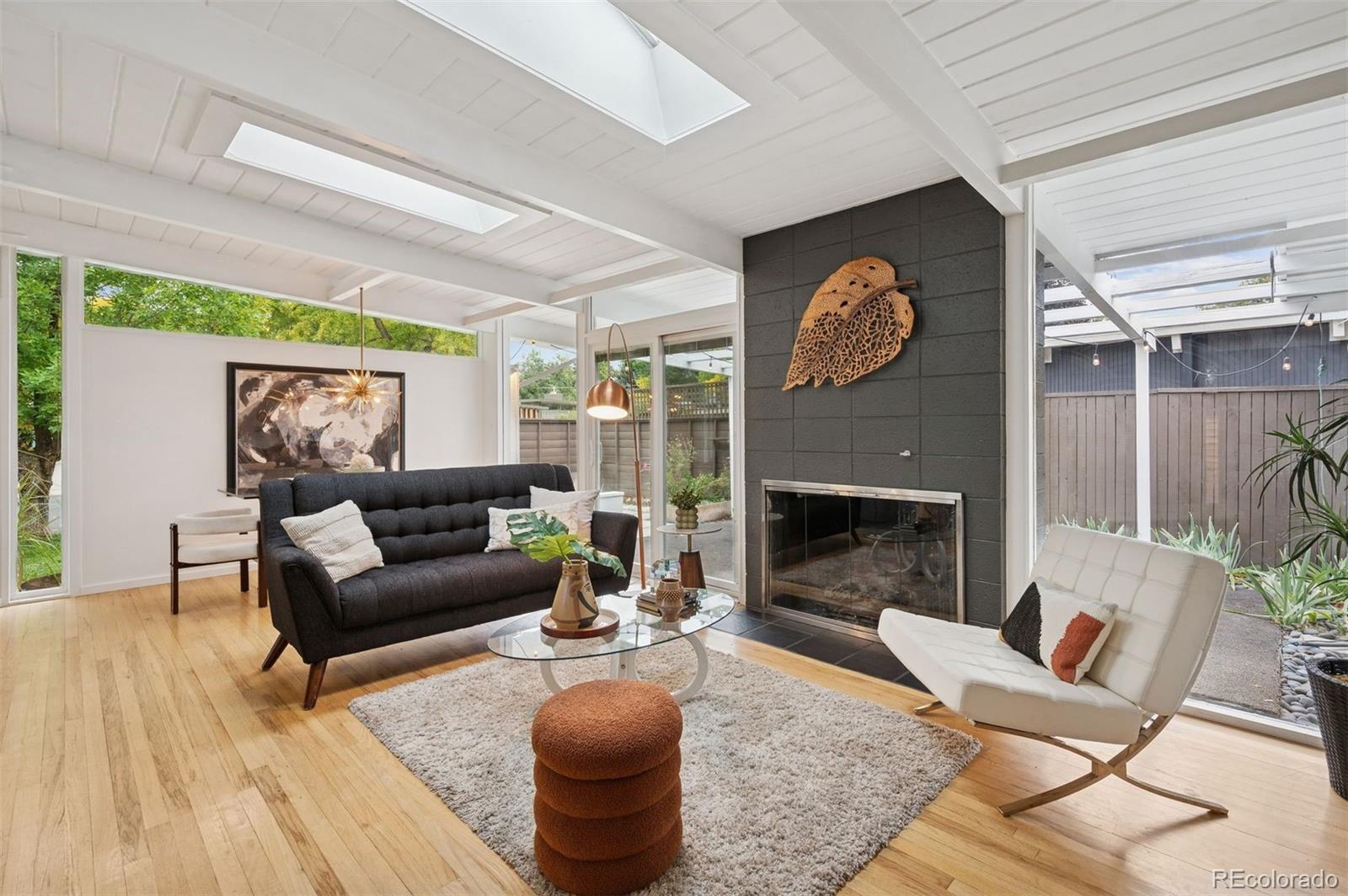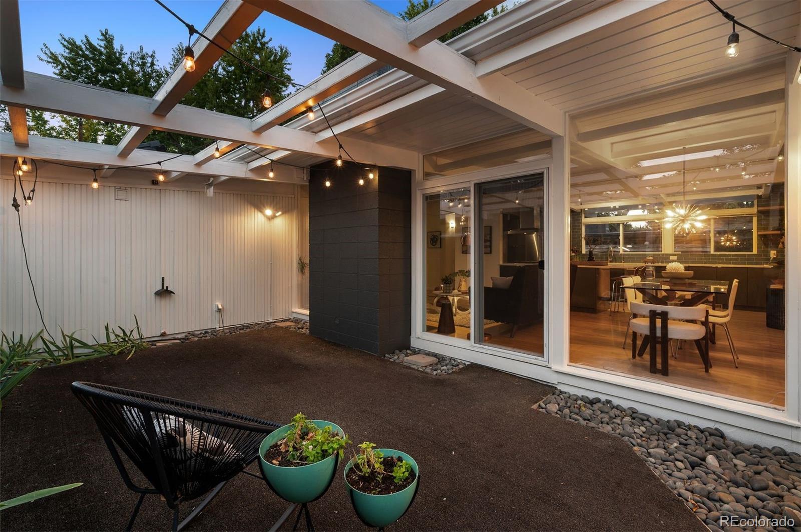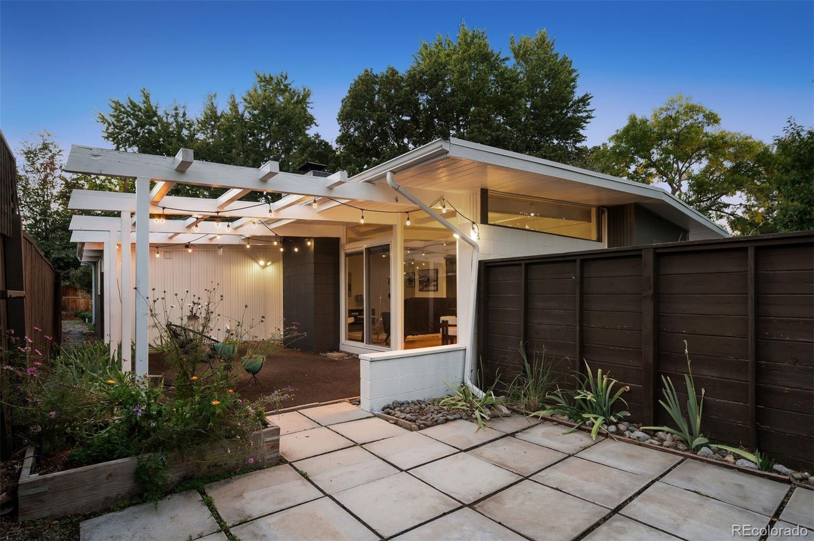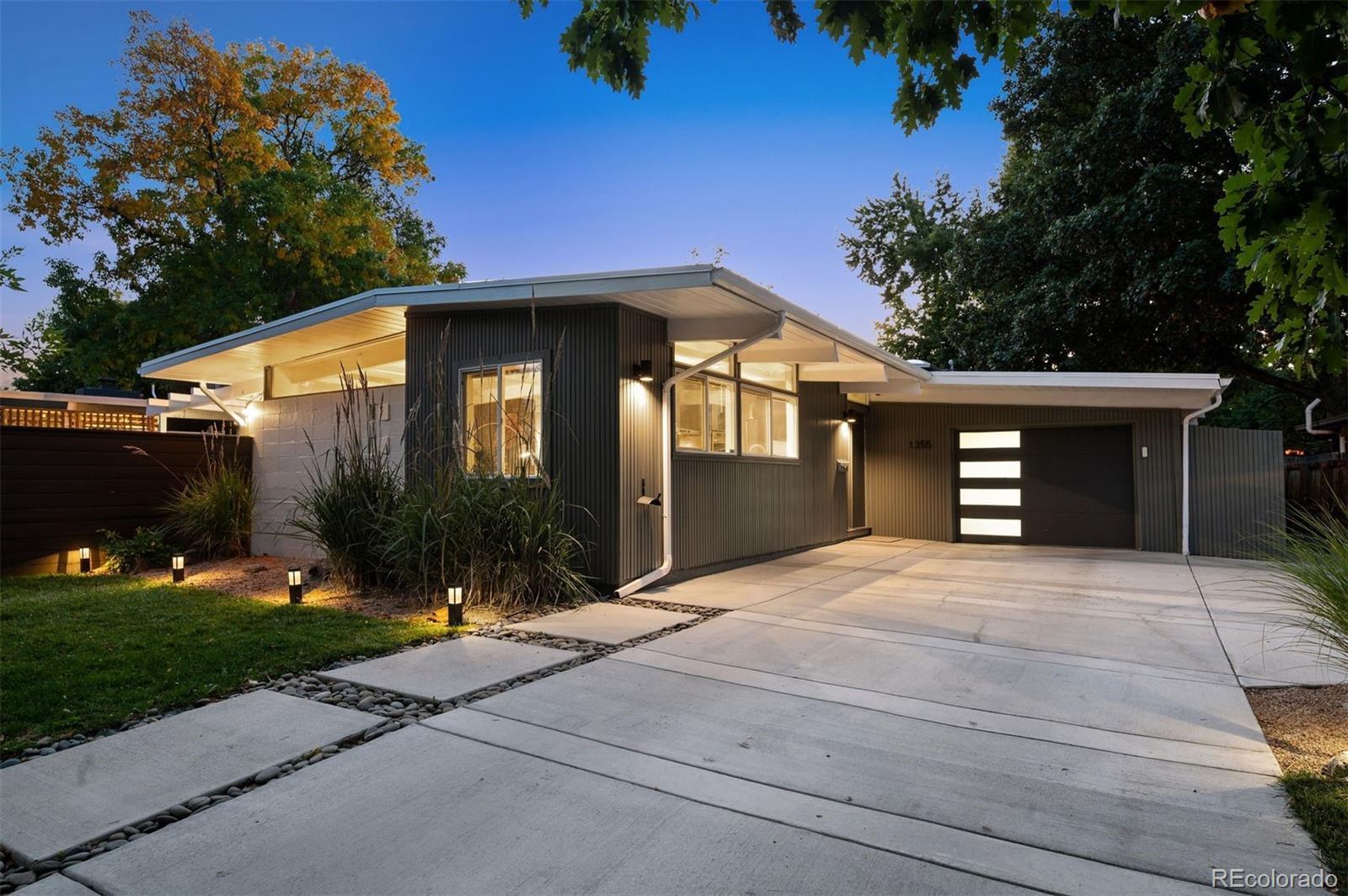 Welcome to the heart of Krisana Park, Denver's Premiere Mid-Mod enclave. Located on a larger lot directly in the epicenter of this coveted neighborhood, 1355 S Elm St boasts all the original Eichler-inspired charm, with the added overlay of tasteful updating for both style and livability. The requisite clerestory windows, pristine mid-mod lines, streaming light and classic form all stand true, while the oversized one car garage, multiple skylights, full kitchen/bath updates, rare expanded lanai, modern landscaping, new fixtures and finishes all optimize the experience. Garden beds and multiple outdoor living spaces complete the meld of indoor and outdoor living and entertaining. The last full remodel was down to the studs with added insulation, all new windows, new kitchen/baths, skylights and landscaping. Brand new fresh paint inside and out, radon mitigation, upgraded electrical ready for EV charging, Nest thermostat, Racchio sprinklers, reverse osmosis water filtration system, high-end luxury hot tub, additional professional landscaping/hardscaping, new driveway, and newer systems/appliances throughout. This prime SE Denver location is close to parks, trails, shopping, restaurants, and transit with quick access to I-25 to downtown and the mountains. Winner of the Mayor's Design Award, Krisana Park is truly a special place to call home.