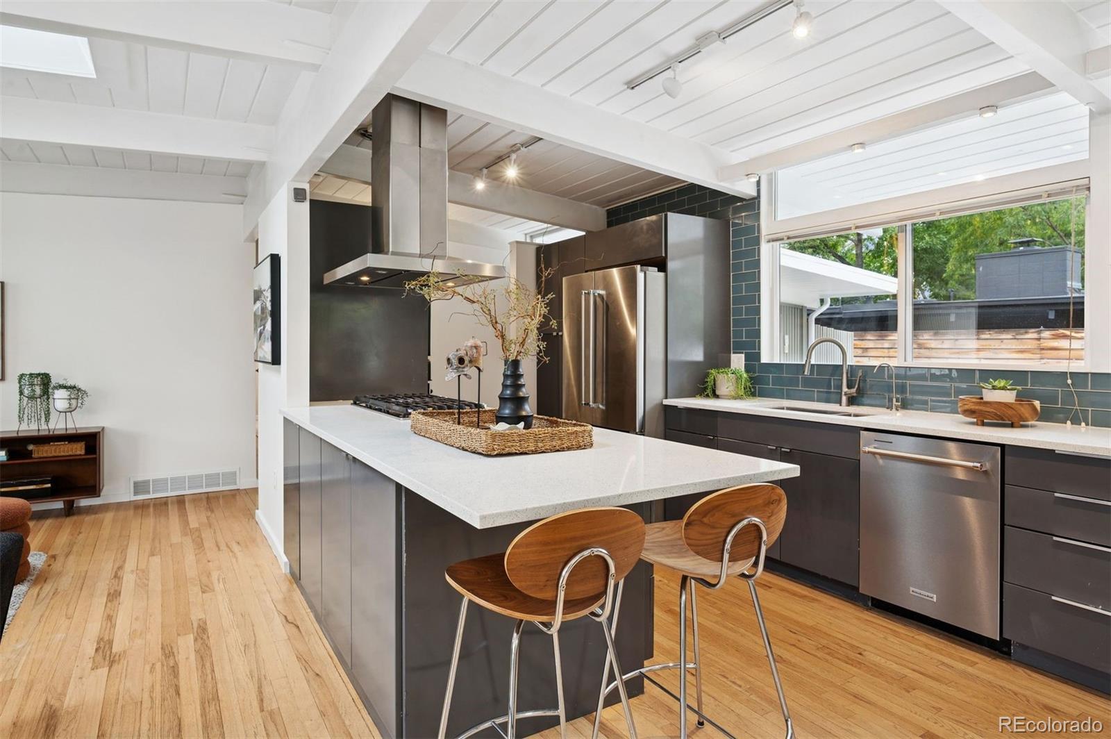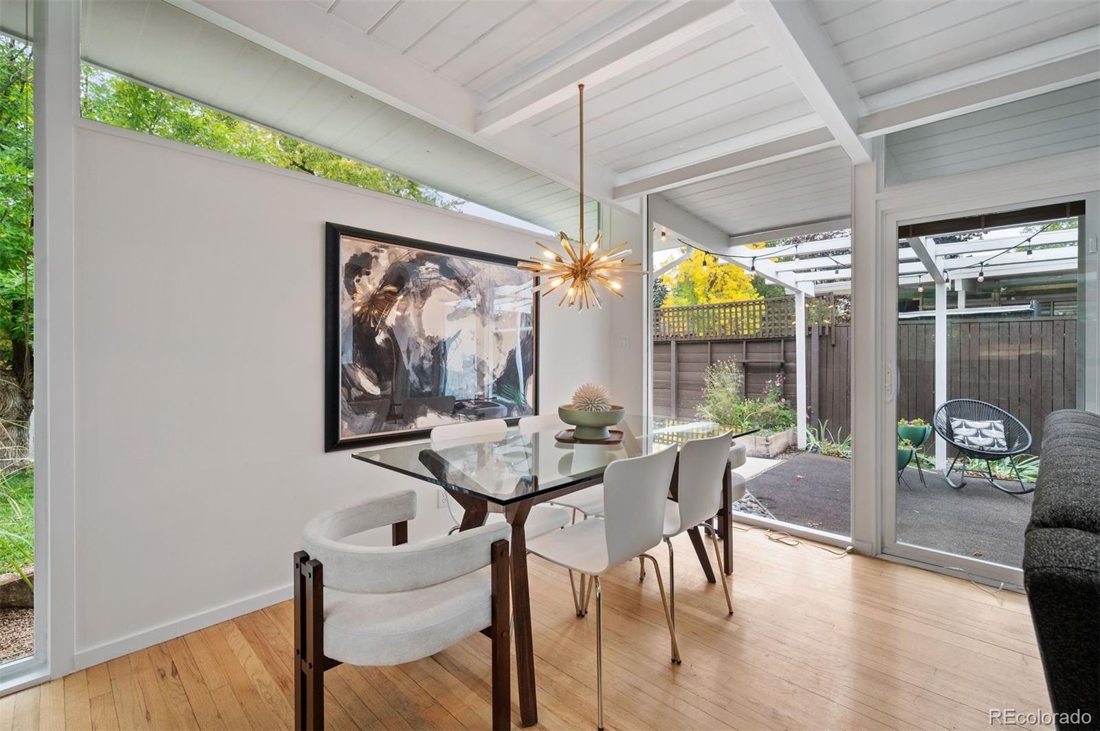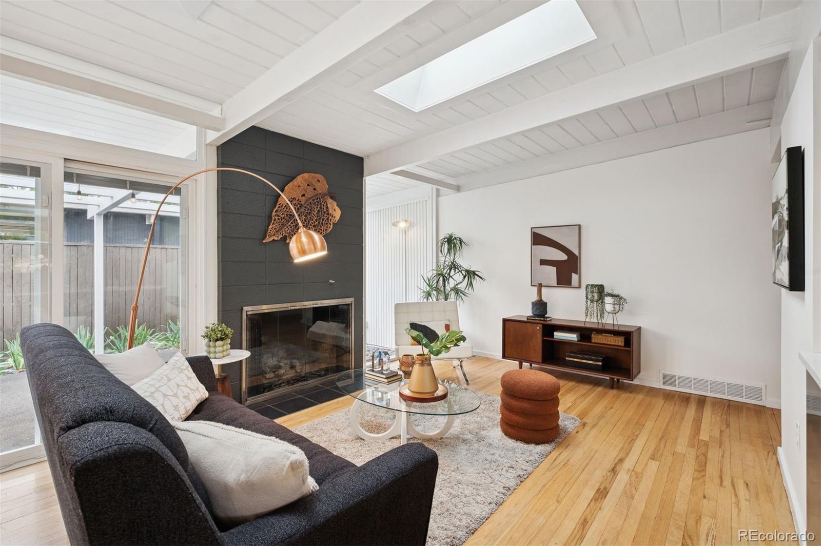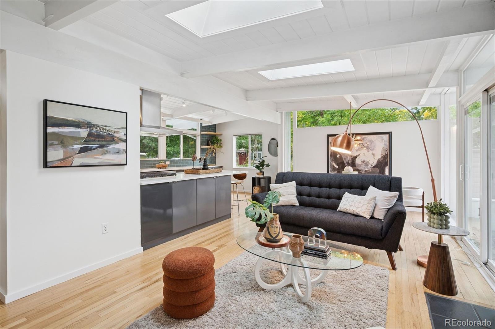 Welcome to the heart of Krisana Park, Denver's Premiere Mid-Mod enclave. Located on a larger lot directly in the epicenter of this coveted neighborhood, 1355 S Elm St boasts all the original Eichler-inspired charm, with the added overlay of tasteful updating for both style and livability. The requisite clerestory windows, pristine mid-mod lines, streaming light and classic form all stand true, while the oversized one car garage, multiple skylights, full kitchen/bath updates, rare expanded lanai, modern landscaping, new fixtures and finishes all optimize the experience. Garden beds and multiple outdoor living spaces complete the meld of indoor and outdoor living and entertaining. The last full remodel was down to the studs with added insulation, all new windows, new kitchen/baths, skylights and landscaping. Brand new fresh paint inside and out, radon mitigation, upgraded electrical ready for EV charging, Nest thermostat, Racchio sprinklers, reverse osmosis water filtration system, high-end luxury hot tub, additional professional landscaping/hardscaping, new driveway, and newer systems/appliances throughout. This prime SE Denver location is close to parks, trails, shopping, restaurants, and transit with quick access to I-25 to downtown and the mountains. Winner of the Mayor's Design Award, Krisana Park is truly a special place to call home.