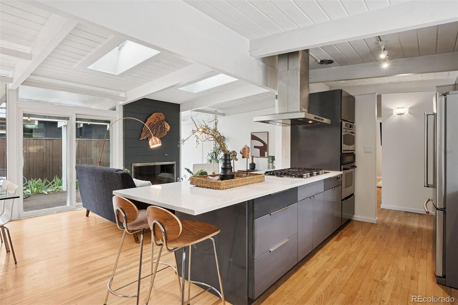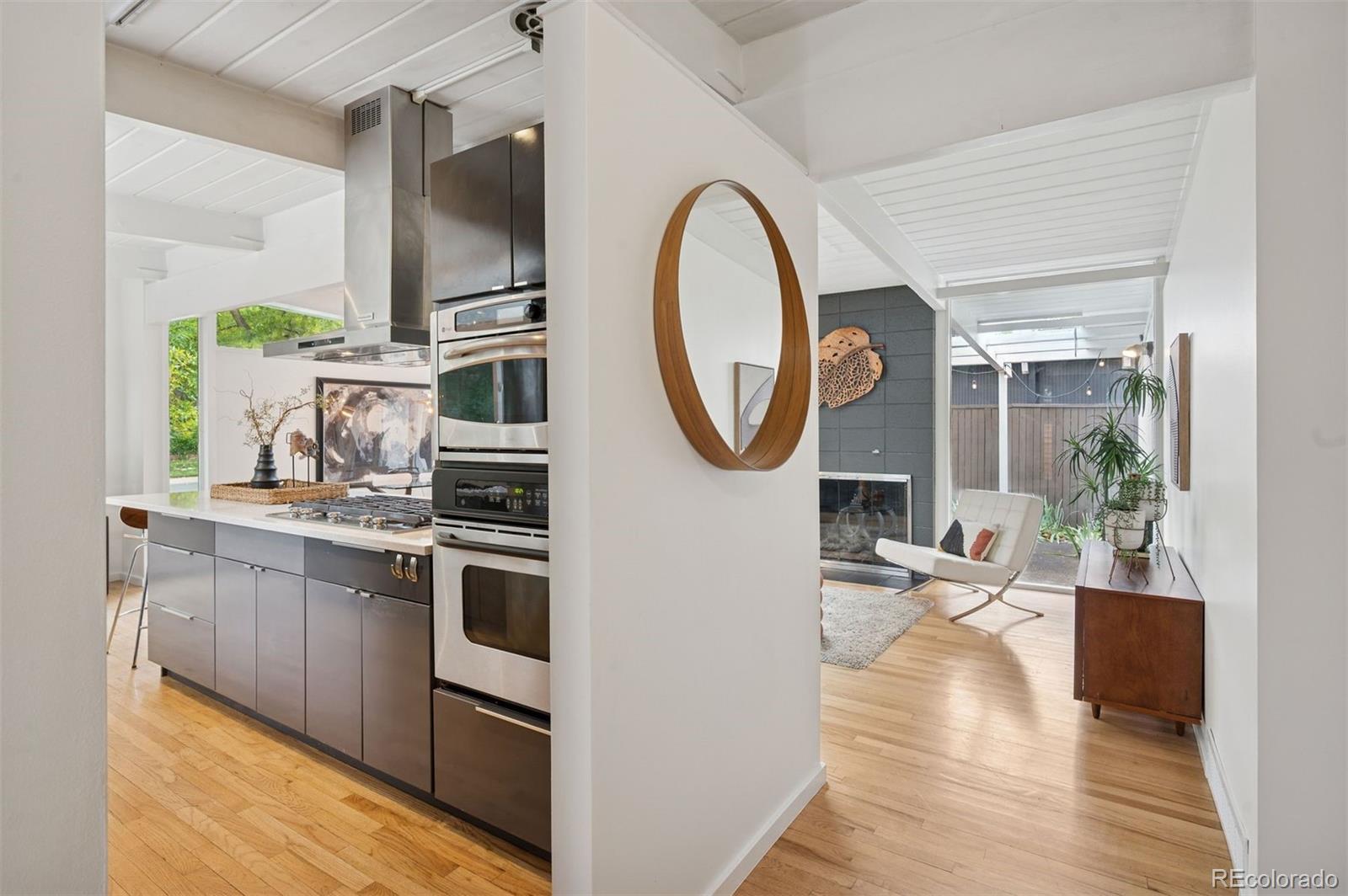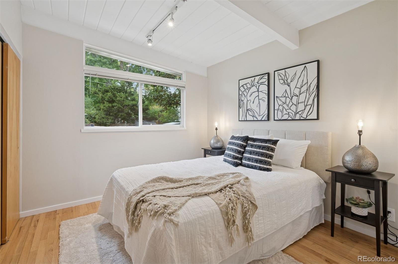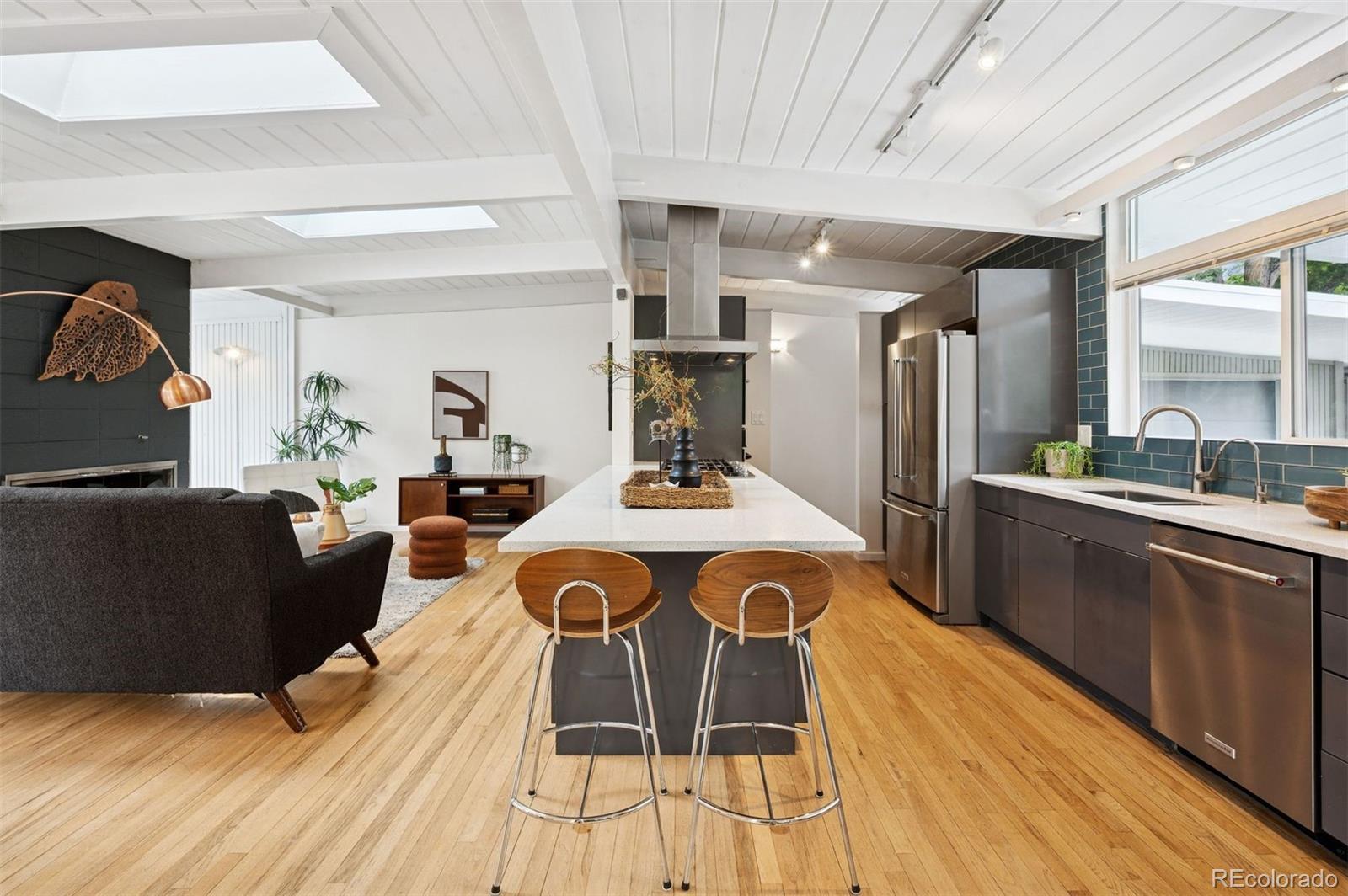 Welcome to the heart of Krisana Park, Denver's Premiere Mid-Mod enclave. Located on a larger lot directly in the epicenter of this coveted neighborhood, 1355 S Elm St boasts all the original Eichler-inspired charm, with the added overlay of tasteful updating for both style and livability. The requisite clerestory windows, pristine mid-mod lines, streaming light and classic form all stand true, while the oversized one car garage, multiple skylights, full kitchen/bath updates, rare expanded lanai, modern landscaping, new fixtures and finishes all optimize the experience. Garden beds and multiple outdoor living spaces complete the meld of indoor and outdoor living and entertaining. The last full remodel was down to the studs with added insulation, all new windows, new kitchen/baths, skylights and landscaping. Brand new fresh paint inside and out, radon mitigation, upgraded electrical ready for EV charging, Nest thermostat, Racchio sprinklers, reverse osmosis water filtration system, high-end luxury hot tub, additional professional landscaping/hardscaping, new driveway, and newer systems/appliances throughout. This prime SE Denver location is close to parks, trails, shopping, restaurants, and transit with quick access to I-25 to downtown and the mountains. Winner of the Mayor's Design Award, Krisana Park is truly a special place to call home.