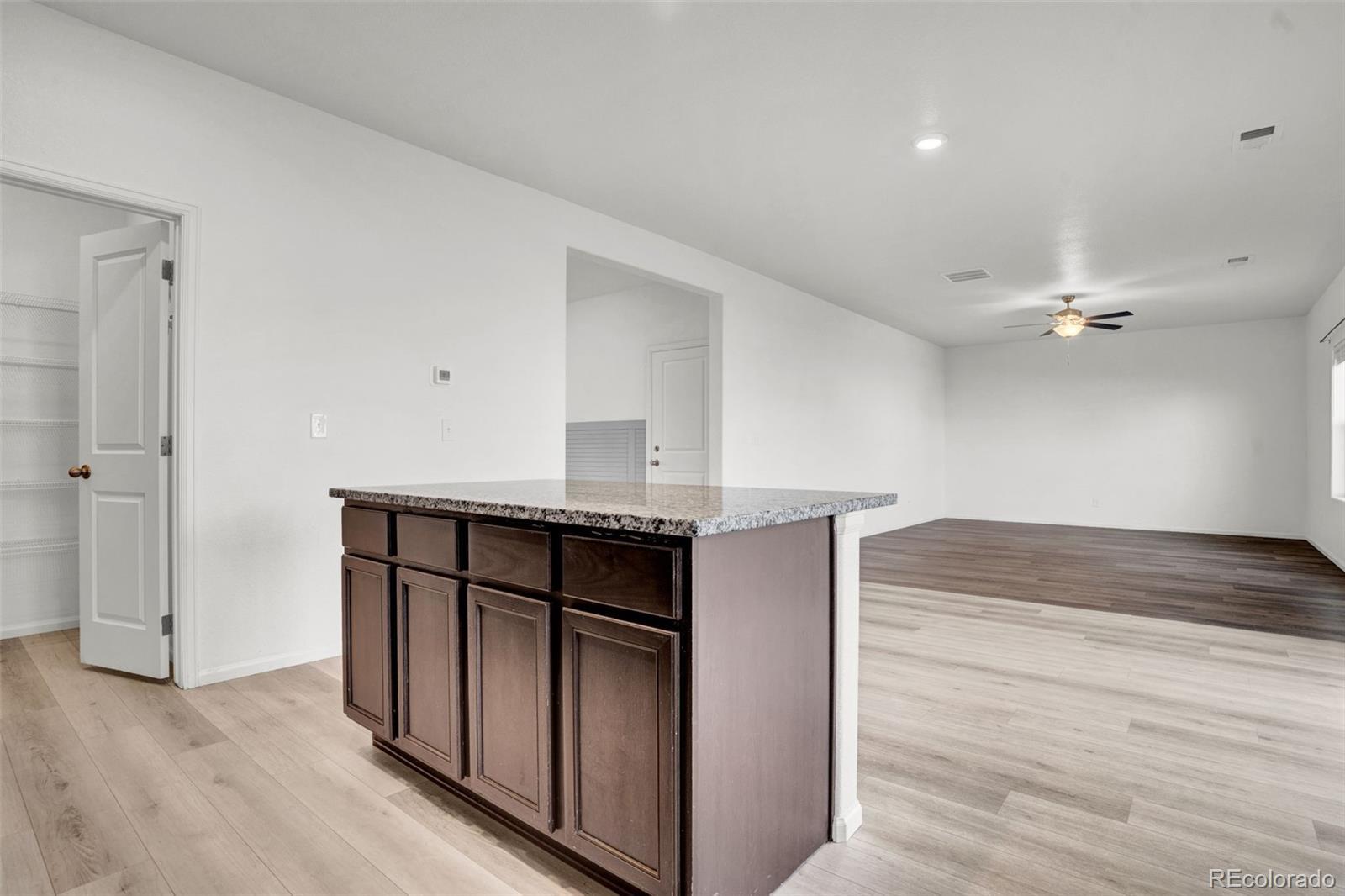 Ceiling Fan(s), Granite Counters, Kitchen Island, Open Floorplan, Pantry, Primary Suite, Walk-In Closet(s)