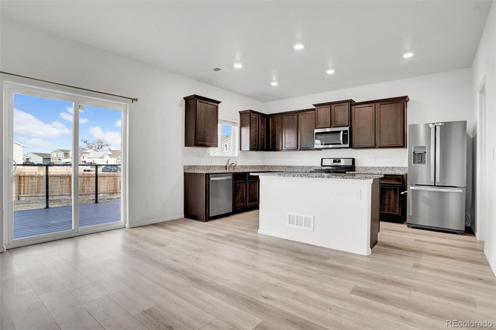 Welcome to this beautifully maintained, 5-year-old home in the charming town of Keenesburg! Sitting on a large corner lot, this home offers ample space both inside and out, perfect for family living and entertaining. With 4 bedrooms and 3 bathrooms, there's plenty of room for everyone, not to mention a 2.875 Assumable VA loan! The open-concept floor plan creates a welcoming atmosphere, while large windows allow natural light to flood the home. The kitchen boasts modern appliances, sleek countertops, and plenty of storage offered with a large pantry, making it ideal for preparing delicious meals. The spacious living and dining areas flow seamlessly, offering versatility for any occasion. The primary suite features a spacious layout with an ensuite bath, providing a serene escape after a long day. Each additional bedroom is generously sized, offering comfort and flexibility for your needs. With a large corner lot, the backyard is perfect for outdoor activities, gardening, or simply relaxing in your own private space. Whether you're hosting gatherings or enjoying quiet moments, the outdoor space has endless potential. This home is ready to move in and waiting for you to make it your own!