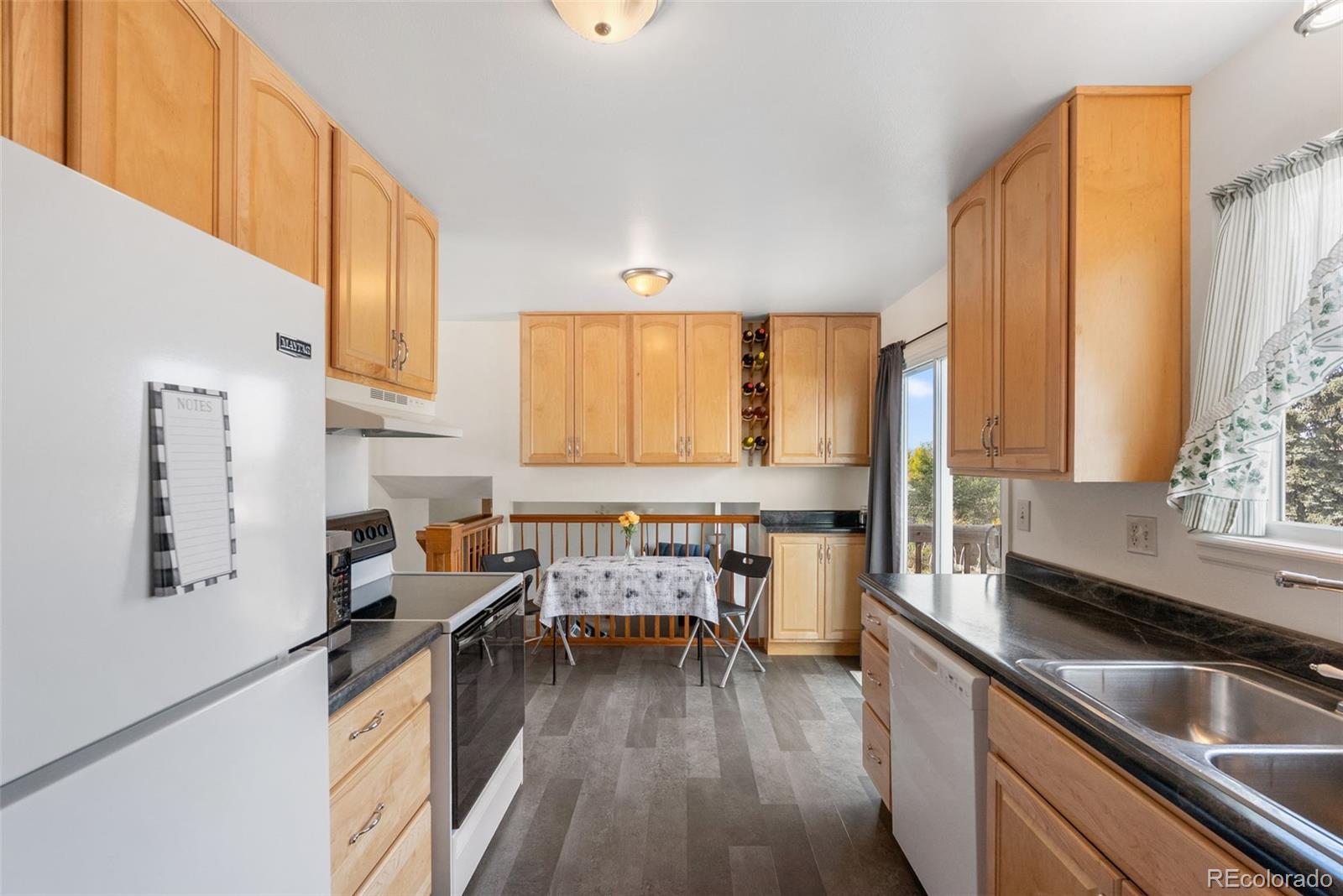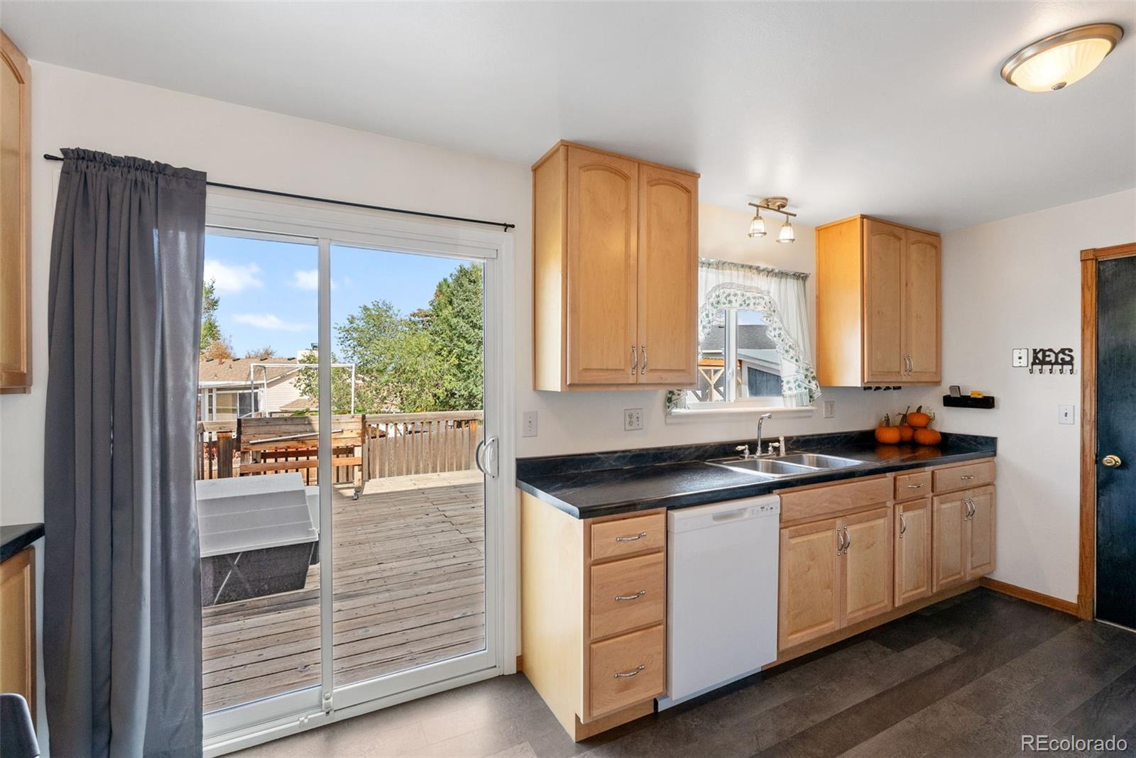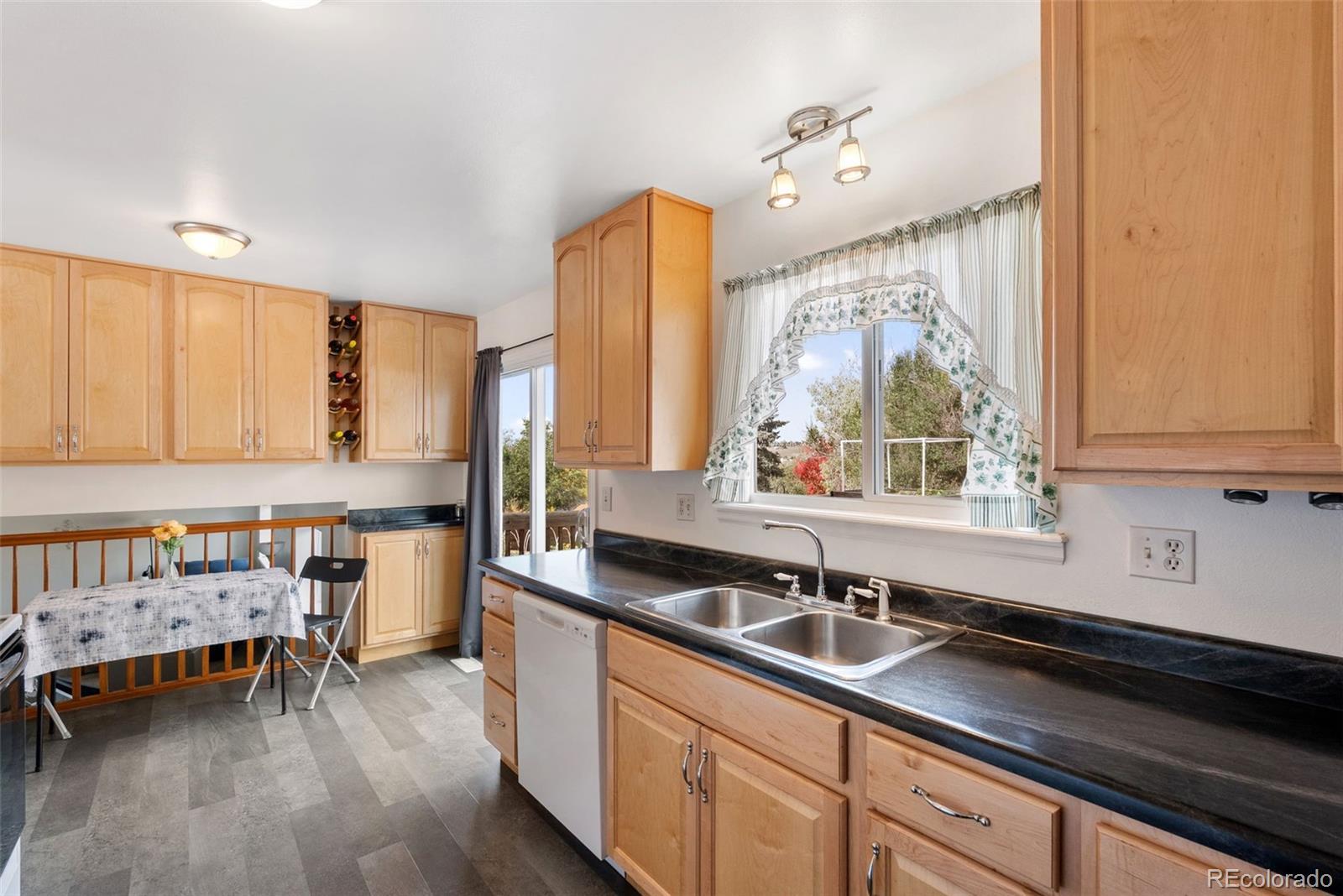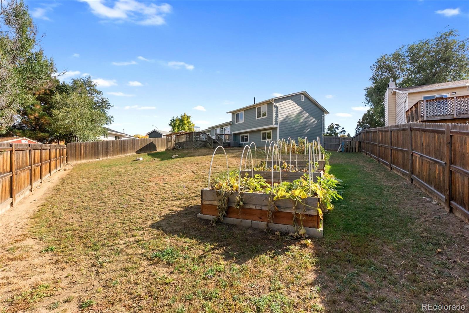Welcome to a 4-bedroom, 2-bath tri-level home in the heart of Colorado Springs! Offering over 2,200 total square feet on a spacious 0.24-acre lot, this home combines classic comfort with thoughtful updates and a layout designed for easy living. Step inside to find a bright, open living room with added dining area that continues to the kitchen featuring luxury vinyl plank flooring, dark marble-look laminate countertops, a glass-top electric range, and a double stainless sink that overlooks the backyard. The kitchen’s sliding glass door walkout opens to a 17’x17’ wood deck, perfect for entertaining or enjoying peaceful mornings with mountain views. Upstairs, the primary bedroom boasts two large front-facing windows that fill the room with natural light, an included Liberty safe and an adjoining bathroom with a free-standing shower. To complete the upper level are two other carpeted bedrooms with windows overlooking the backyard and a full-sized bathroom. The lower-level family room offers a spacious and versatile area with garden-level windows, creating a bright space for relaxing or entertaining. Outside, the property truly shines — the fully fenced backyard includes raised garden beds, a storage shed, and a custom-built chicken coop that’s as functional as it is impressive, featuring its own solar power system, automatic feeder, and self-watering setup. The front yard is beautifully landscaped with white split rail fencing and a driveway that connects to a convenient pull-off road parallel to Dublin Blvd. With its fiber cement siding, brick façade, and Class IV hail-resistant roof (2023), this home offers durability and lasting curb appeal. Located just under a mile West of Cottonwood Creek Park, excellent District 11 schools, and minutes from both I-25 and Powers Blvd, this home offers the perfect blend of comfort, character, and convenience.