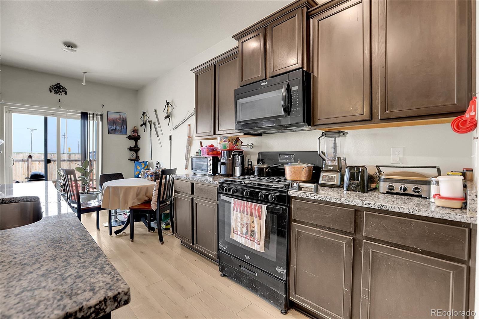 Welcome to this charming, cozy oasis featuring a well-thought-out layout with ample space for comfortable living. With its single-story design, the home is perfect for those seeking convenience without sacrificing style. The property is situated in a serene neighborhood, providing a peaceful retreat while still being close to local amenities. As you enter, you will find a spacious living room adorned with beautiful wood-finished floors and a ceiling fan, creating a cozy atmosphere for relaxation. The open floorplan seamlessly connects the living area to the modern kitchen, which boasts dark brown cabinetry, black appliances, and light stone countertops. The kitchen also features a center island with a sink and a breakfast bar, perfect for casual dining. The home includes three inviting bedrooms, each equipped with ceiling fans and generous closet space, while the bathrooms offer a combination of shower and bathtub options, ensuring convenience for all family members. The outdoor space is equally impressive, with a fenced backyard that includes a patio area ideal for entertaining or enjoying a barbecue. The property is complete with a well-maintained lawn, rain gutters, and a private yard that enhances the overall appeal. Located in a friendly community, residents can enjoy easy access to local parks, schools, and recreational activities, making it an attractive option for families or anyone looking for a peaceful lifestyle.