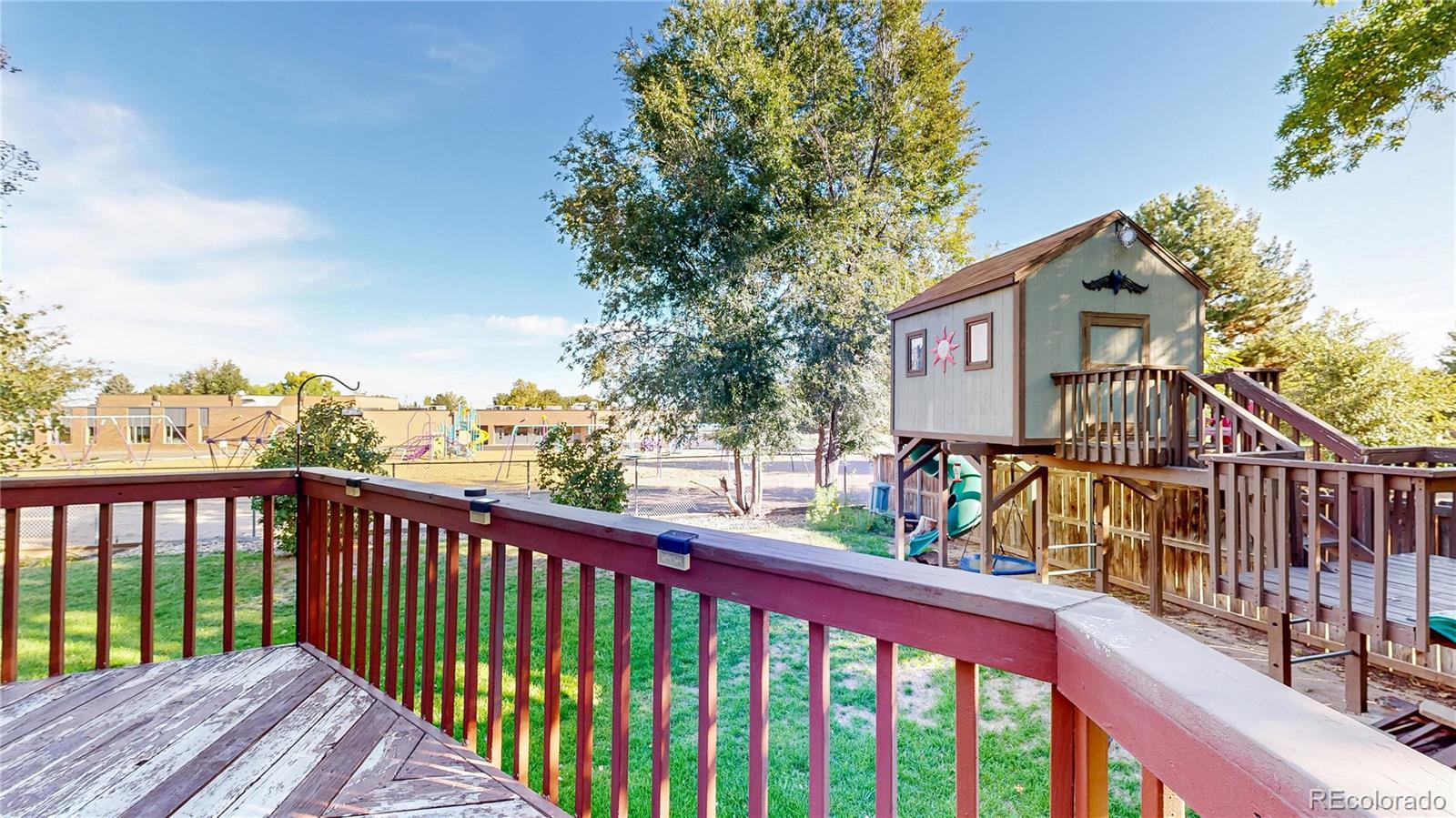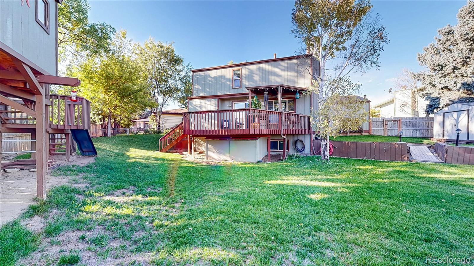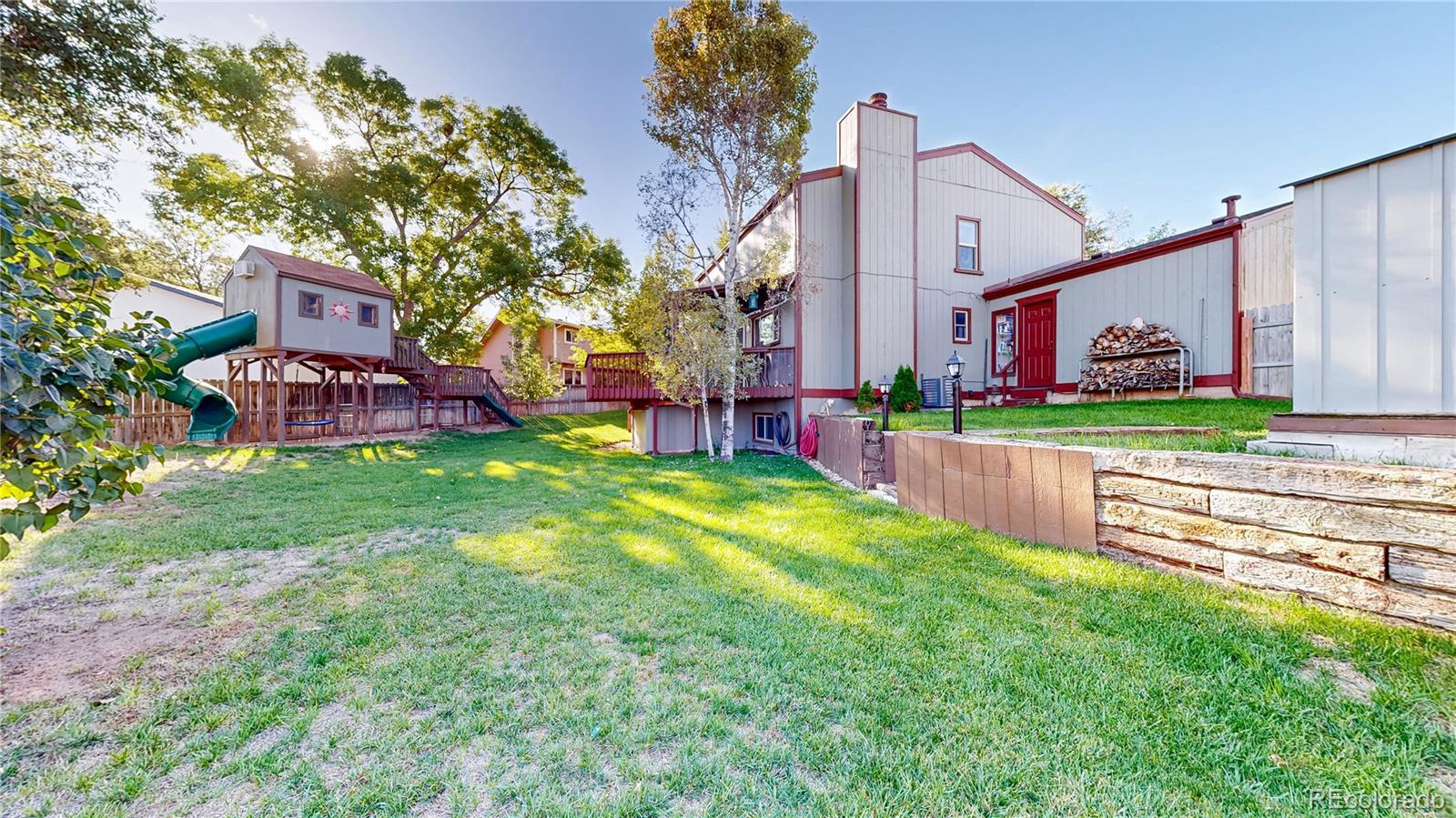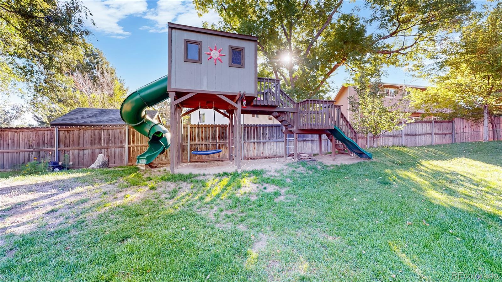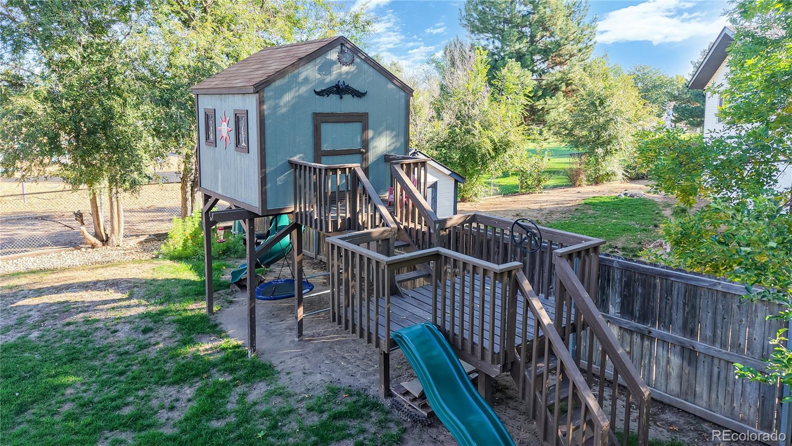 Welcome Home! This spacious 4-bedroom, 3-bathroom, 2-story home with a finished basement sits on a quiet cul-de-sac in a desirable community. The home features a large oversized garage and a spacious yard with a fun playset and no backyard neighbors, offering extra privacy and peace. The yard is fully fenced and beautifully landscaped with mature trees. A storage shed and an amazing playhouse make it both functional and fun. You can relax or entertain on the two deck areas, and there is additional storage located beneath the deck. Inside, the living room is enhanced with power blinds, and the kitchen includes all appliances. The kitchen cabinets have been freshly painted white, and the home boasts a newer dishwasher and a brand-new microwave installed in 2025. The home has been thoughtfully maintained and upgraded over the years. New windows were installed in 2014. The roof, gutters, central air, and exterior paint were all updated in 2019. A newer furnace and water heater were added in 2020, along with a new shed. Enjoy the benefits of living in a quiet, welcoming community with friendly neighbors and everyday conveniences just minutes away, including grocery stores, restaurants, schools, and the post office. The Greeley Country Club is right around the corner, and the University of Northern Colorado is only a 10-minute drive. Here, recreation, education, and everyday essentials are always within easy reach.