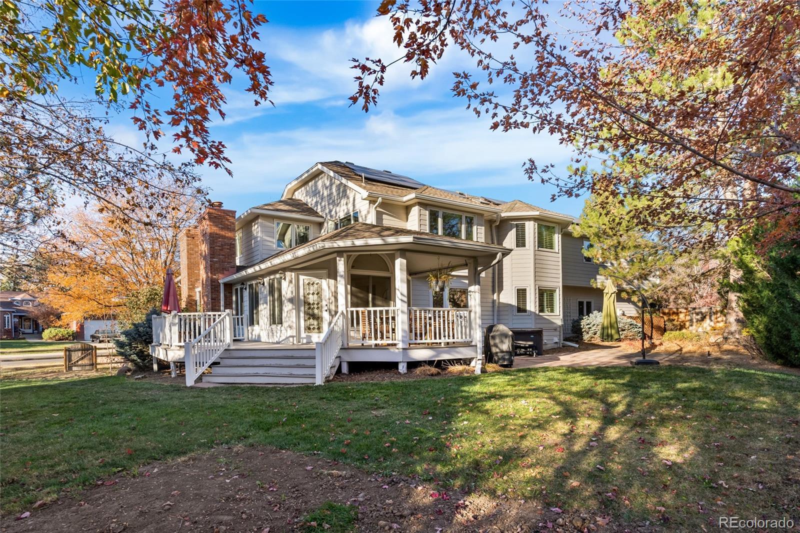 Welcome to this beautiful home in the desirable Country Club Estates, where residents enjoy a pool, tennis courts, and clubhouse. Perfectly located next to the Boulder Country Club, this home combines elegance and comfort with hardwood floors throughout the main level and abundant natural light. The kitchen features cherry wood cabinetry, granite countertops, and high-end appliances, with a large eat-in area plus a formal dining room. Enjoy two cozy fireplaces in the living and family rooms. Step onto the covered deck—perfect for entertaining—with a natural gas BBQ stub, and follow the flagstone path to the hot tub and firepit seating area. Upstairs, the primary suite offers hardwood floors, added windows for natural light, a flex room ideal for an office or nursery, a five-piece ensuite bath, and large walk-in closets. Three additional bedrooms and two bathrooms (one ensuite) complete the upper level. The finished basement includes a garden-level game room, media and fitness areas, a ¾ bath, and extra storage. An oversized three-car garage offers room for a golf cart or gear and is wired for an EV charging station. Seller owned solar panels will help keep electricity bills low. A stunning home that blends thoughtful updates, spacious living, and a premier Boulder location!