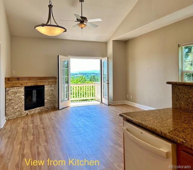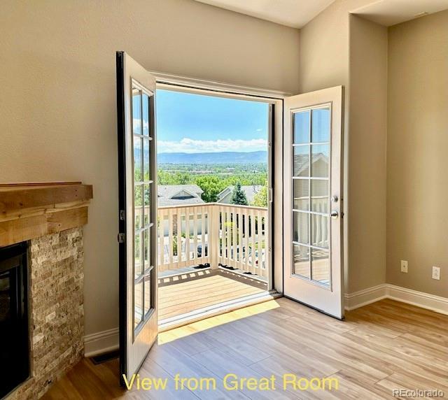 Breathtaking Mountain Views | Modern Comfort | Low-Maintenance Living Duplex in Lakewood! Discover the rare opportunity to own one of the most private and scenic homes in Thraemoor in the Park. With unmatched mountain and valley views, this impeccably maintained 3-bedroom, 3-bath duplex townhouse blends low-maintenance ease with high-end upgrades. The bright, open floor plan features vaulted ceilings, custom window treatments, and luxury vinyl plank flooring throughout. The living room’s gas fireplace offers both ambiance and efficient warmth, while expansive windows frame panoramic Front Range views. The kitchen shines with roll-out cabinet shelves, large storage drawers, a Lazy Susan, under-cabinet lighting, a custom tile backsplash, and a breakfast bar—perfect for casual dining. The main floor primary suite is a peaceful retreat with a walk-in closet, five-piece bath, and serene mountain vistas. Upstairs, an expansive loft with a closet makes the perfect home office, guest suite, or recreation room—complete with sweeping views. The walkout garden-level basement adds two large bedrooms, high ceilings, natural light, and a spacious full bath—ideal for multi-generational living or guests. Outdoor living is effortless with a private Trex deck for grilling and sunset watching, plus a lower patio overlooking open space. A built-in workbench in the garage, radon mitigation system, and newly painted interior ensure both comfort and confidence. HOA covers landscaping, exterior maintenance, and snow removal for truly lock-and-leave living. Nestled next to trails and open space—and next door to the former home of Colorado photographer John Fielder—this peaceful enclave rarely has homes for sale, and none offer views like these. Don’t miss your chance to own this exceptional residence. Be sure to catch the 3D virtual tour/interactive floor plan for a virtual walk through!