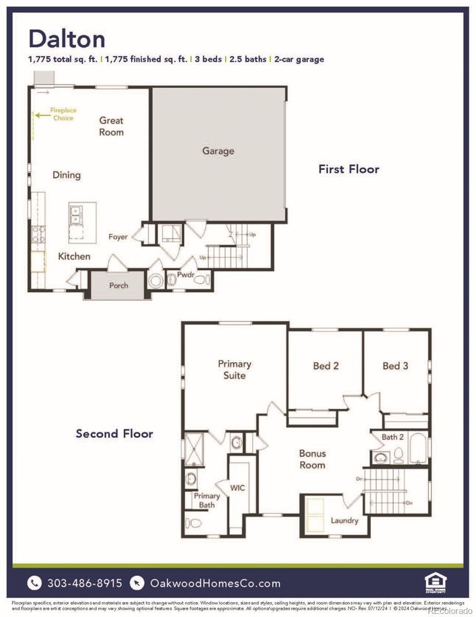 The Dalton floorplan combines contemporary design with handcrafted detail, offering a home designed for versatility, affordability, and efficiency. This single-family, 2-story layout spans 1,769 sq. ft. and offers 3 beds, 2.5 baths, and an oversized 2-car garage. Energy efficiency is at the forefront with 2x6 walls and low-E double pane windows for superior insulation, an advanced Rheia HVAC, a 96% high-efficiency furnace, Samsung energy-efficient appliance, and has EV and solar-ready capabilities. All adding up to lower utility bills, backed by our Energy Smart Guarantee and an Indoor AirPlus® certification. This home has plenty of curb appeal featuring a multi-textural exterior, front porch, and 5’ privacy fencing with included front landscaping. The main level is bright with oversized windows, 9’ ceilings, and an expansive “heart of the home” great room. Enjoy designer LVP flooring, Shaw carpeting, and SW paint throughout. The kitchen is complete with a dining island, designer countertops, stainless-steel features, and a pantry. The spacious primary suite offers a large walk-in closet, two sinks, and a spa shower with a window. The 2nd floor also features a laundry room, bonus room, and 2 bedrooms. Buy new from a trusted builder and take advantage of Oakwood’s advanced building practices that lower maintenance costs while providing the best all-around home value and comfort. Enjoy peace of mind with our 8-year warranty, and unlike buying used, personalize your interior with one of our designer packages with upgrades like granite countertops. Actual home may differ from artist's rendering or photography shown