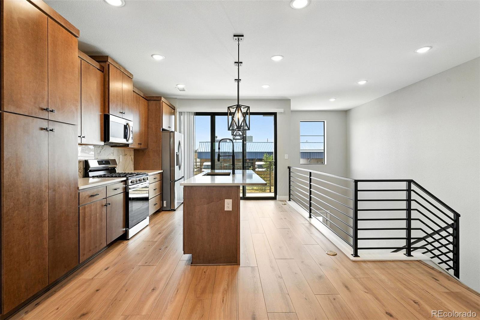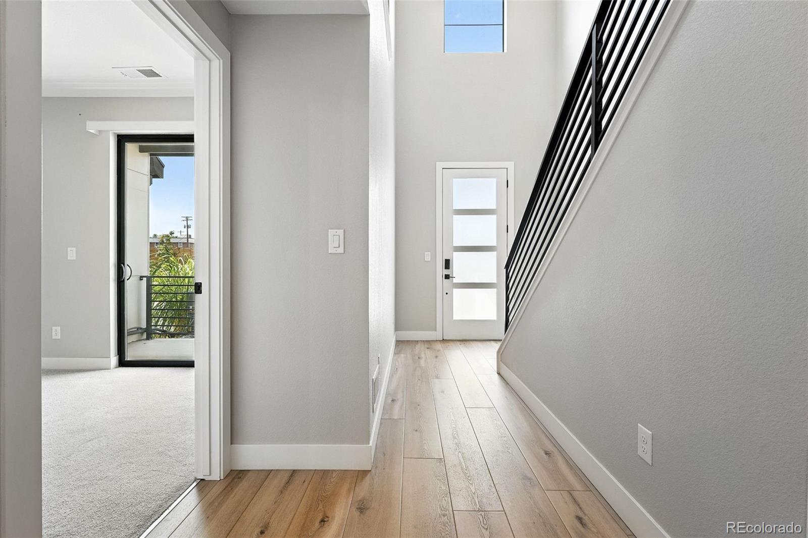 Discover this contemporary floorplan (HENRY BY LOKAL) townhome located in Denver's sought-after Virginia Village neighborhood! Built in 2022, this stylish residence offers 1800 sqft of thoughtfully designed living space across three levels. Every bedroom has a bathroom in this spacious layout! This home features 3 bedrooms and 4 bathrooms, with a ground-floor bedroom and bath—ideal for guests or a home office. Luxury vinyl plank flooring throughout the home and tile in bathrooms and laundry. The second floor features a gourmet kitchen with a large quartz island, stainless steel appliances, and a walk-in pantry, seamlessly flowing into the living and dining areas. The third floor hosts a luxurious master suite with an oversized walk-in closet, double sinks, and a large shower, along with convenient upstairs laundry. Enjoy a covered front porch and a balcony off the living room, perfect for relaxation and entertaining. Mountain View! For secure parking, there is a two-car garage with smart door technology and additional storage space. Situated just blocks from the light rail, I-25, and a variety of parks, shopping, and dining options, this home offers easy access to Platt Park, the DU area, Wash Park, Cherry Creek, and the DTC. Whether you're commuting or exploring Denver's vibrant neighborhoods, this location provides the perfect balance of convenience and tranquility.