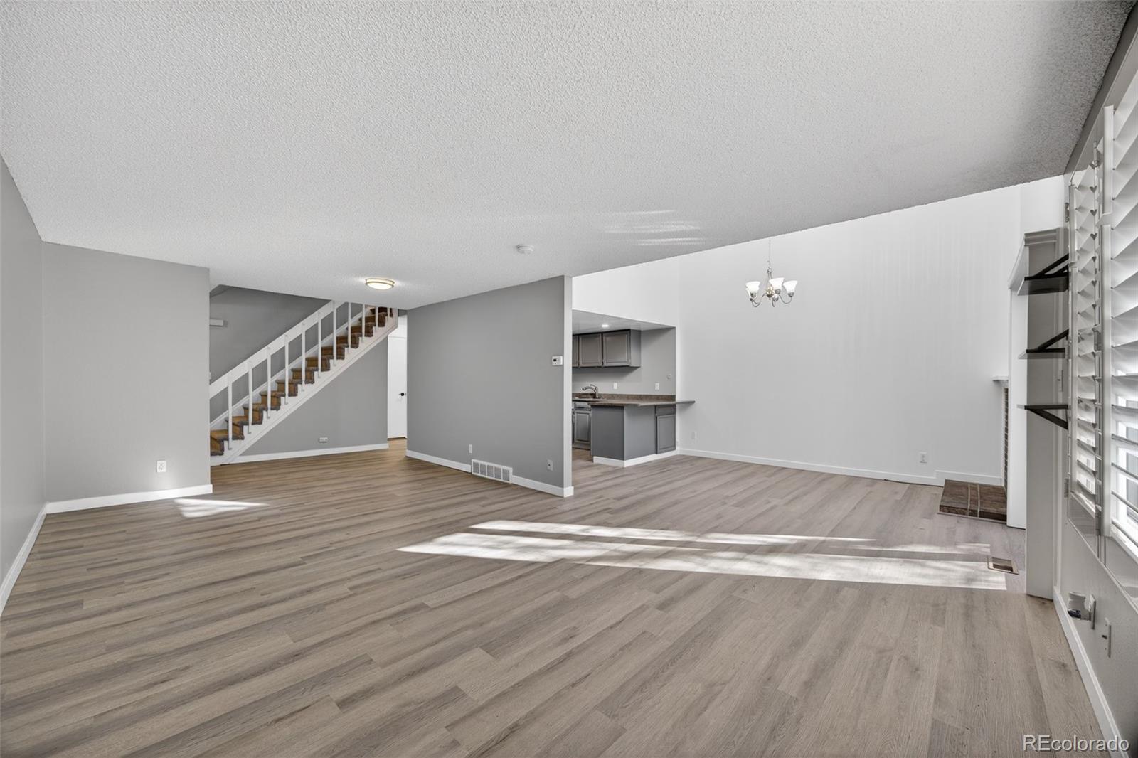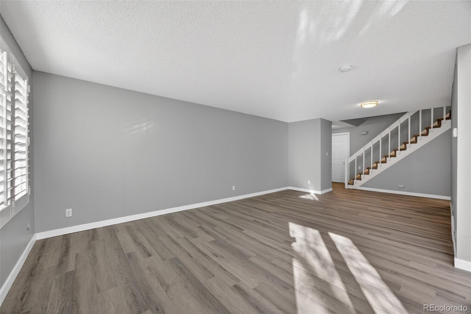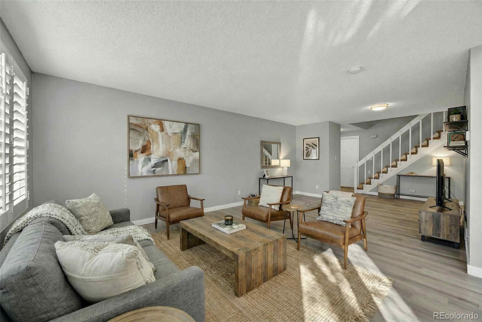 Discover the largest townhome currently available in the subdivision, located in the highly desirable Cherry Creek School District. This well-maintained and thoughtfully updated home offers a rare combination of size, high ceilings and customization potential. The main level features open and soaring ceilings filled with natural light, creating a bright and spacious feel that sets this home apart. Weathered wood laminate flooring flows throughout the main living areas, paired with brand-new carpet in the bedrooms for comfort and warmth. The open layout is ideal for entertaining, everyday living and flexible furniture placement. This home includes 3 bedrooms and 3 bathrooms (2 full, 1 half), highlighted by a primary suite with a private ensuite bathroom. Additional bedrooms are generously sized and a convenient half bath serves guests on the main level. Unlike other homes in the community, this property offers an unfinished basement - an intentional advantage. Design the space to suit your lifestyle: add a home gym, guest suite, office, media room, or additional bedroom. Finish it over time or all at once and build instant equity without paying for someone else’s design choices. Conveniently located near shopping, dining, parks and major commuter routes, this townhome offers space, light and long-term potential rarely found in the community. Schedule your showing today!