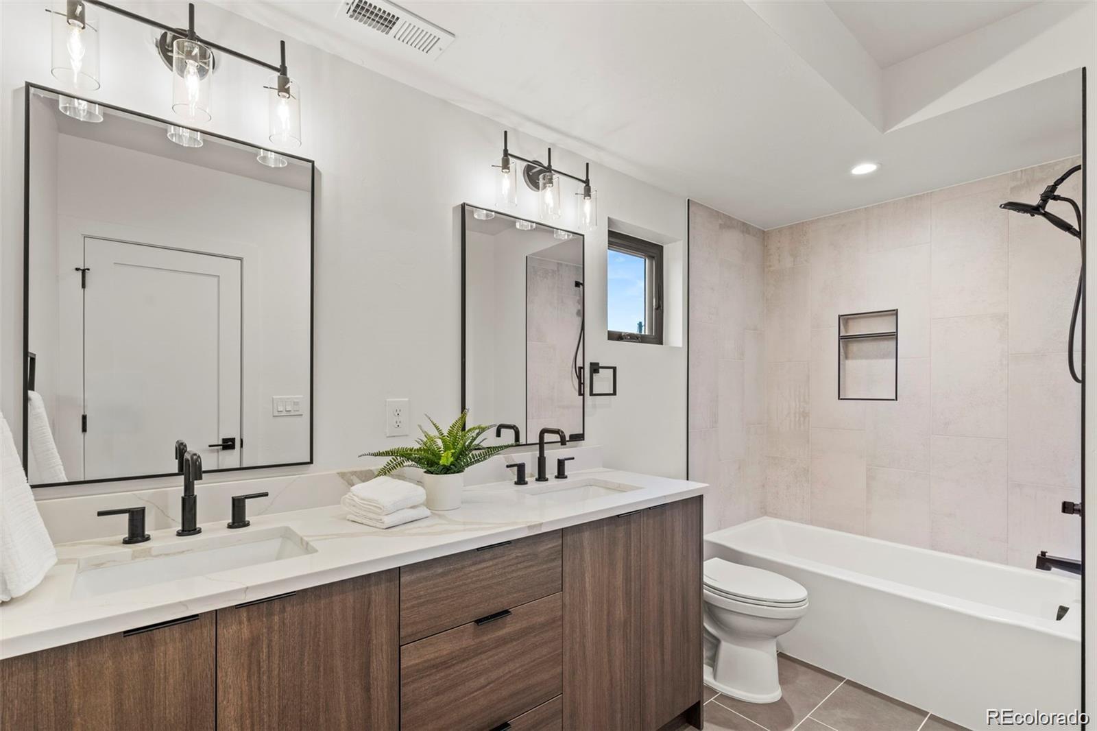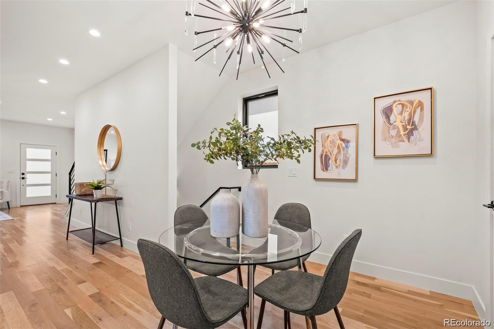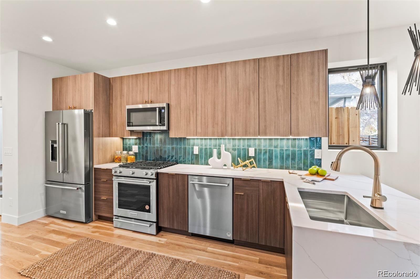 Tucked away in the heart of Denver’s most energetic corridor — a brand-new contemporary townhome with no HOA, located is just a five-minute walk to Empower Field and minutes to Sloan’s Lake. Combining modern architecture with thoughtful functionality, this home delivers the best of both worlds: city convenience and the freedom of independent ownership. The main floor features an open-concept layout that flows that flows seamlessly from the living room to the kitchen and dining area — perfect for entertaining with family and friends or relaxing after a long day. The designer kitchen showcases quartz countertops, custom cabinetry, a large island, and stainless-steel appliances, all thoughtfully arranged to maximize space and functionality. Upstairs, the primary suite serves as a private retreat with its own balcony overlooking the neighborhood — the perfect place to enjoy your morning coffee or unwind after a game at the stadium. The spa-inspired ensuite bath includes dual vanities, a glass-enclosed shower, and elegant finishes. Two additional bedrooms, a full bath, and an upstairs laundry room complete the upper level, blending practicality with comfort. The finished basement adds even more flexibility with a spacious family room and/or a guest bedroom with a full bath with a stylish wet bar — perfect for hosting friends, setting up a home gym, or creating a media room. Every detail of this home was crafted to elevate modern living while maintaining a warm, livable feel. Located near Empower Field, Sloan’s Lake, and Denver’s best restaurants and breweries, this townhome puts you at the center of it all — without the burden of HOA fees or restrictions. Whether you’re catching a game, taking a sunset walk by the lake, or entertaining at home, this townhome offers the perfect balance of design, freedom, and lifestyle. Don’t miss your chance and schedule your private showing today and experience the best of modern city living.