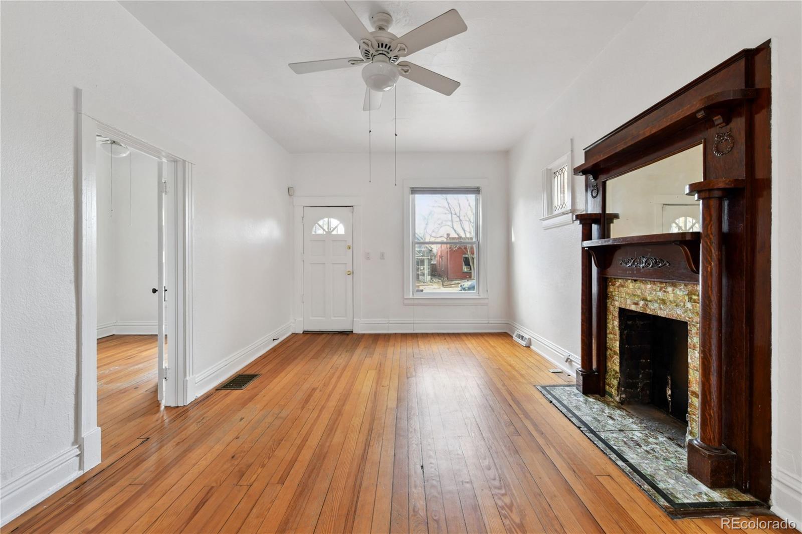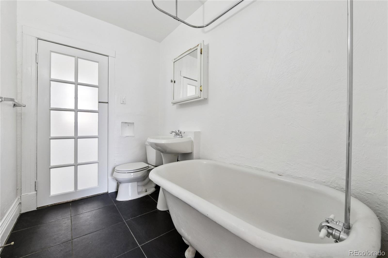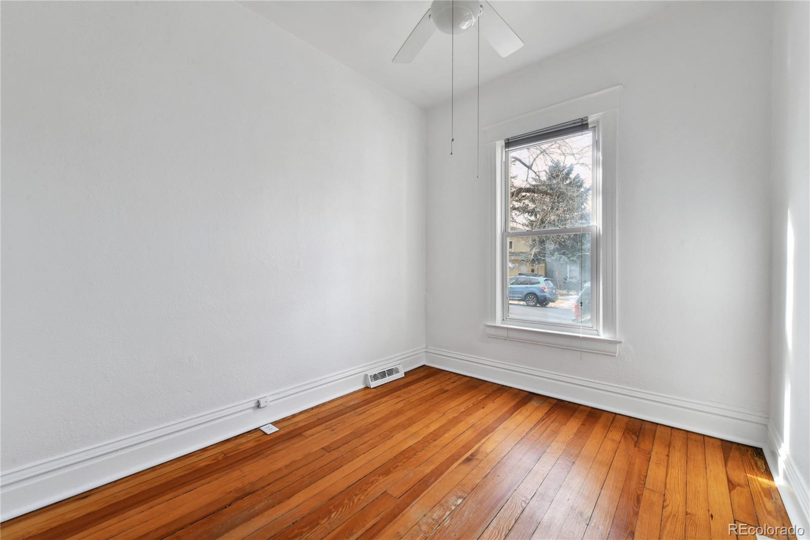 Welcome to this charming half-duplex in Denver’s historic Baker neighborhood, surrounded by timeless architecture and modern conveniences! Featuring fresh new interior paint throughout for a bright, updated feel! The living room greets you with original hardwood floors, soaring ceilings, and a decorative tiled hearth and fireplace. The kitchen blends style and function with an exposed brick wall, granite countertops, a built-in pantry, and French doors that open to your own private fenced patio—perfect for relaxing or entertaining. Upstairs, two bedrooms share a conveniently located full Jack-and-Jill bathroom complete with a classic clawfoot tub. The unfinished basement provides great storage space and laundry hookups. Outside, you’ll love the flagstone patio and ground-level wooden deck, plus the freedom of no HOA (party wall agreement with the neighbor). All of this comes in one of Denver’s most dynamic neighborhoods! Baker is known for its eclectic energy and unbeatable access to South Broadway’s vintage shops, breweries, restaurants, and live music. Favorites like Postino, Punch Bowl Social, Moxie Eatery, and The Mayan Theatre are all just minutes away. This is the perfect opportunity to enjoy a stylish home with incredible neighborhood vibes!