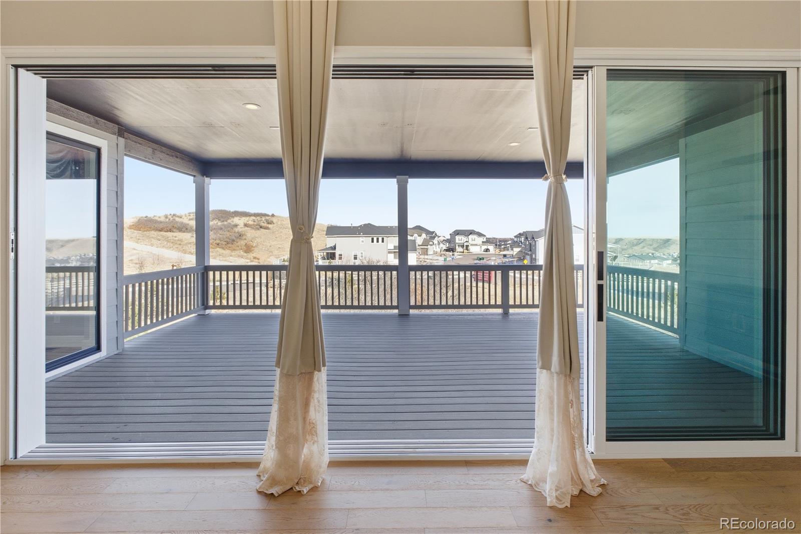 Discover refined luxury and everyday comfort in this exceptional 1-year-old contemporary home in The Ridge at Crystal Valley—the community’s very first resale, blending the freshness of new construction with beautifully completed upgrades. Designer lighting, window treatments, enhanced closet systems, and finished low-maintenance landscaping create a move in ready experience. Step inside and feel the sense of space. A grand, sun-filled entry opens to impressive soaring ceilings, expansive windows, and an airy layout designed for both connection and relaxation. The inviting family room features a fireplace and flows effortlessly into the dining area and chef-inspired kitchen, where granite counters, stainless steel appliances, a gas range, and a double oven make cooking and entertaining a delight. The 4-panel sliding door completely transforms the main level, creating a seamless transition to the outdoor deck and capturing Colorado’s indoor-outdoor lifestyle. The main floor primary suite provides a quiet retreat with a spa-style 5-piece bath, including dual sinks, a soaking tub, a spacious walk-in shower, and a large walk-in closet. Upstairs, a bright and versatile loft adds a second living area, along side an ensuite bedroom. Two additional bedrooms share a bathroom, and every bedroom features its own walk-in closet. A main floor study offers flexibility for work, hobbies, or creative space. The unfinished walkout basement has 10 foot ceilings and opens to a covered patio and presents endless opportunities to expand. The home sits on a desirable corner lot with trails steps from your door. Residents enjoy Crystal Valley’s community clubhouse including a seasonal pool, fitness center, and clubhouse lounge. A Toll Brothers warranty transfers to the new owner for added peace of mind. Ideally located just 12 minutes to Downtown Castle Rock - luxury living with convenience at your doorstep.