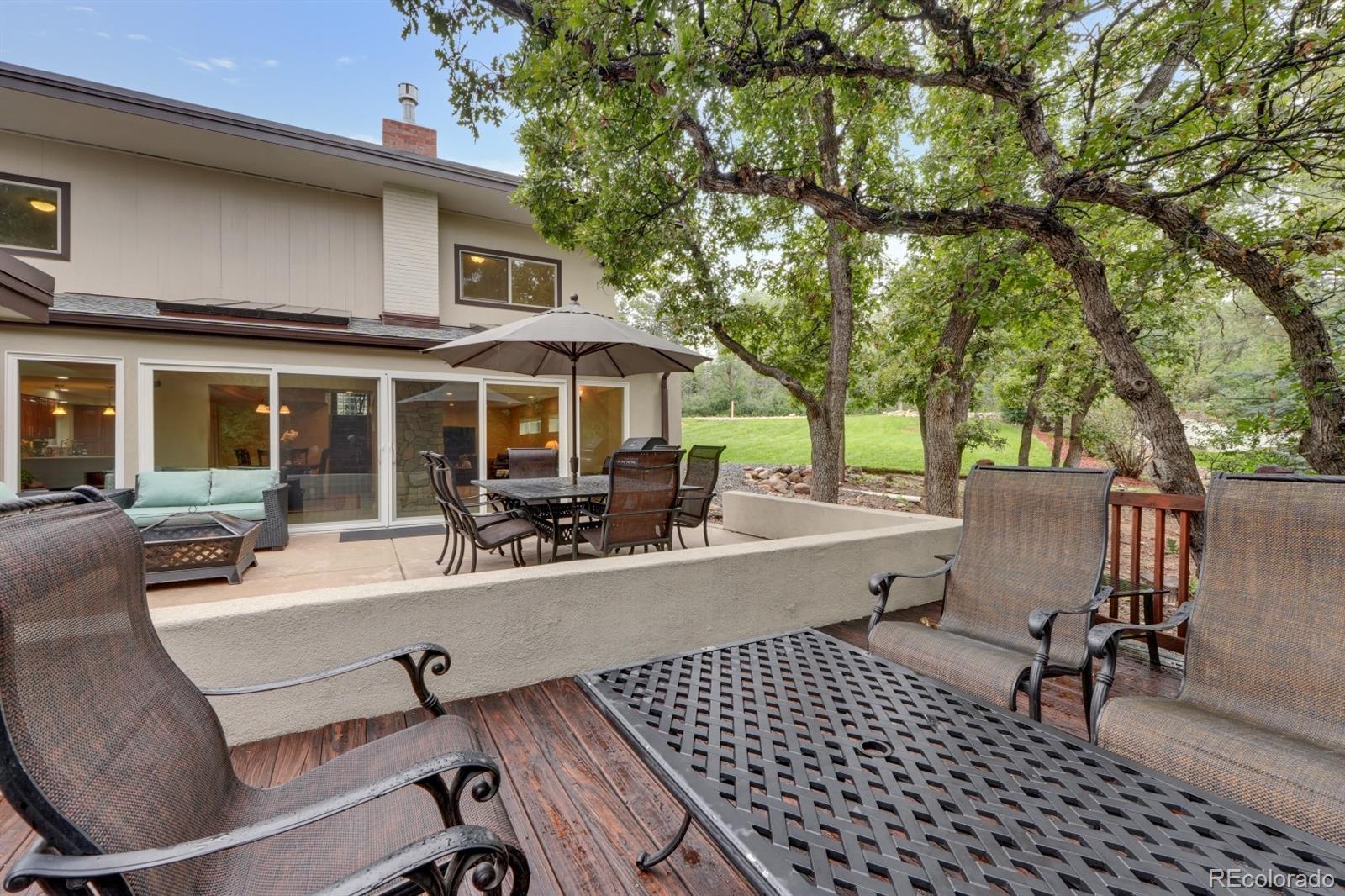 Experience refined mid-century design in this rare Elizabeth Wright Ingraham designed home. In the spirit of her grandfather, Frank Lloyd Wright's pioneering Usonian vision, this residence merges open-plan living, built-in details, and stone-and-wood materials. A masterful balance of heritage & natural harmony, this home is a living testament to a celebrated architectural lineage. Discover the perfect blend of comfort, style & functionality in this beautifully maintained 5-bedroom, 4-bath home, nestled in a serene setting in the Broadmoor area. Striking stucco & brick exterior to its thoughtfully updated interior, this residence offers timeless appeal w/ modern upgrades throughout. The curb appeal is enhanced by a custom front door & mature landscaping that creates a sense of tranquility. Enjoy seamless indoor-outdoor living w/ a Pella double-door slider leading to a concrete patio, & a private wooden deck overlooking the lower fenced yard. Oversized two-car garage featuring durable epoxy flooring, built-in cabinets and shelves, and two Tesla charging stations—perfect for modern living. You’ll find updated white double-panel doors throughout. The gourmet kitchen boasts Corian countertops, ample cabinetry, breakfast nook with direct access to a patio—perfect for entertaining or casual family meals. The formal dining room shares a two-sided Colorado style rock gas fireplace with the cozy living room. A sunroom with skylights and patio walkout adds extra charm and versatility. The primary suite includes a luxurious five-piece master bath with a jetted tub and a private walkout to the deck. Additional bathrooms have been updated, including a convenient half bath in the laundry room featuring a granite countertop and modern vanity. Hosting a gathering or enjoying quiet moments surrounded by nature, this property offers everything. Enjoy being minutes to the world-famous Broadmoor Hotel, Cheyenne Mountain, top-rated D12 schools, hiking, biking trails!