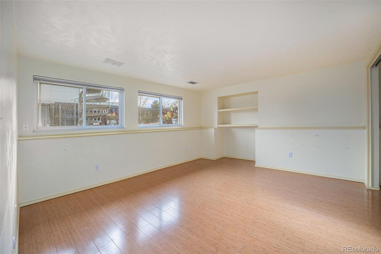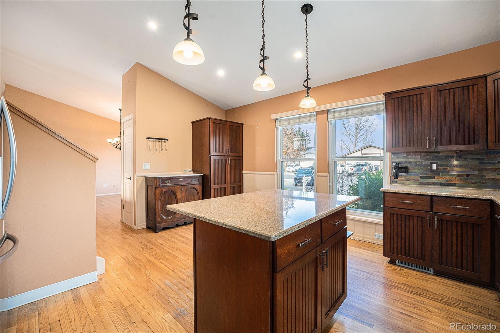 Welcome to this unique split-level home offering character, comfort, and versatile living spaces throughout. Upon entry, you’re greeted by a formal sitting room that sets an inviting tone. The modern kitchen features an island with bar seating and flows easily into the home’s upper and lower living areas. On the upper level, a cozy living space with a brick fireplace creates the perfect spot for relaxing, while the primary bedroom offers an ensuite bath with dual sinks for added convenience. The lower level includes two additional bedrooms and a full bath, providing flexibility for guests, work, or hobbies. The basement adds even more space with a large bonus room ideal for entertainment or recreation. Outside, the fully fenced yard features a patio, a storage shed, and plenty of green space for outdoor enjoyment. Conveniently located in Arvada, this home is just minutes from local parks, trails, shopping, and dining, with quick access to major roadways for easy commuting. Click the Virtual Tour link to view the 3D walkthrough. Discounted rate options and no lender fee future refinancing may be available for qualified buyers of this home.