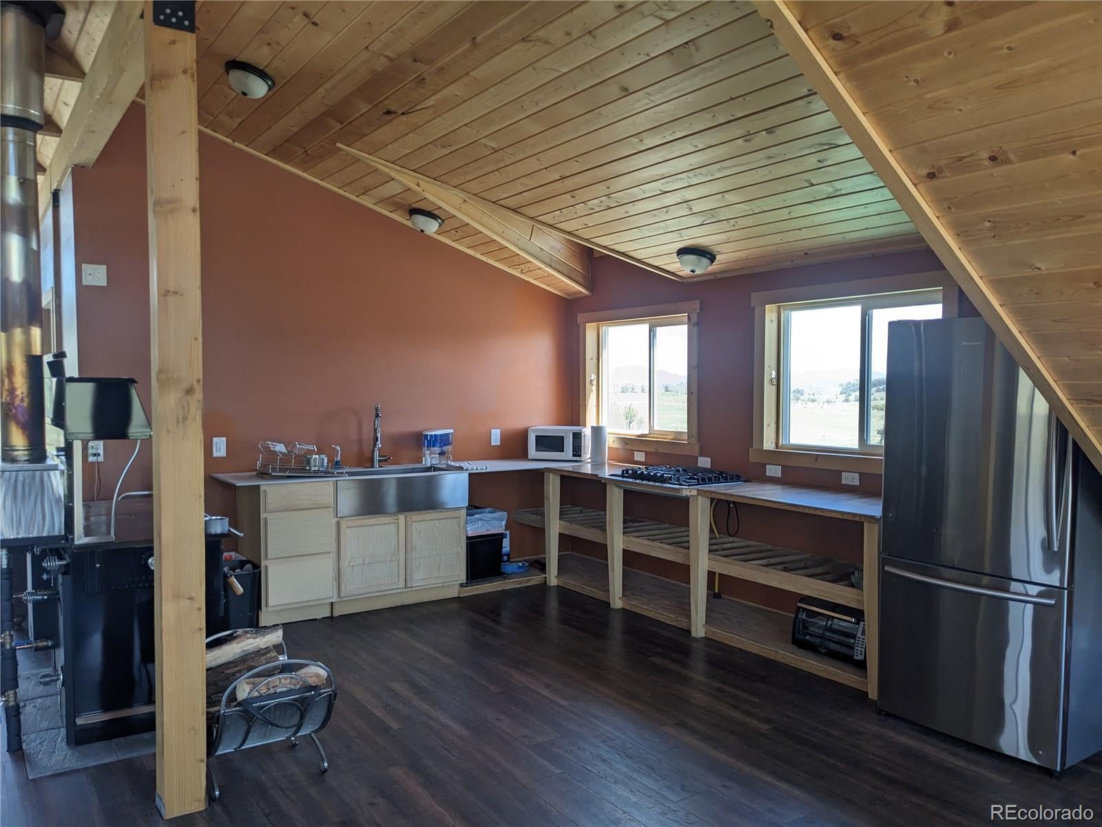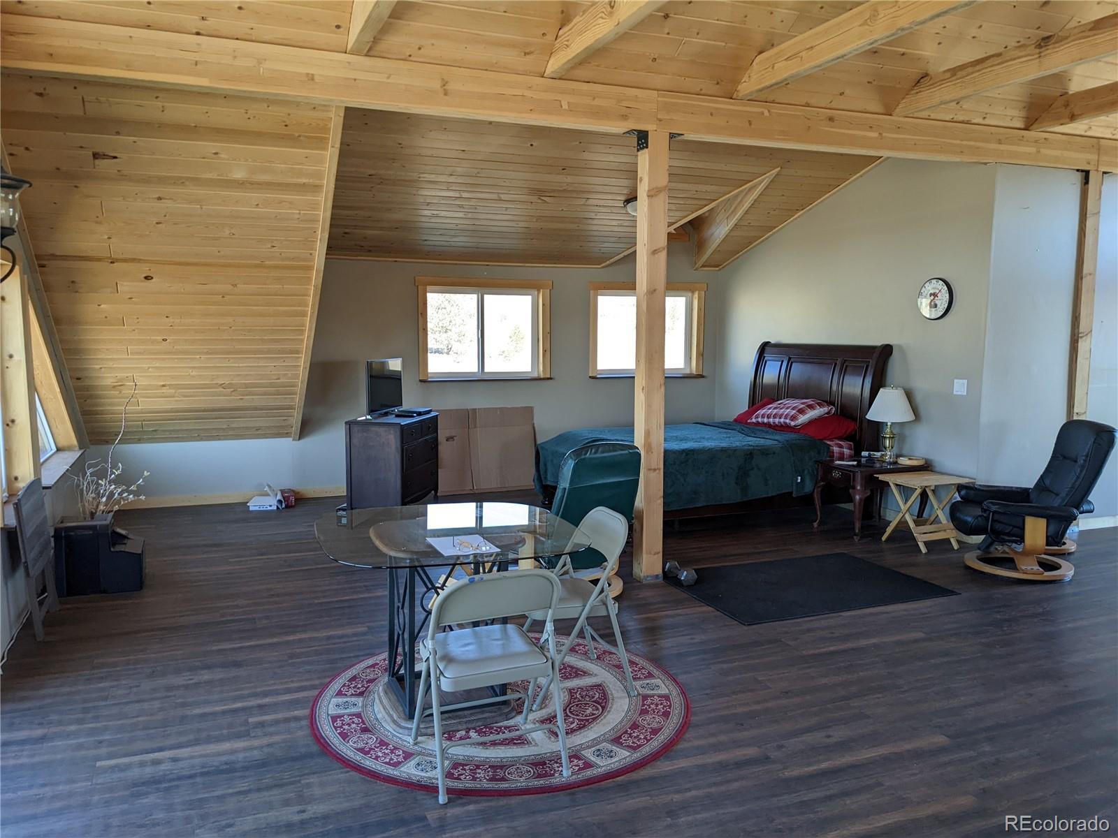 If you are looking for a well-priced family legacy ranch, the search is over. 1000 acre working Ranch, 160 deeded, 800 leased. These beautiful Colorado acres have registered water rights on multiple springs. Buffalo Pine Ranch has operated running 20 to 22 bison. Conservation easement free. The land is very gentle and a perfect mix of meadows and pines. The snowcapped views of the Continental Divide are stunning. Watch from your shop or upper deck as wildlife come to drink at the watering holes. Fenced and cross fenced, mix of solar electric high tensile/barbed wire. This off grid Barn home is self-sufficient. 12 GPM well water, Electric source: 5kw ground mount solar field, 4k watt wind turbine, backup15kw propane generator. Heat source: 4 zone in-floor heating from hydronic Pioneer Princess wood cook stove or propane. Plus 1 propane heater in mechanical room and 1 propane heater in shop.1st story: 36x36 shop/mechanical room, instant hot water heater, insulated and drywalled, vinyl windows, in-floor hydronic heat zone 1, shop lighting, built in workbenches, 2 12’x12’ bi-fold barn doors, 8’x7’ double barn door leading to 36’x12’ greenhouse. Greenhouse: grow year-round, 4 watering lines to planting beds, grow shelving, 2 backup propane