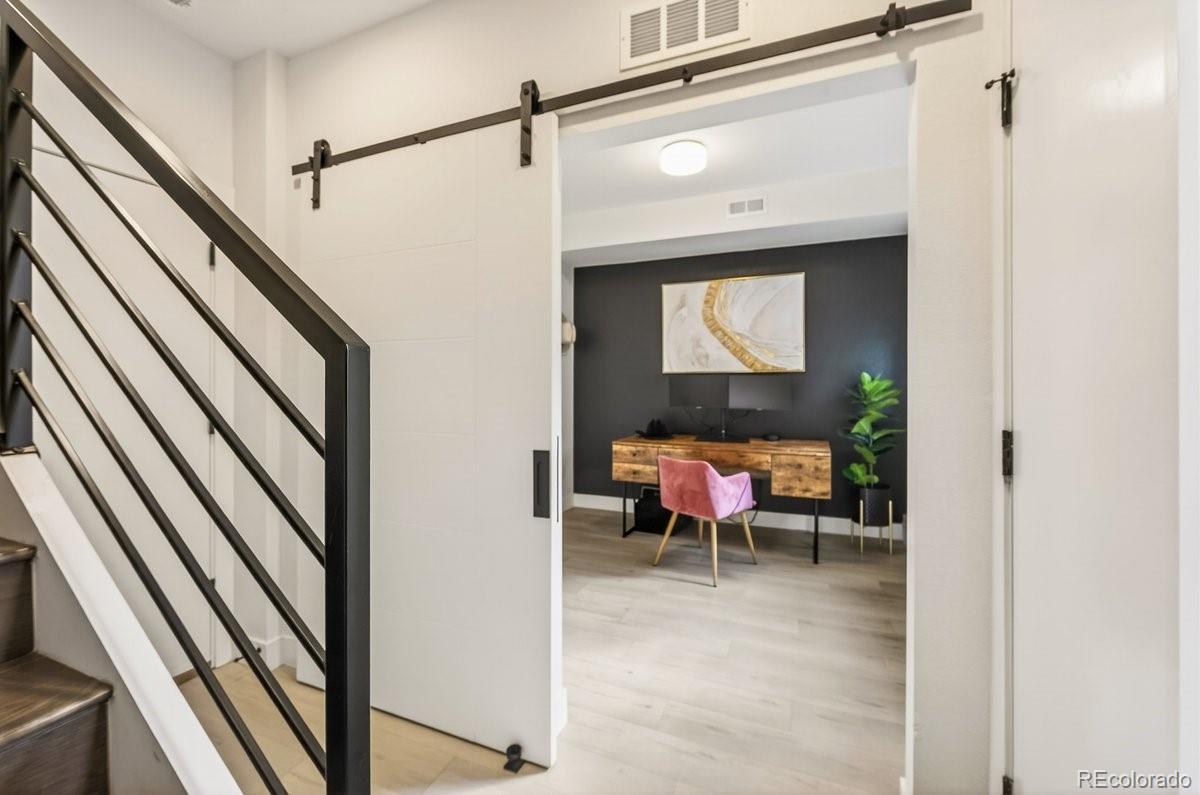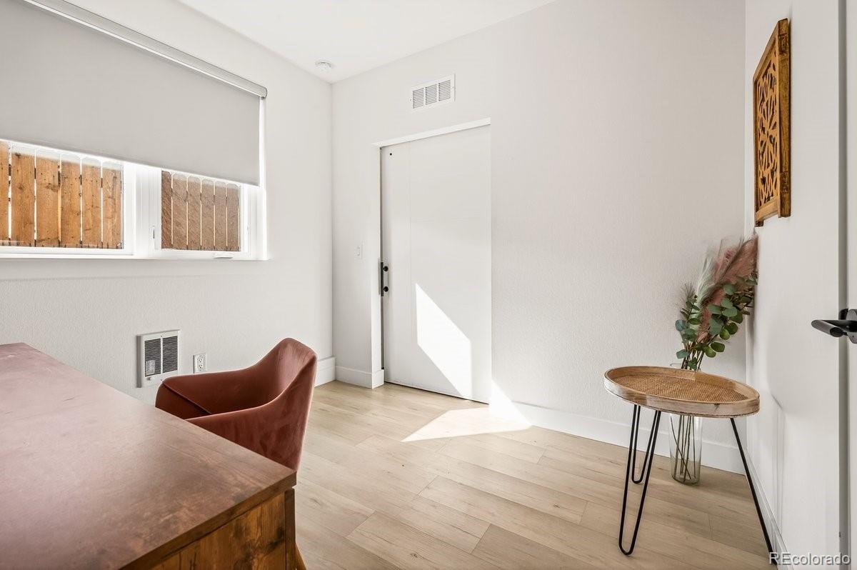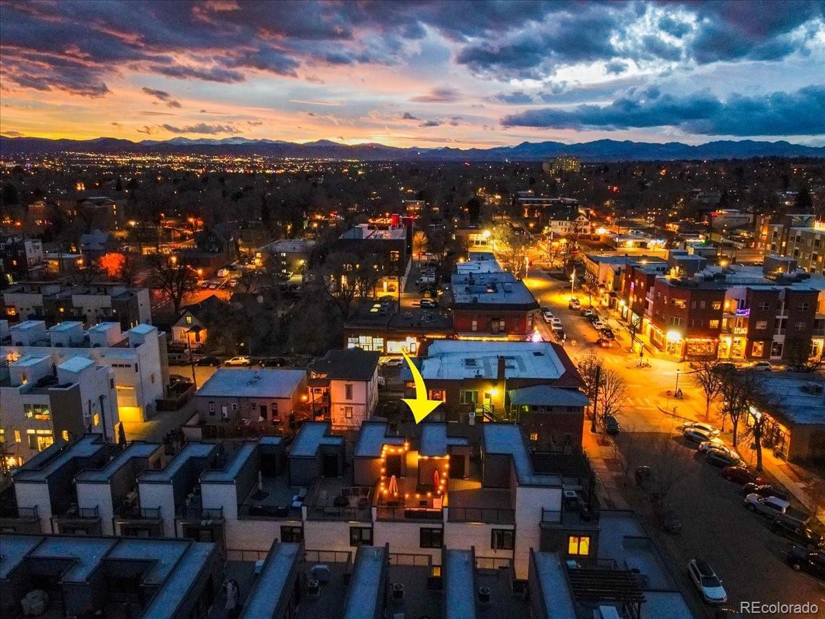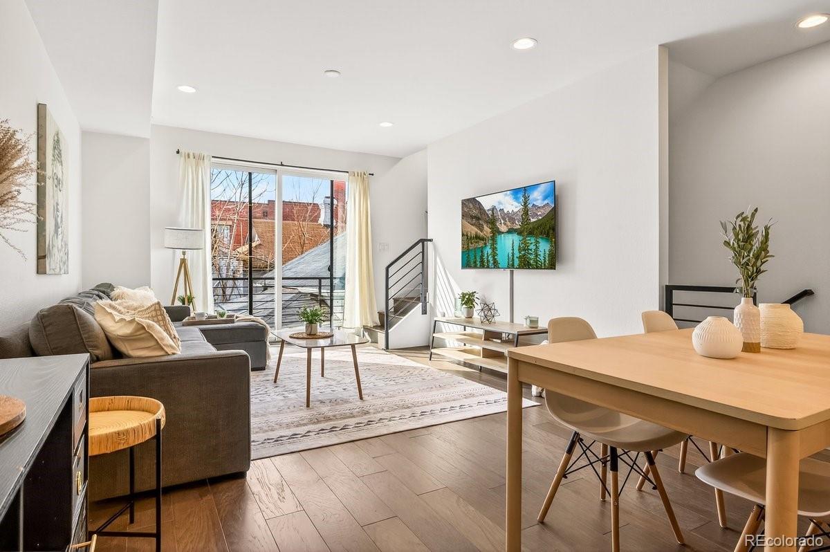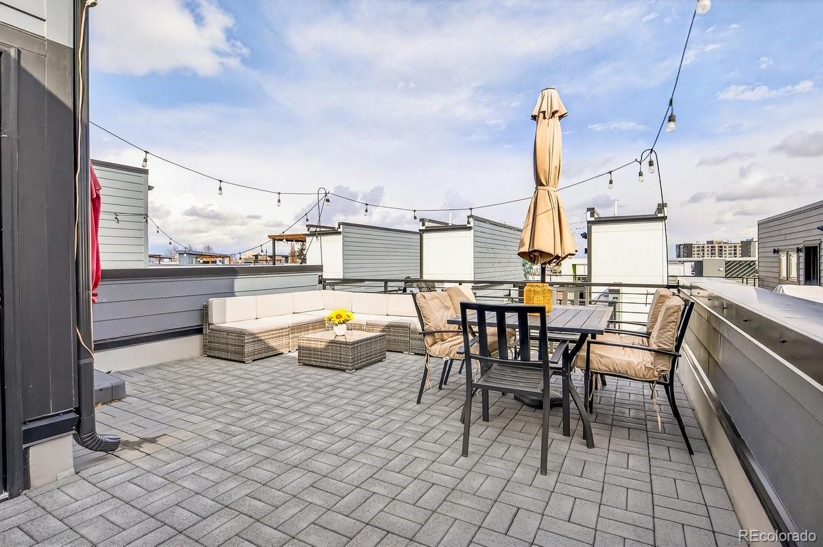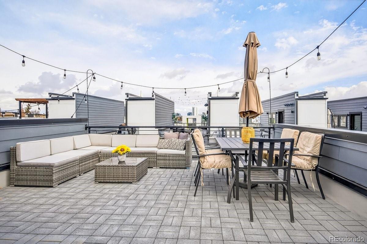 **OPEN HOUSE SAT AND SUN 10-1** Live in the heart of Jefferson Park where historic roots meet modern design. This three story 2020 contemporary townhome flows exactly how you want it to. Enter at ground level through your private attached garage into an entry area and a flexible non conforming 3rd bedroom with an en suite 3/4 bath. Perfect for a home office, guest space, workout room, or creative studio. Up one level, the open concept main floor connects kitchen, dining, and living seamlessly. Quartz countertops, two tone cabinetry, stainless appliances, and generous prep space anchor the kitchen. Oversized windows and a sliding glass door bring in natural light and open to a private balcony. The upper level features a spacious primary suite that fits a king bed, complete with an en suite bath and walk in closet. A second bedroom and full bath sit just down the hall. Laundry is conveniently located right outside the primary bedroom. Vaulted ceilings and abundant natural light create an airy feel that carries up to the rooftop. At the very top, your private rooftop deck becomes the showpiece. Professionally rebuilt in 2023 with a commercial grade Versico PVC waterproof membrane and concrete paver system, it offers durable long term outdoor living with mountain views and the perfect outdoor living room just in time for summer. Step outside and you are on the Jefferson Park square surrounded by neighborhood favorites including William Paul Floral, Santo Remedio Mexican Cuisine, 2914 Coffee, Sexy Pizza, and more. Enjoy walkability to Empower Field at Mile High for summer concerts and Broncos season. This is true lock and leave living in one of Denver’s most vibrant pockets.