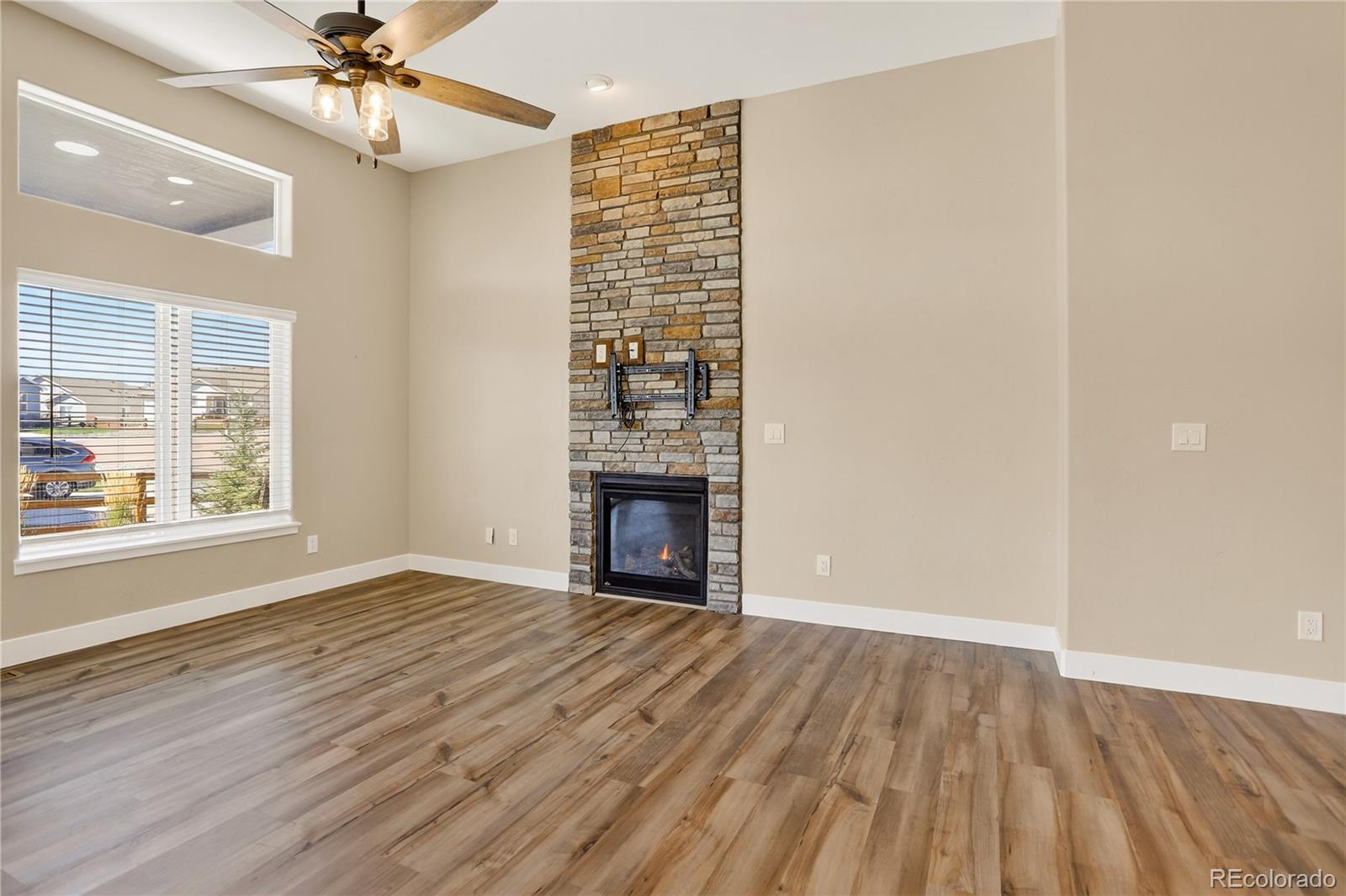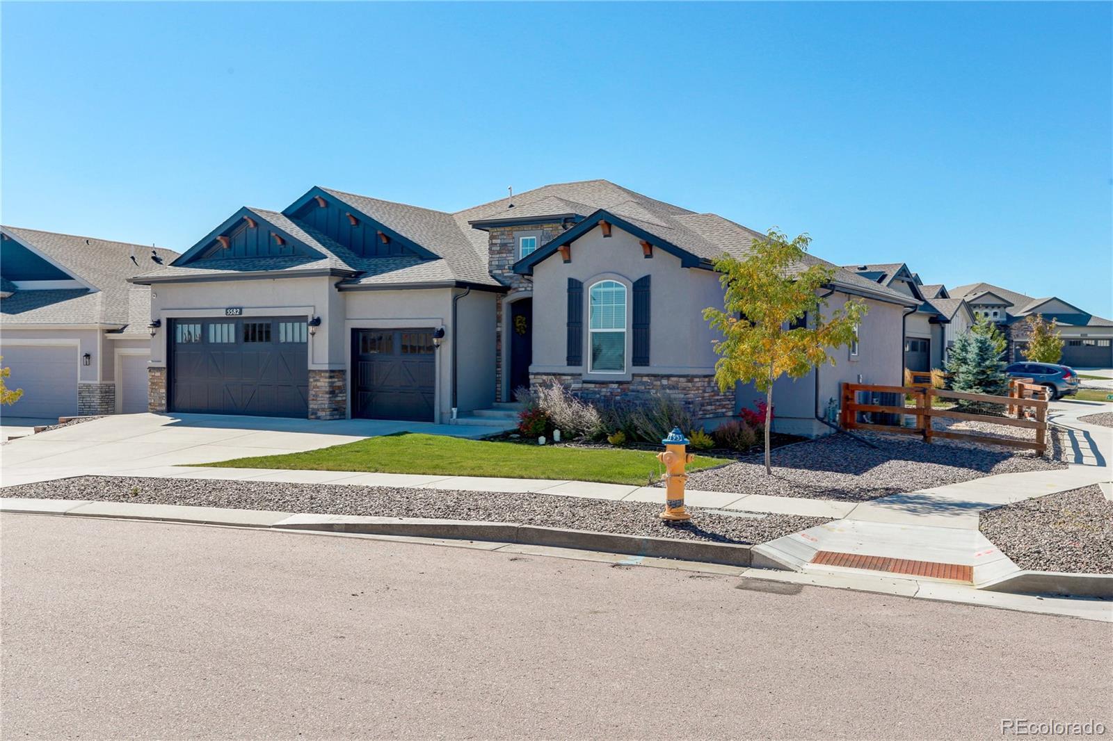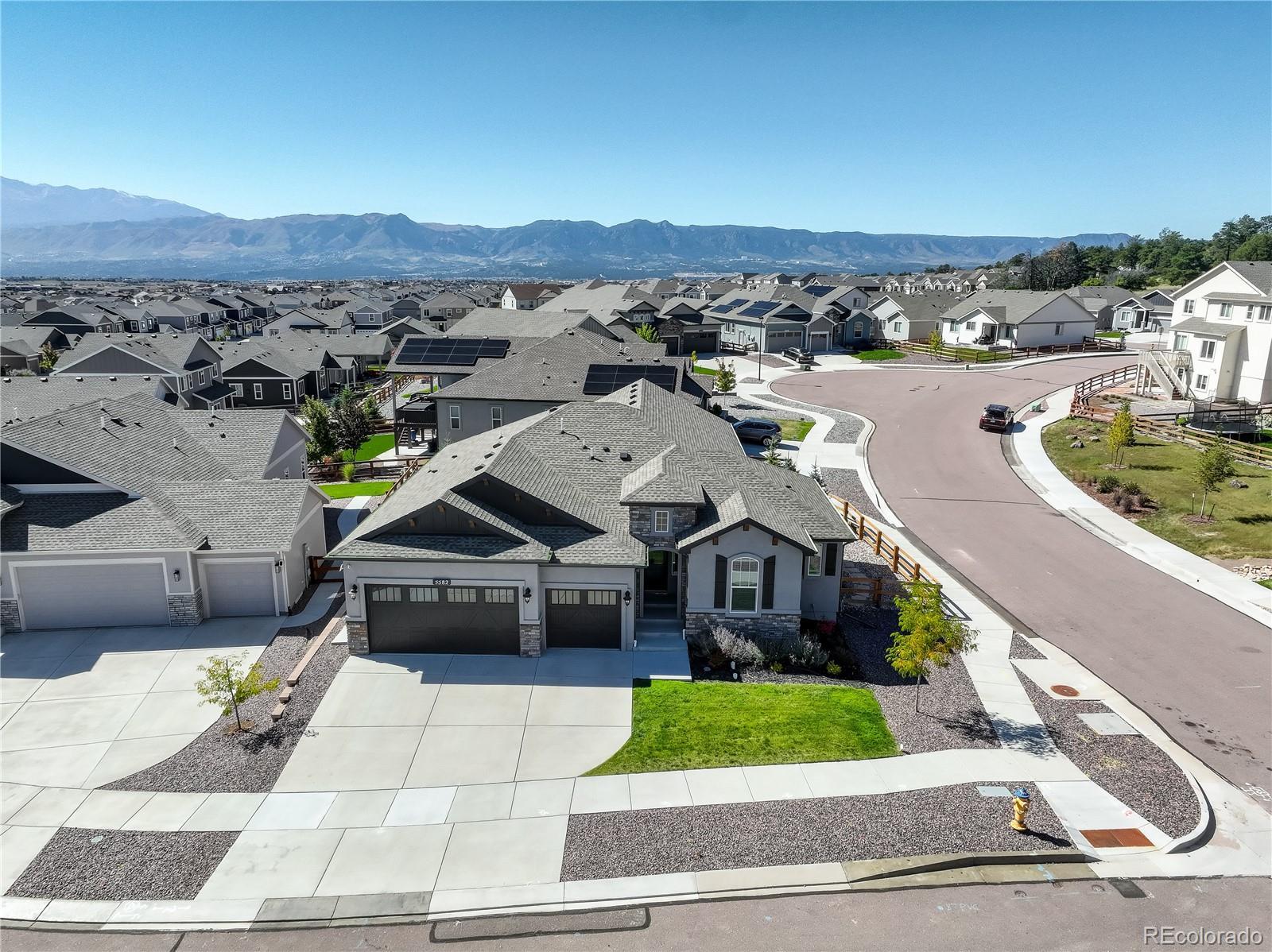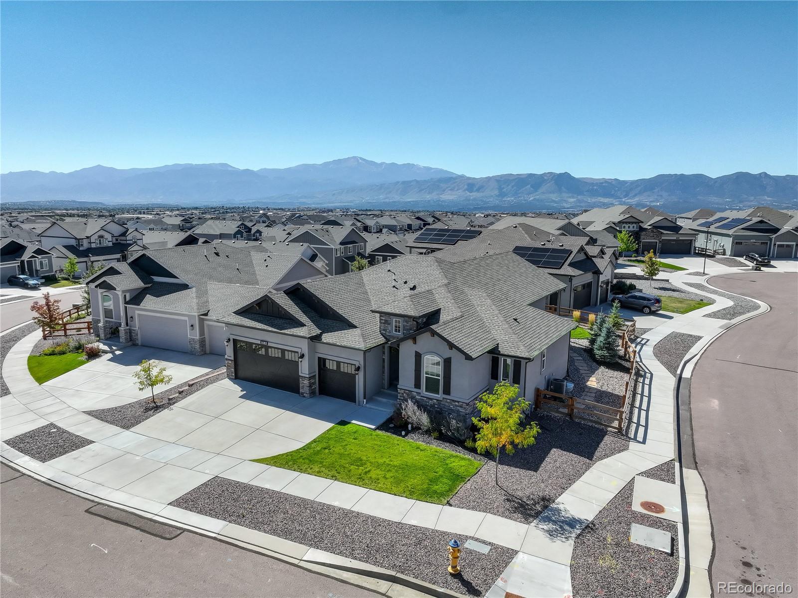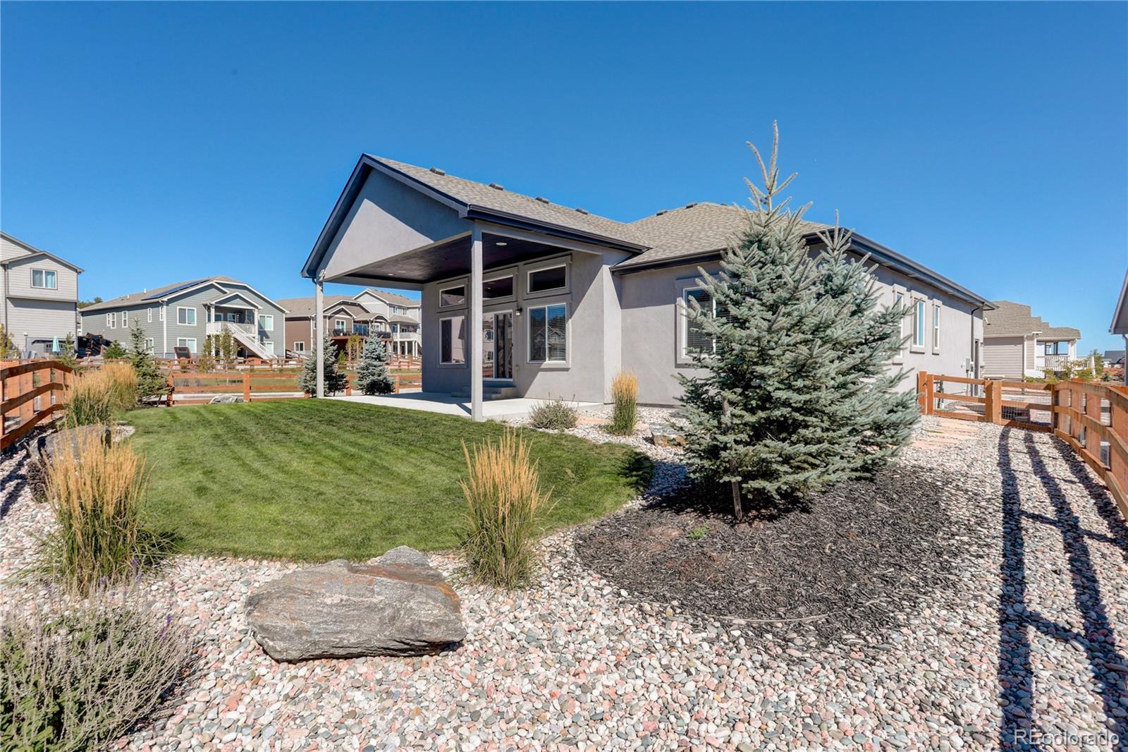 This newer home is ideally located on a corner lot in Bradley Ranch, and better yet, it’s decked out with all the thoughtful upgrades that will have you sighing, “It’s good to be home.” The 3,720 square-foot ranch home features every important comfort, including a 5-piece master bath with a jetted tub, ceiling fans in every bedroom, quartz counters in the bathrooms, a gas fireplace, and of course, mountain views. Kick back or cook up a storm in the open living space, including the upgraded gourmet kitchen with high-end finishes, premium soft-close cabinetry, quartz countertops, pantry, large island, and beautiful tile backsplash. Curl up by the gas fireplace in chilly months, or let your socializing spill onto the huge 28’ X 12’ covered back patio when the Colorado weather is really showing off. The backyard is fenced and professionally landscaped. The whole-house humidifier, high efficiency furnace and water heater, sump pump, and central A/C will give you peace of mind and comfort all year. Spread out in five bedrooms and three bathrooms and never worry about storage thanks to the large unfinished basement storage room and the finished space below the stairs. The 3-car garage is equipped with its own storage system and bike hangers so there’s space for all of your gear and decor. Between the whole-house sound system with built-in equipment and the huge granite basement wet bar, you’re ready to relax or entertain in any part of the home. From the master bedroom’s crown molding to the basement’s fabulous wet bar, this home is move-in ready and still beautifully new. Use your VA Eligibility to assume this attractive VA loan! See it before it’s gone!