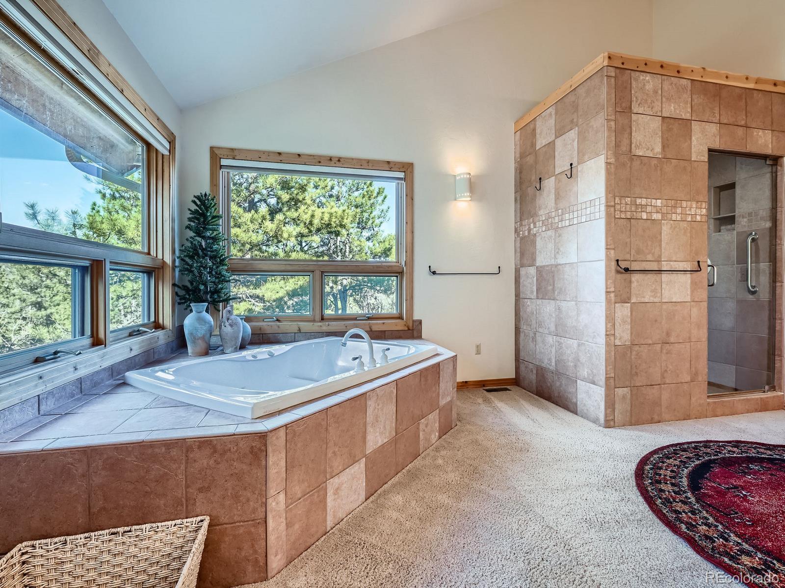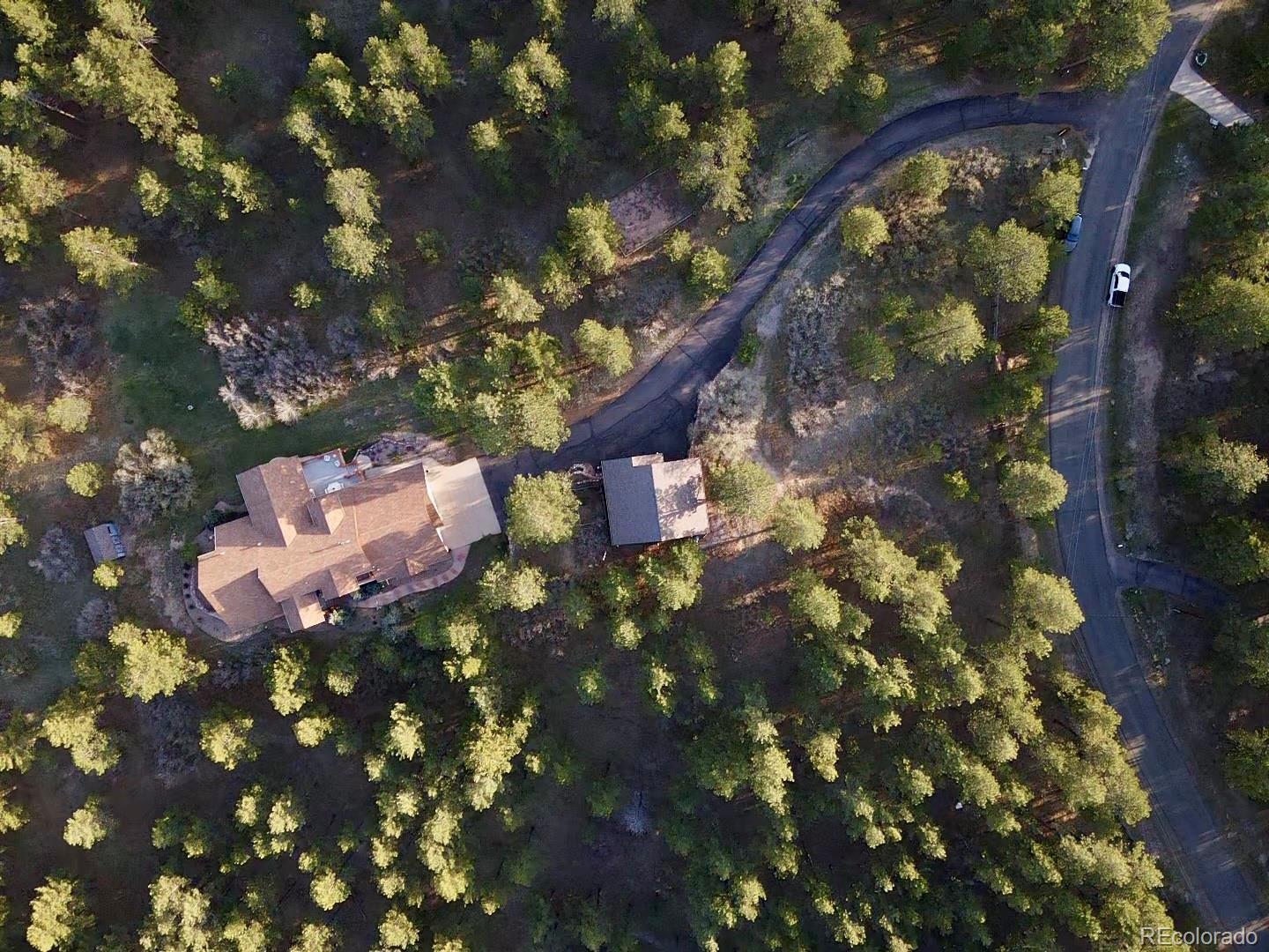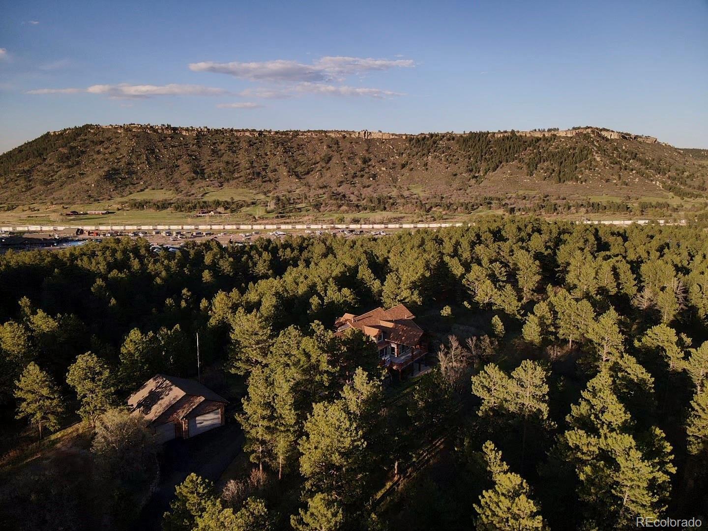 Discover the perfect blend of luxury and tranquility in this expansive 5,135 square foot home featuring 4 spacious bedrooms, 5 bathrooms, and breathtaking panoramic views. Designed for both comfort and entertaining, the open-concept layout includes center island kitchen with knotty pine custom cabinets, elegant dining area with a custom mural, and multiple living spaces with large windows that bring the outdoors in. Bonus open living area in the loft with a built-in office space and a covered patio with stunning views. Main level family room features soaring t&g ceilings with 18' log beams and a 3 sided floor to ceiling stone gas fireplace. Large Primary bedroom retreat complete with a gas fireplace, sitting area, private deck, and large walk-in closet. 5 piece primary bath includes separate sinks, cabinets and counter space, jetted soaking tub and walk-in twin head steam shower. Walkout basement boasts a huge great room with built-in entertainment center. 3 additional bedrooms and 2 baths. The home includes both an attached 3-car garage and an additional 3-car detached garage. Both are oversized and heated, perfect for car enthusiasts, workshops, or extra storage. Enjoy ultimate privacy and space with 35 pristine acres, ideal for equestrian use, outdoor recreation, or simply soaking in the natural beauty. Outdoor living space is abundant with a garden level back patio, covered front porch and expansive back deck perfect for entertaining or relaxing and enjoying the views, trees and wildlife. This rare property offers the feel of a secluded mountain escape while remaining just minutes from town amenities in nearby Larkspur, Castle Rock or Monument. Whether you're looking for a full-time residence, vacation property or investment opportunity, this property delivers unmatched value and potential. Situated perfectly between Denver International Airport and Colorado Springs Airport for added convenience.