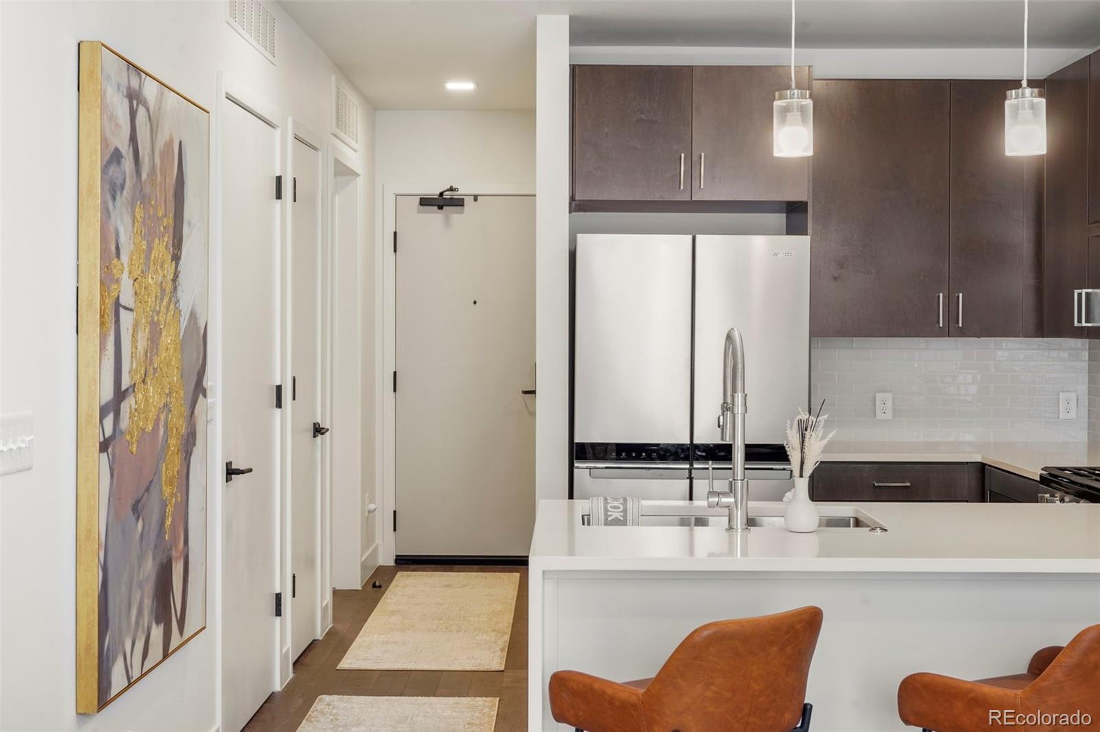 This MOVE-IN READY, top floor, south-facing studio with a den offers an array of high-end features that will make you feel right at home. The kitchen boasts designer cabinets, Stainless GE appliances including gas range, solid surface quartz countertops, and full tile backsplash. In the bathroom, you’ll find large format floor tiles and full tile surrounds in the shower. The living, kitchen and den area features engineered wood flooring, creating a warm and inviting ambiance. Secure access control ensures your safety, while the secured bike room caters to your active lifestyle. The furnished lobby, complete with a ping pong table, fireplace, and TV, provides a welcoming space to relax and connect with neighbors. And don’t miss the rooftop deck with breathtaking mountain views—a perfect spot to unwind after a long day. Location? Unbeatable. SoBo 58 is unlike any other mid-rise in Denver. Less than a mile from Platt Park and three blocks from the Evans Light Rail Station, it offers easy access to local favorites like Sushi Den, Corvus Coffee, Joe Willy's, Joy Hill, Park Burger, Snarfs, Bacon Social House, and Adelitas. Plus, South Broadway is undergoing extensive infrastructure improvements, including a pedestrian bridge to Overland Park, bike-friendly corridors, and enhanced public outdoor spaces. Whether you’re commuting downtown, to the Denver Tech Center, or catching a flight at DIA, this central location makes it a breeze. And with DU, South Pearl Street, Wash Park, and the South Platte River Trail System within walking or biking distance, you’ll have everything you need right at your doorstep. Schedule a showing today and experience the best of Denver living!