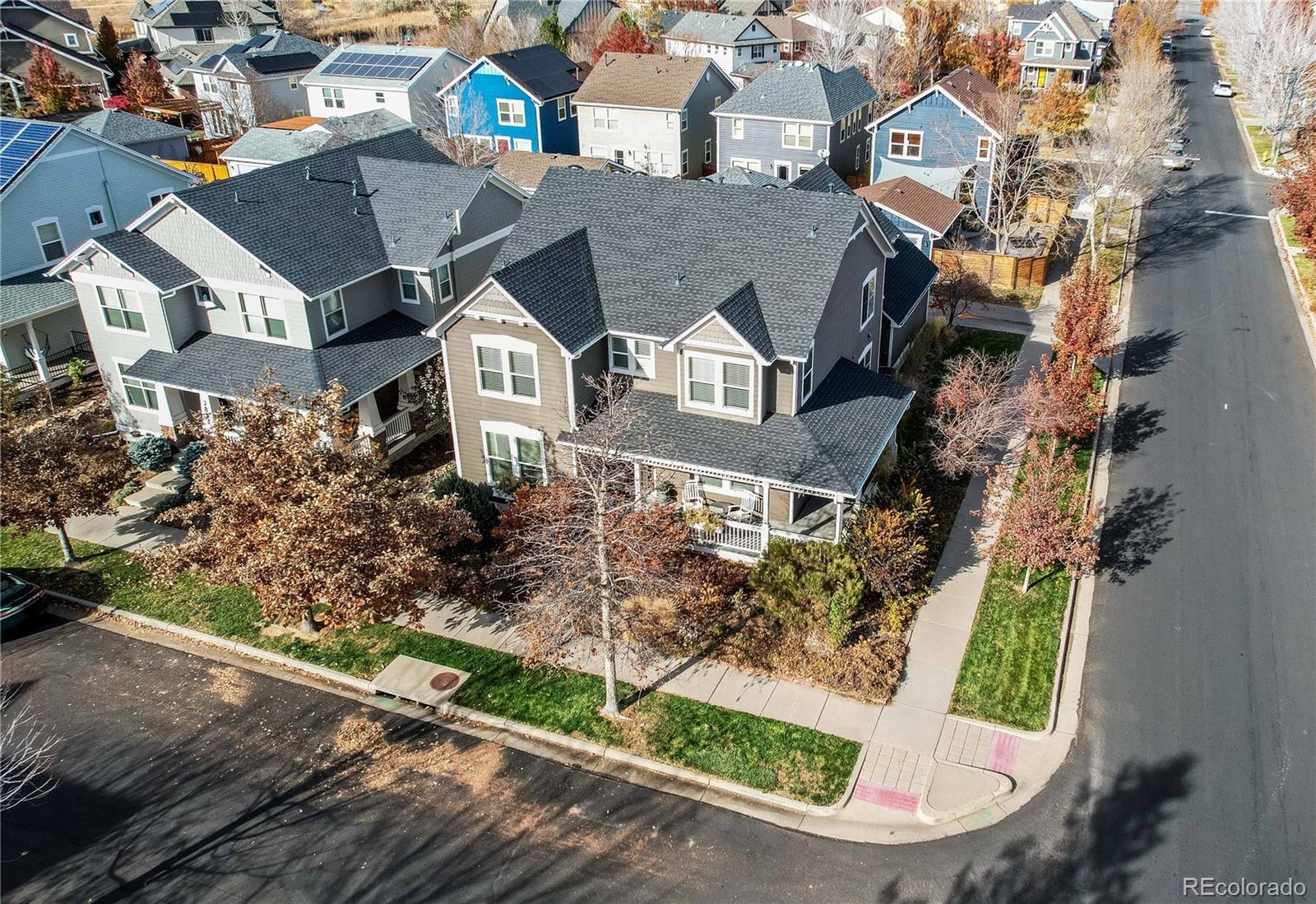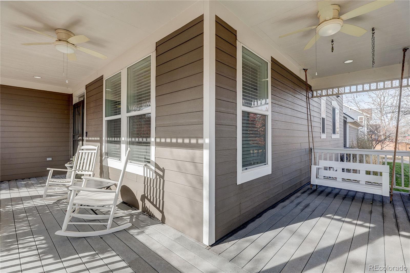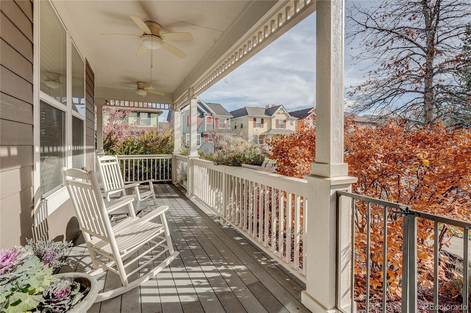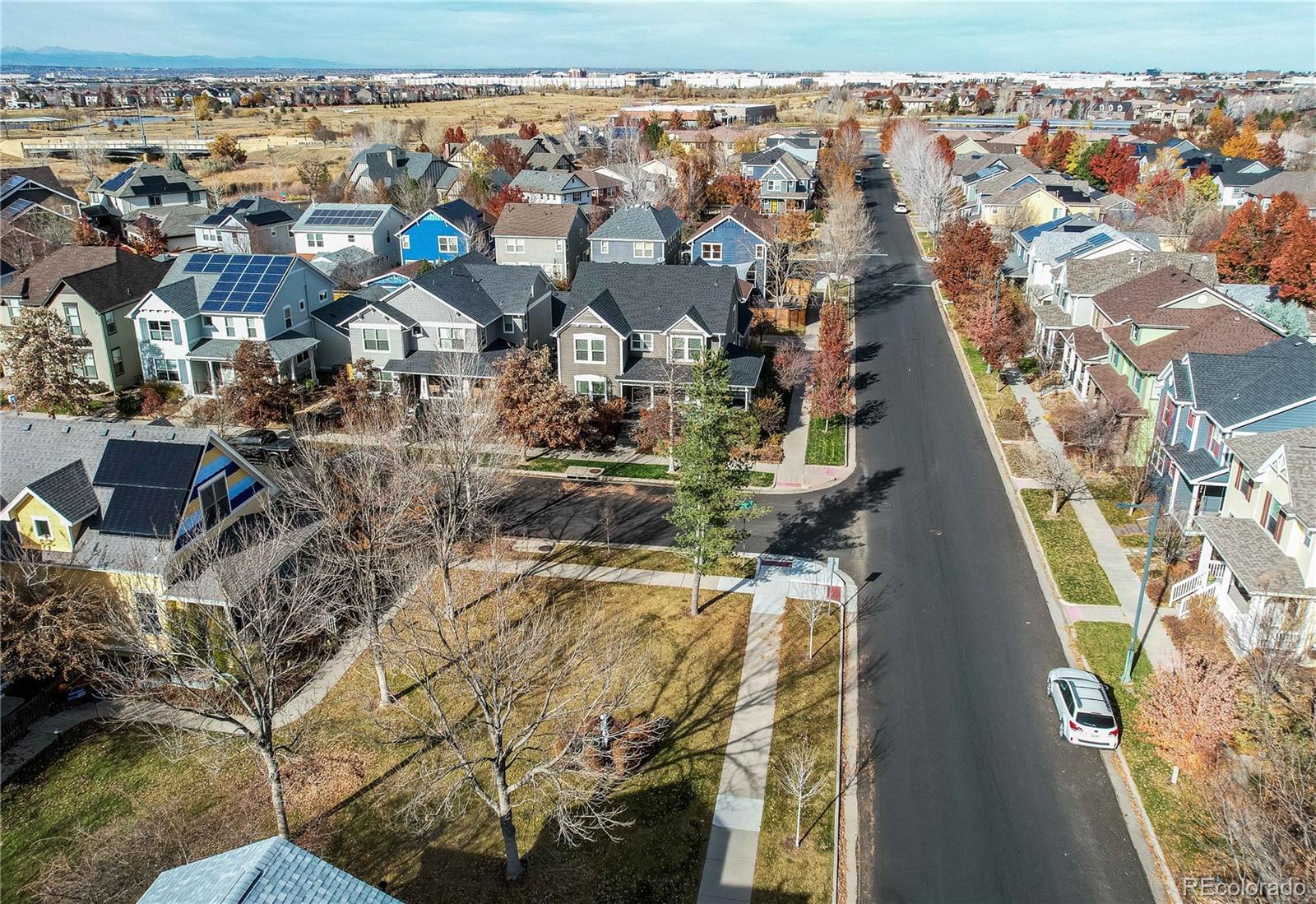 Beautifully updated 4-bed, 5-bath home in the heart of Central Park with nearly 4,000 sq ft of finished living space. Perfectly situated in desirable Eastbridge, this home sits directly across from a peaceful neighborhood park and features an expansive wrap-around front porch — ideal for relaxing or connecting with neighbors. Inside, you’ll find gorgeous hardwood floors throughout the main and upper levels and an open, inviting floor plan perfect for entertaining. The completely renovated gourmet kitchen is the true heart of the home, showcasing top-of-the-line appliances, a gas cooktop, double ovens, and a generous island that flows seamlessly into the living areas and private backyard retreat. A spacious eat-in area, elegant dining room, and main-floor office with custom built-ins complete the main level. Upstairs, the luxurious primary suite features an expansive walk-in closet with custom built-ins, a spa-like five-piece bath with soaking tub and dual vanities, and a convenient laundry room. During the major remodel and addition, a large storage area above the garage was added with easy access from the suite. Thoughtful past updates have created abundant storage throughout the home. The fully finished basement extends your living space with an exercise room, second family room, wet bar with dishwasher, game/media areas, and an additional bedroom with ¾ bath. Modern upgrades include a newer furnace, A/C, tankless water heater, roof, and EV charger. The outdoor space is a natural extension of the home — private, beautifully landscaped, and ideal for gatherings. Just a short stroll to Stanley Marketplace, Eastbridge shops and dining, F-15 Pool, Westerly Creek trails, and the Central Park Rec Center. Minutes to Anschutz Medical Campus, DIA, and downtown via the A-Line light rail. A perfect home in the perfect neighborhood — Central Park living at its finest!