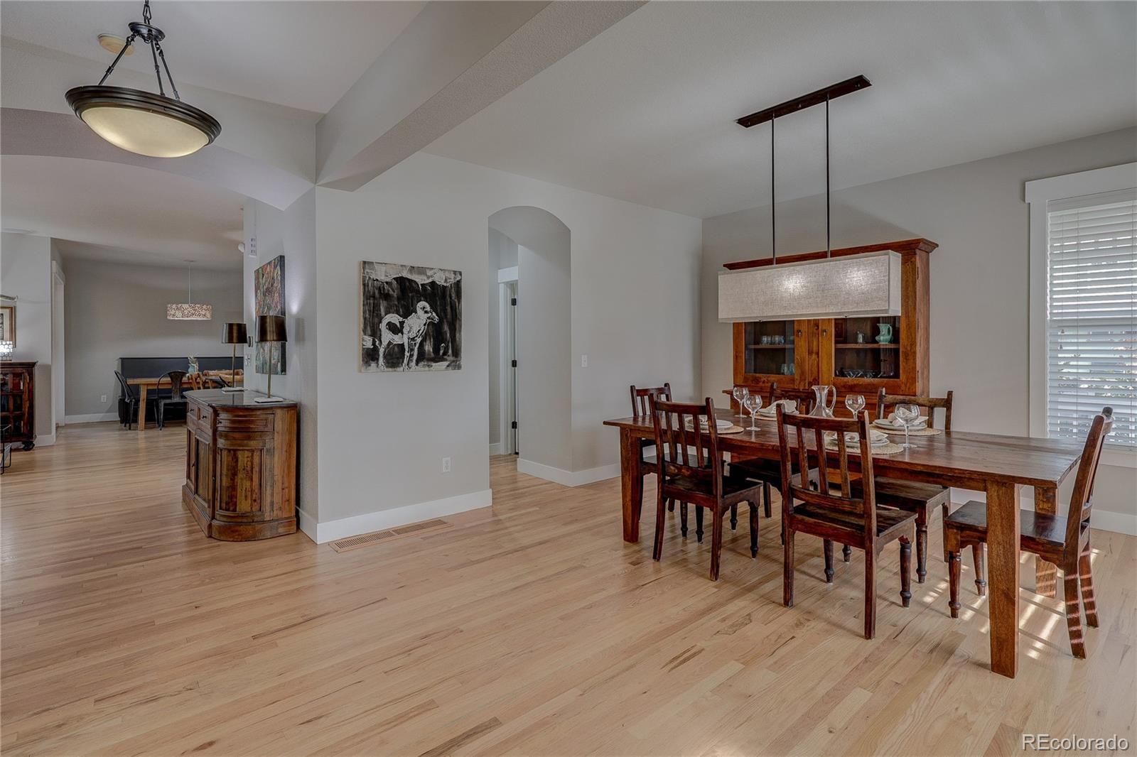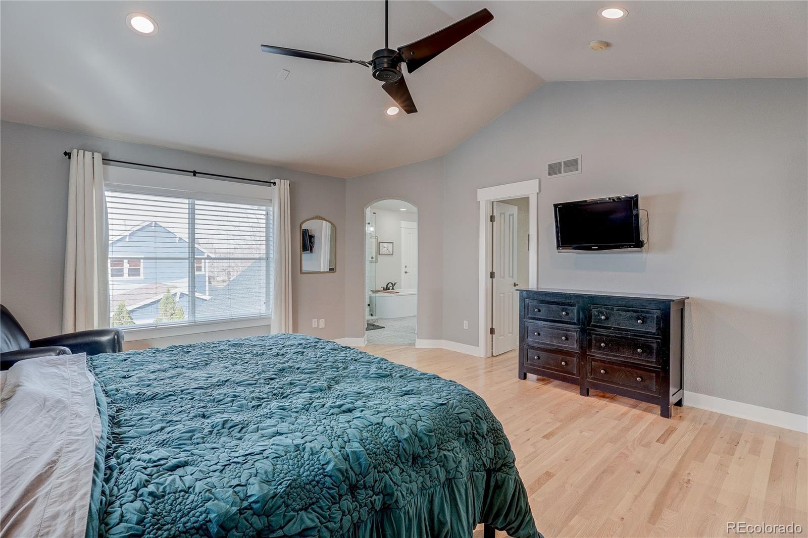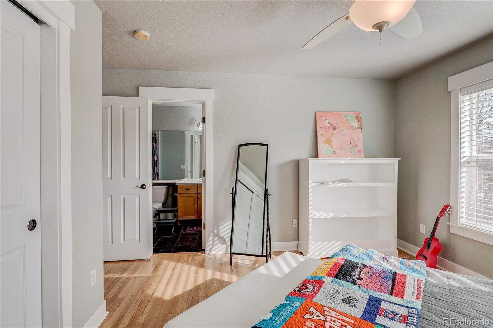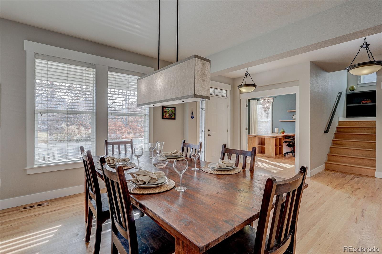 Beautifully updated 4-bed, 5-bath home in the heart of Central Park with nearly 4,000 sq ft of finished living space. Perfectly situated in desirable Eastbridge, this home sits directly across from a peaceful neighborhood park and features an expansive wrap-around front porch — ideal for relaxing or connecting with neighbors. Inside, you’ll find gorgeous hardwood floors throughout the main and upper levels and an open, inviting floor plan perfect for entertaining. The completely renovated gourmet kitchen is the true heart of the home, showcasing top-of-the-line appliances, a gas cooktop, double ovens, and a generous island that flows seamlessly into the living areas and private backyard retreat. A spacious eat-in area, elegant dining room, and main-floor office with custom built-ins complete the main level. Upstairs, the luxurious primary suite features an expansive walk-in closet with custom built-ins, a spa-like five-piece bath with soaking tub and dual vanities, and a convenient laundry room. During the major remodel and addition, a large storage area above the garage was added with easy access from the suite. Thoughtful past updates have created abundant storage throughout the home. The fully finished basement extends your living space with an exercise room, second family room, wet bar with dishwasher, game/media areas, and an additional bedroom with ¾ bath. Modern upgrades include a newer furnace, A/C, tankless water heater, roof, and EV charger. The outdoor space is a natural extension of the home — private, beautifully landscaped, and ideal for gatherings. Just a short stroll to Stanley Marketplace, Eastbridge shops and dining, F-15 Pool, Westerly Creek trails, and the Central Park Rec Center. Minutes to Anschutz Medical Campus, DIA, and downtown via the A-Line light rail. A perfect home in the perfect neighborhood — Central Park living at its finest!