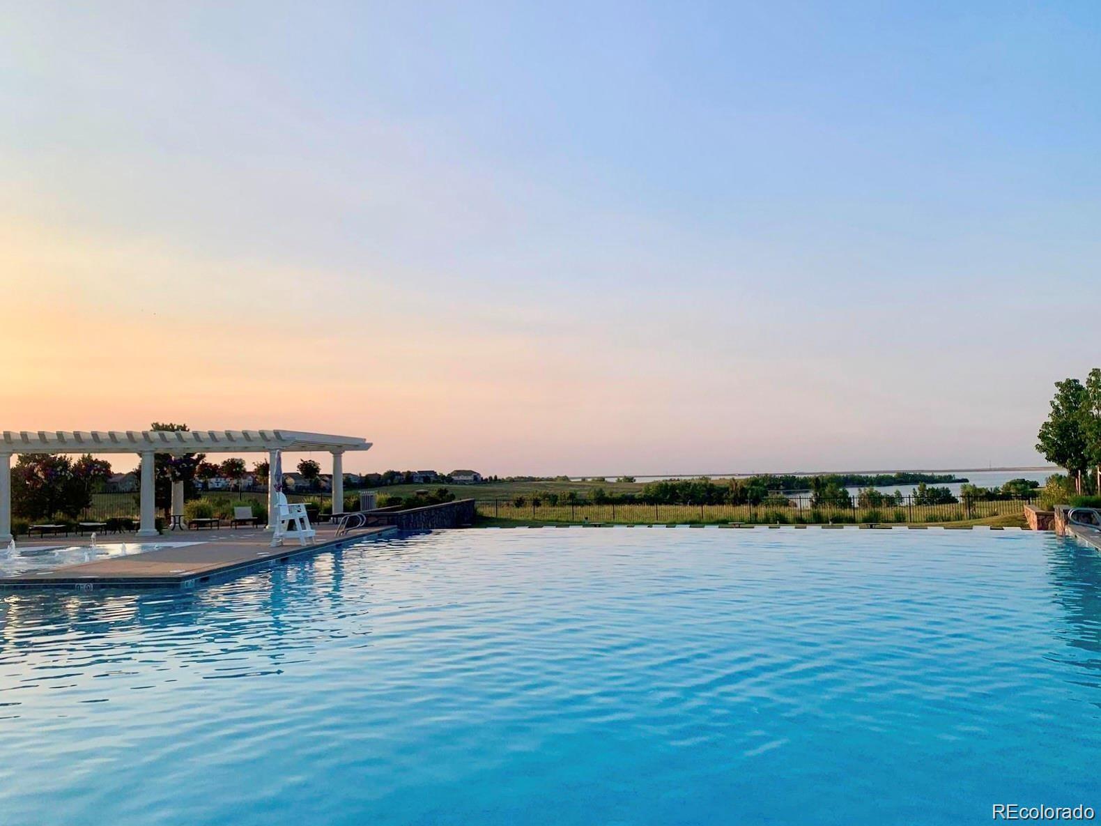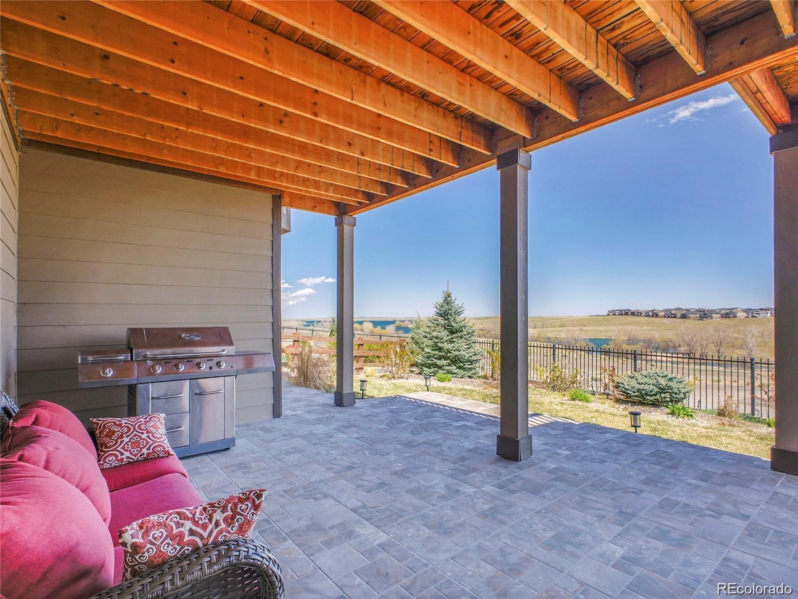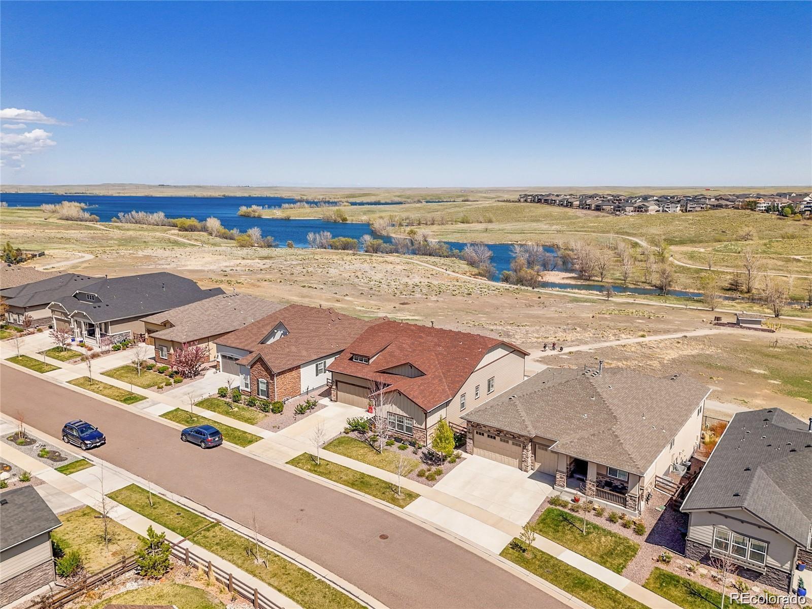 Experience refined luxury in this beautifully upgraded ranch-style home, perfectly positioned in the prestigious Lake District of Southshore—****backing directly to open space and the stunning Aurora Reservoir****. Built by Richmond American Homes, this spacious Delaney floor plan features a finished walkout basement and panoramic water views that elevate everyday living. Step inside to discover an open and airy layout, elevated by soaring ceilings and natural light that fills every corner. The main level offers 3 generously sized bedrooms, including a private primary suite, along with a convenient guest powder room. The finished basement adds 2 more bedrooms—perfect for guests, multigenerational living, or a dedicated home office. The heart of the home is a welcoming great room that flows seamlessly into a chef’s kitchen featuring a large island with bar seating, an eating nook, high-end cabinetry, double ovens, a cooktop, and a built-in microwave. A formal dining room just off the kitchen is perfect for entertaining and special occasions. What truly sets this home apart is sliding wall of windows that opens to breathtaking, unobstructed views of the reservoir and surrounding open space—bringing Colorado’s natural beauty right into your living room. The walkout basement is an entertainer’s dream, complete with a full bar, media zone, space for a pool table, and two additional guest bedrooms. Private backyard oasis featuring a hot tub and seating area—ideal for relaxation and soaking in the views. Enjoy direct access to trails and reservoir activities right from your backyard. Just an 8-minute walk takes you to the neighborhood clubhouse, where you’ll find a swimming pool, full athletic facilities, and year-round community events. Tucked away on a quiet cul-de-sac, this home offers privacy, minimal traffic, and a peaceful lifestyle—all within the highly rated Cherry Creek School District. 3-car garage and thoughtful upgrades throughout.
