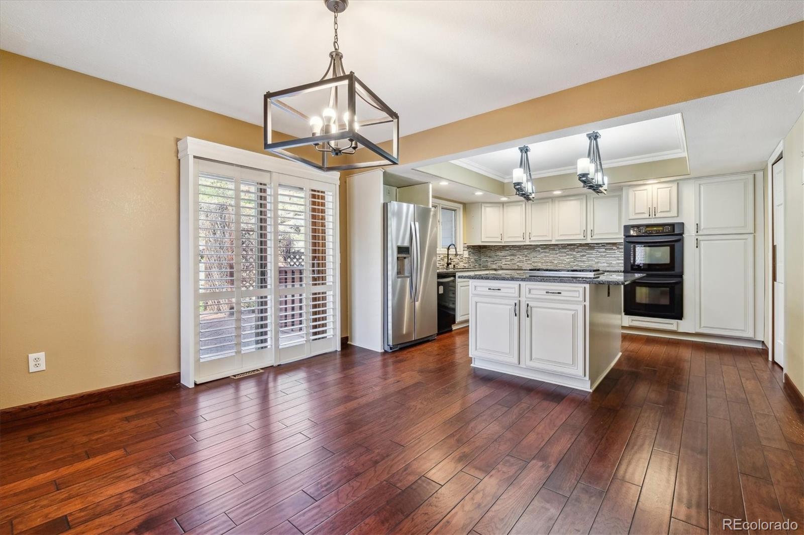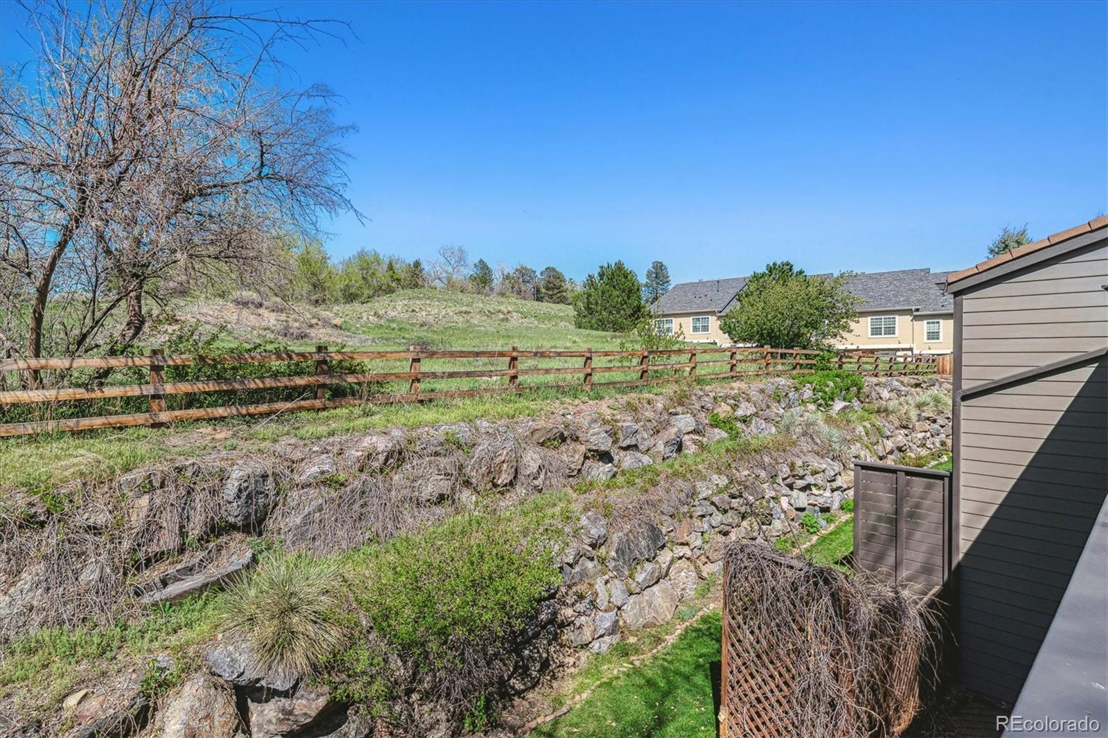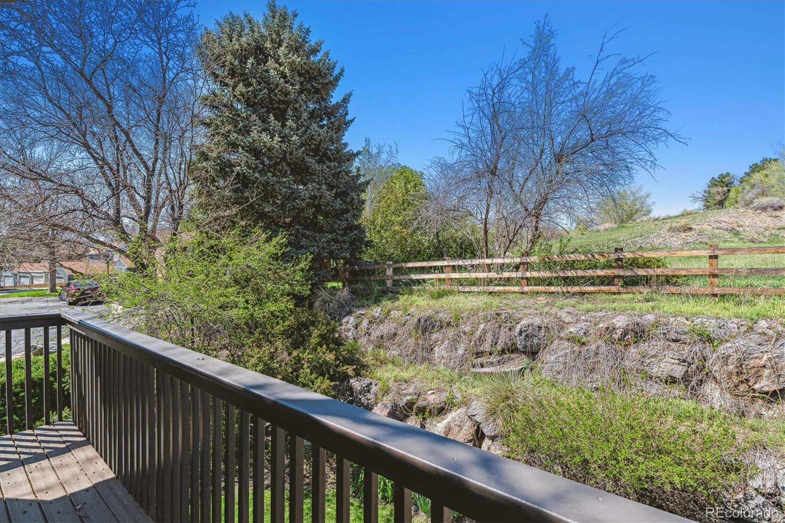 Welcome home to this beautiful end unit townhome-perfectly situated next to Peak View Park, part of Jefferson county open space. Relax in your private back yard on your deck and enjoy the peace and quiet! This updated and well-maintained home offers a bright and spacious floorplan and many wonderful amenities. The updated kitchen offers a large island with a gas cook top, double ovens, stainless appliances and gorgeous stone countertops. There is plenty of room in the eat-in kitchen area, or you can entertain in the formal dining area. The living room has vaulted ceilings and skylights, and you'll love curling up by the fireplace! There is a dedicated office with built-in shelving on this level, plus a warm and bright sunroom. Upstairs you'll find a spacious primary suite with access to the newly re-built deck overlooking the peaceful open space. The large 5-piece bath is very spacious and the oversized walk-in closet offers plenty of extra room and storage. The secondary full bath upstairs is nicely updated as well. On the lower level you'll see a nice laundry room and access to the garage and in the finished basement there is plenty of room for a secondary living space, a craft room or a work-out room! This home is located close to the Bear Creek Greenbelt and many other parks and hiking trails. You'll love the easy commute to either downtown Denver or quick getaways to the mountains! The siding and roof in the complex have been recently replaced and look fantastic! Other features and amenities include: beautiful plantation shutters, a whole-house fan and beautiful wood flooring on the main level. Great value in this home-come take a look!