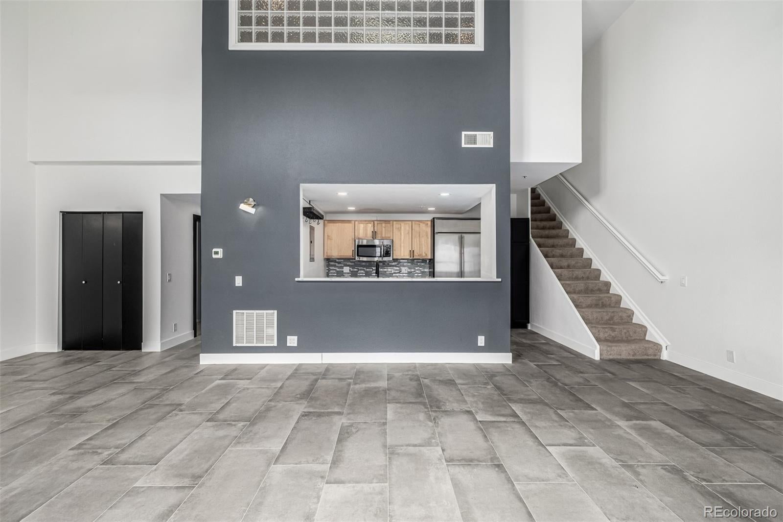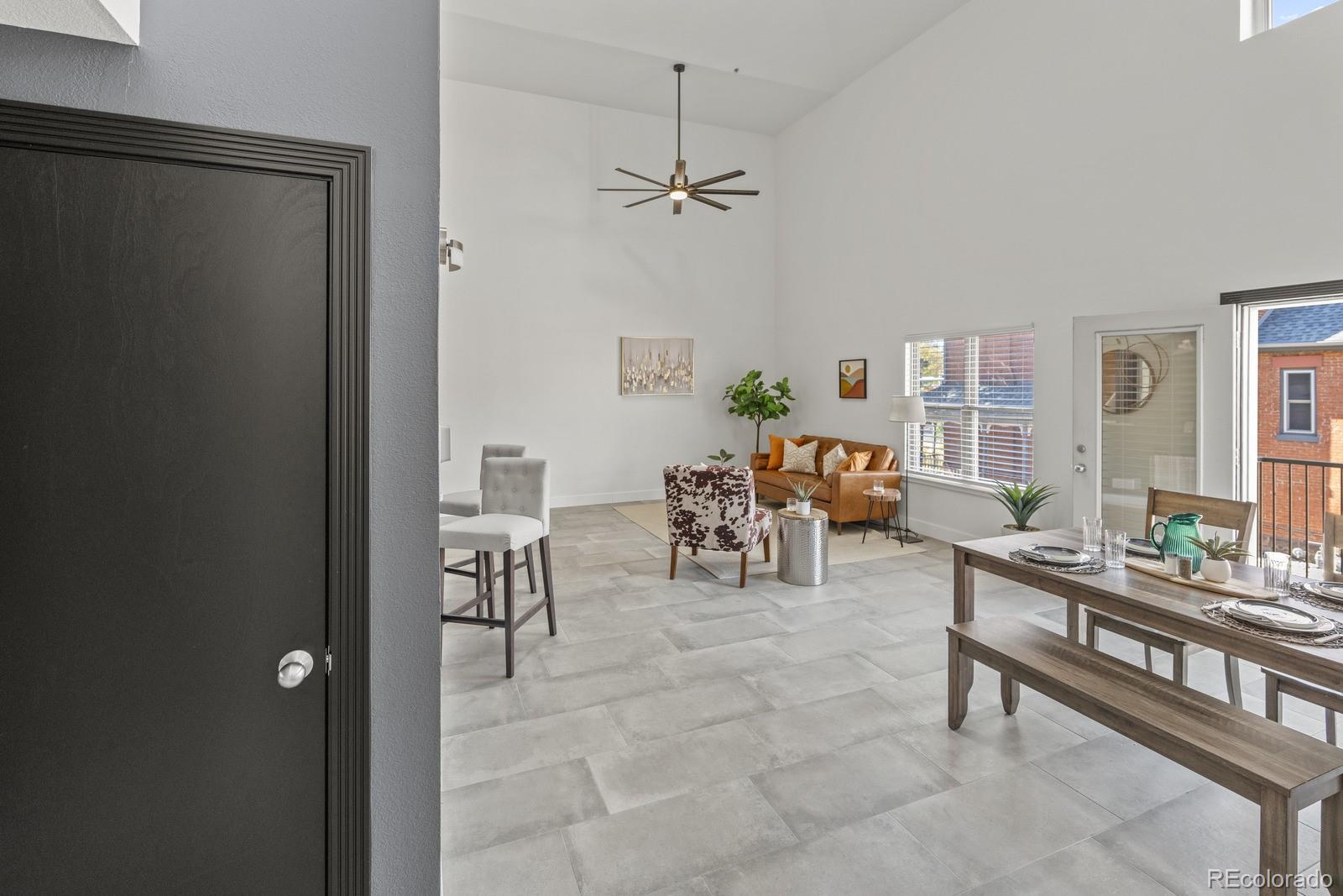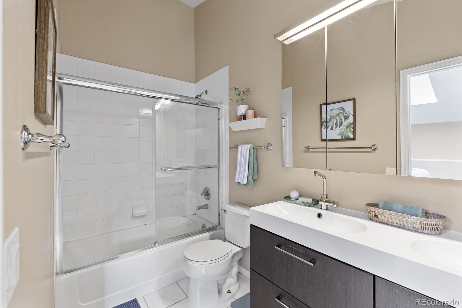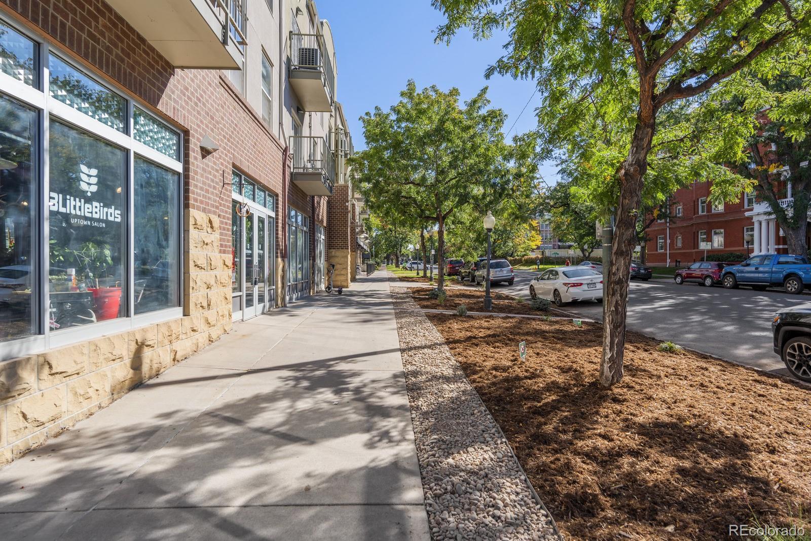This striking residence in Denver’s Uptown neighborhood combines stylish design with outstanding proximity to dining, recreation, and cultural attractions. Vaulted ceilings and generous skylights brighten the open living area, showcasing sleek tile flooring and a dramatic accent wall that brings sophisticated energy to the space. The updated kitchen delivers both function and flair, with quartz countertops, mosaic tile backsplash, two-tone cabinetry, stainless-steel appliances, a passthrough opening—perfectly designed for everyday ease and entertaining. Upstairs, the spacious primary suite offers comfort and privacy with soft carpeting, double doors, a walk-in closet, and an en-suite bath featuring dual vanities and a tub/shower combination. A second bedroom with its own adjoining bath adds flexibility for visitors, remote work, or personal projects. Enjoy the outdoor balcony with peaceful views or take advantage of community features like the fitness center and green spaces. With two assigned parking spaces and convenient access to downtown, as well as nearby parks, cafés, boutique retailers, and landmarks like City Park and the Fillmore Auditorium, this residence puts the best of Denver within easy reach.