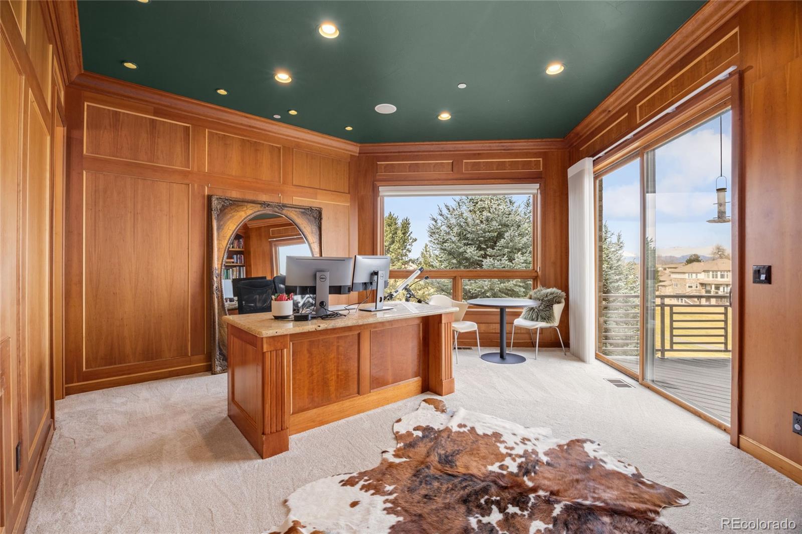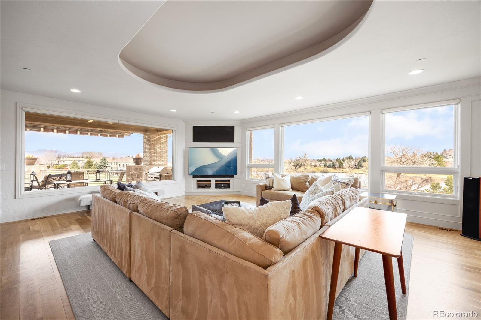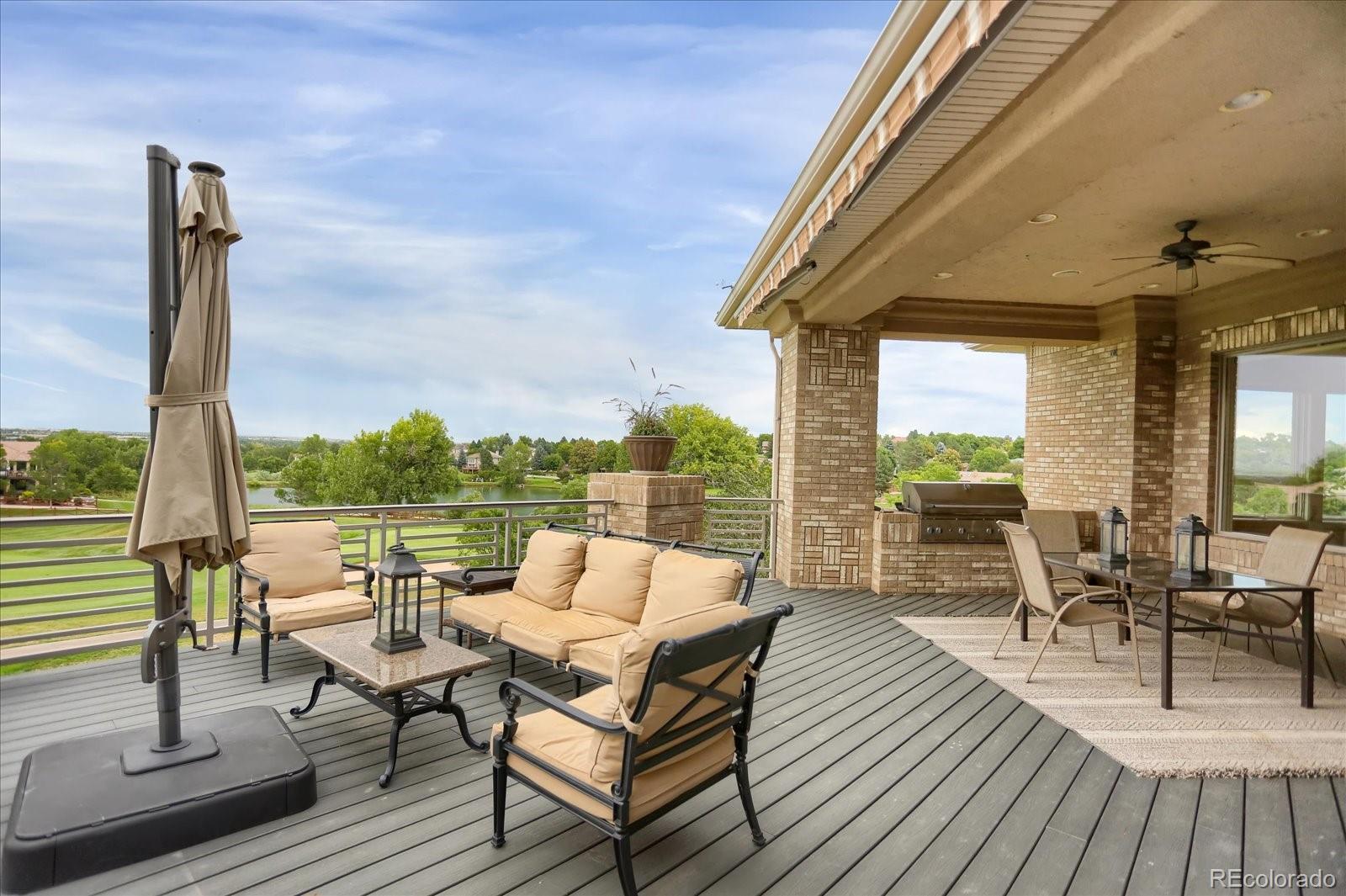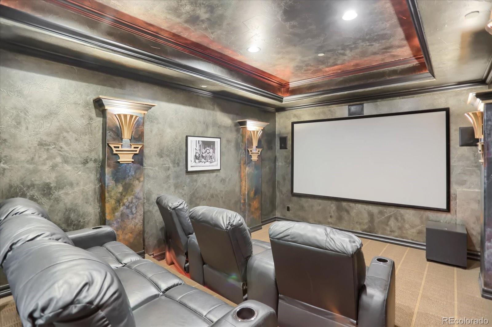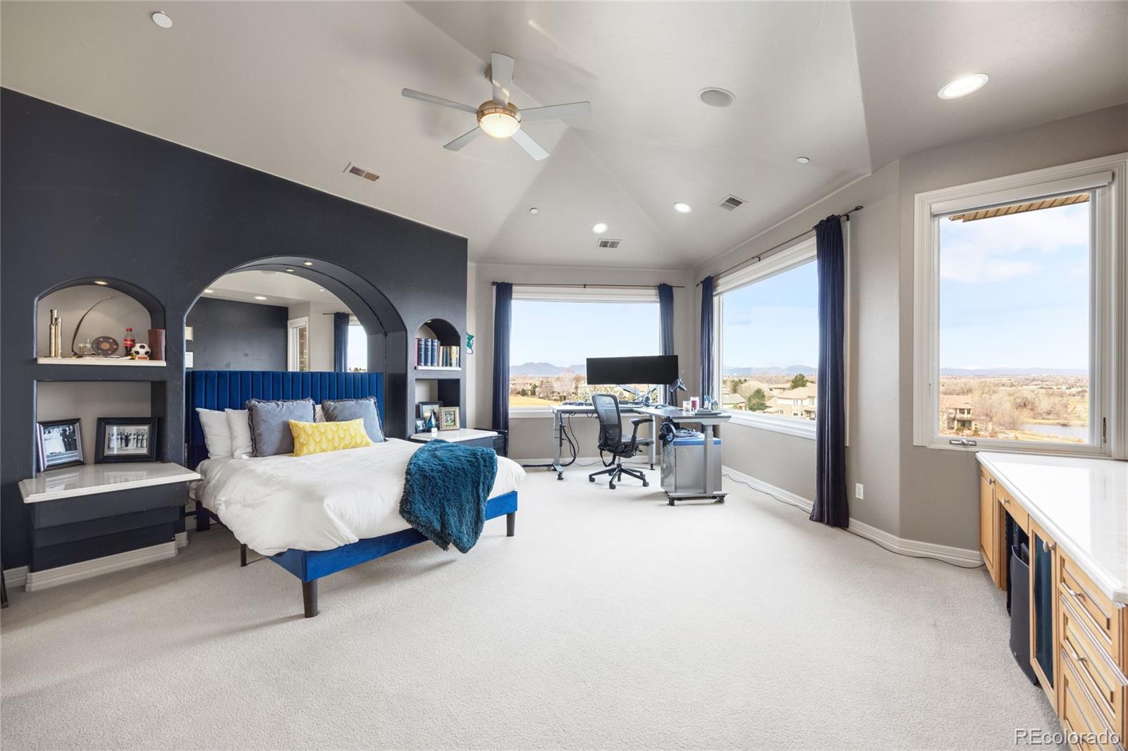 Magnificent luxury home on arguably the best lot in Westminster. This unique beauty in the coveted Ranch Reserve is located on the 15th hole of The Ranch Country Club golf course and offers breathtaking mountain and lake views. This location was cherry picked by the original owner/custom builder. The current owner/designer started with an already spectacular home, added too many features to list, and took it way over the top. You must see this property to believe it. Virtually all three levels offer panoramic views. Owned solar (no lease!) and a whole-house attic fan have significantly reduced the energy bills. The soaring foyer features heated travertine flooring (also in the kitchen and master bath). New 5" white oak flooring graces the living room, dining room and great room. New carpet on the stairs and upper 2 levels. New chandeliers throughout, and the custom dining room ceiling lighting mimics the night sky. The updated kitchen is perfect for entertaining, with two large islands, a breakfast nook, new lighting and additional custom cabinetry, SubZero refrigerator and freezer, two dishwashers, new double ovens, butler’s pantry, and walk-in pantry with new refrigerator. This home features 6 bedrooms, 8 bathrooms, a finished walk-out basement with second family room, home theatre, home gym with hot tub, huge wine room, 2 laundry rooms, and a custom walk-in primary closet. A lot of technology updates have been made to support streaming, work from home and smart home capabilities. Outside spaces include a large partially covered deck with built-in grill and gas line, 3 balconies, a covered porch, and a patio. There is new turf and a putting green, as well as new exterior lighting controlled by app and outdoor speakers. Convenient to I-25 and the Boulder corridor.