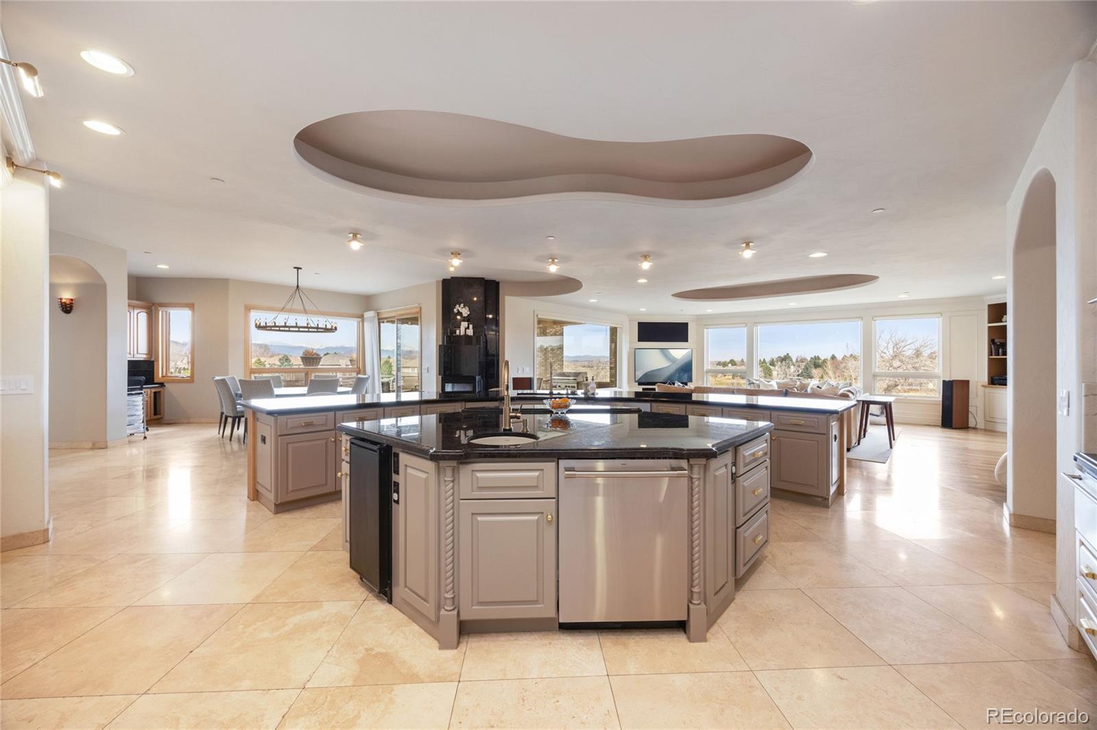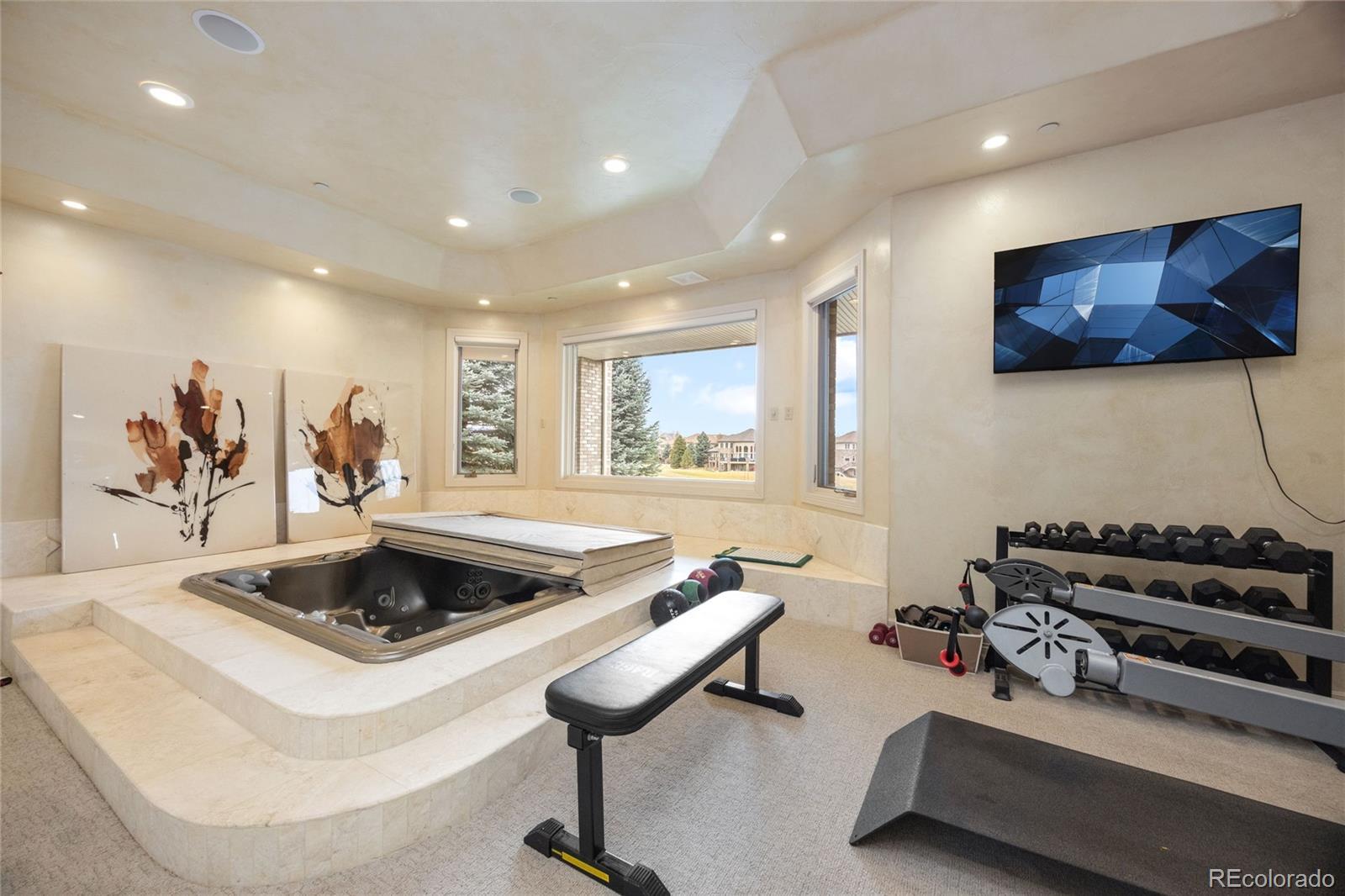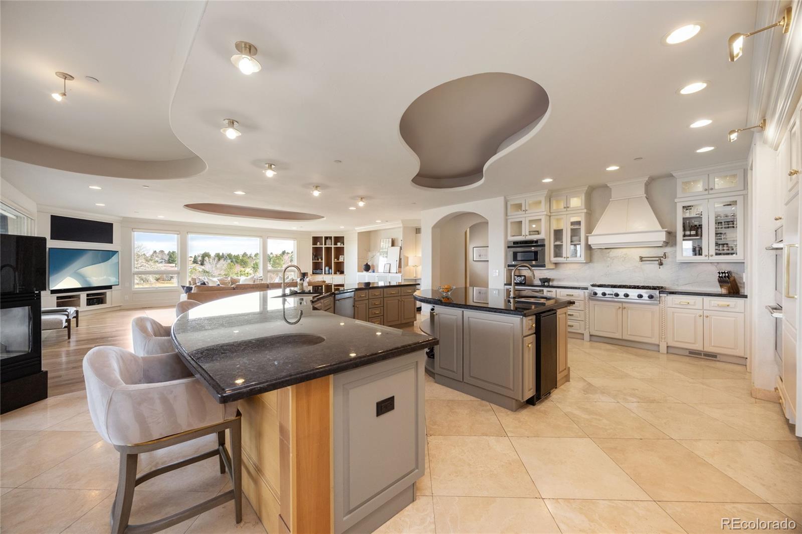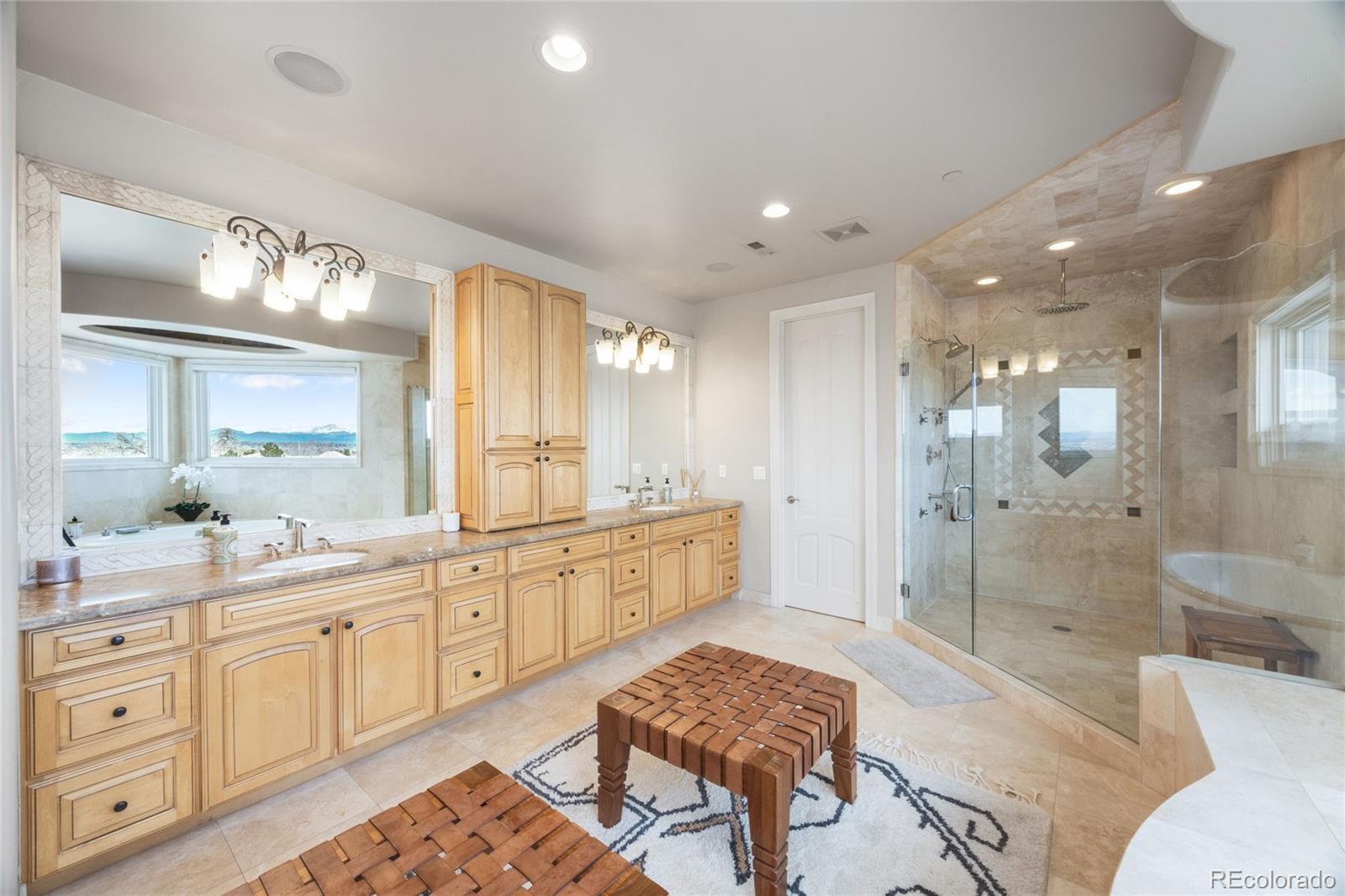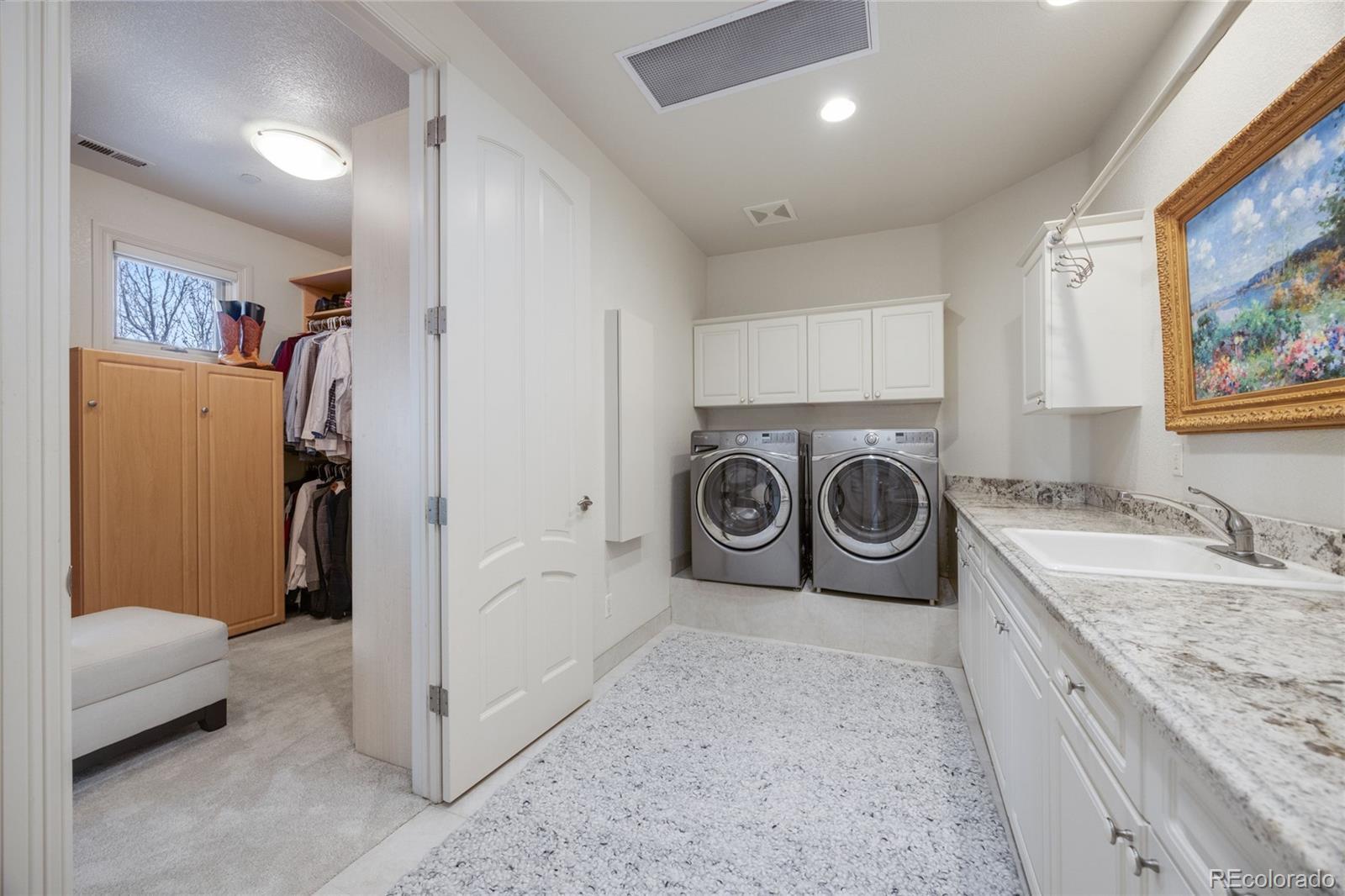 Magnificent luxury home on arguably the best lot in Westminster. This unique beauty in the coveted Ranch Reserve is located on the 15th hole of The Ranch Country Club golf course and offers breathtaking mountain and lake views. This location was cherry picked by the original owner/custom builder. The current owner/designer started with an already spectacular home, added too many features to list, and took it way over the top. You must see this property to believe it. Virtually all three levels offer panoramic views. Owned solar (no lease!) and a whole-house attic fan have significantly reduced the energy bills. The soaring foyer features heated travertine flooring (also in the kitchen and master bath). New 5" white oak flooring graces the living room, dining room and great room. New carpet on the stairs and upper 2 levels. New chandeliers throughout, and the custom dining room ceiling lighting mimics the night sky. The updated kitchen is perfect for entertaining, with two large islands, a breakfast nook, new lighting and additional custom cabinetry, SubZero refrigerator and freezer, two dishwashers, new double ovens, butler’s pantry, and walk-in pantry with new refrigerator. This home features 6 bedrooms, 8 bathrooms, a finished walk-out basement with second family room, home theatre, home gym with hot tub, huge wine room, 2 laundry rooms, and a custom walk-in primary closet. A lot of technology updates have been made to support streaming, work from home and smart home capabilities. Outside spaces include a large partially covered deck with built-in grill and gas line, 3 balconies, a covered porch, and a patio. There is new turf and a putting green, as well as new exterior lighting controlled by app and outdoor speakers. Convenient to I-25 and the Boulder corridor.