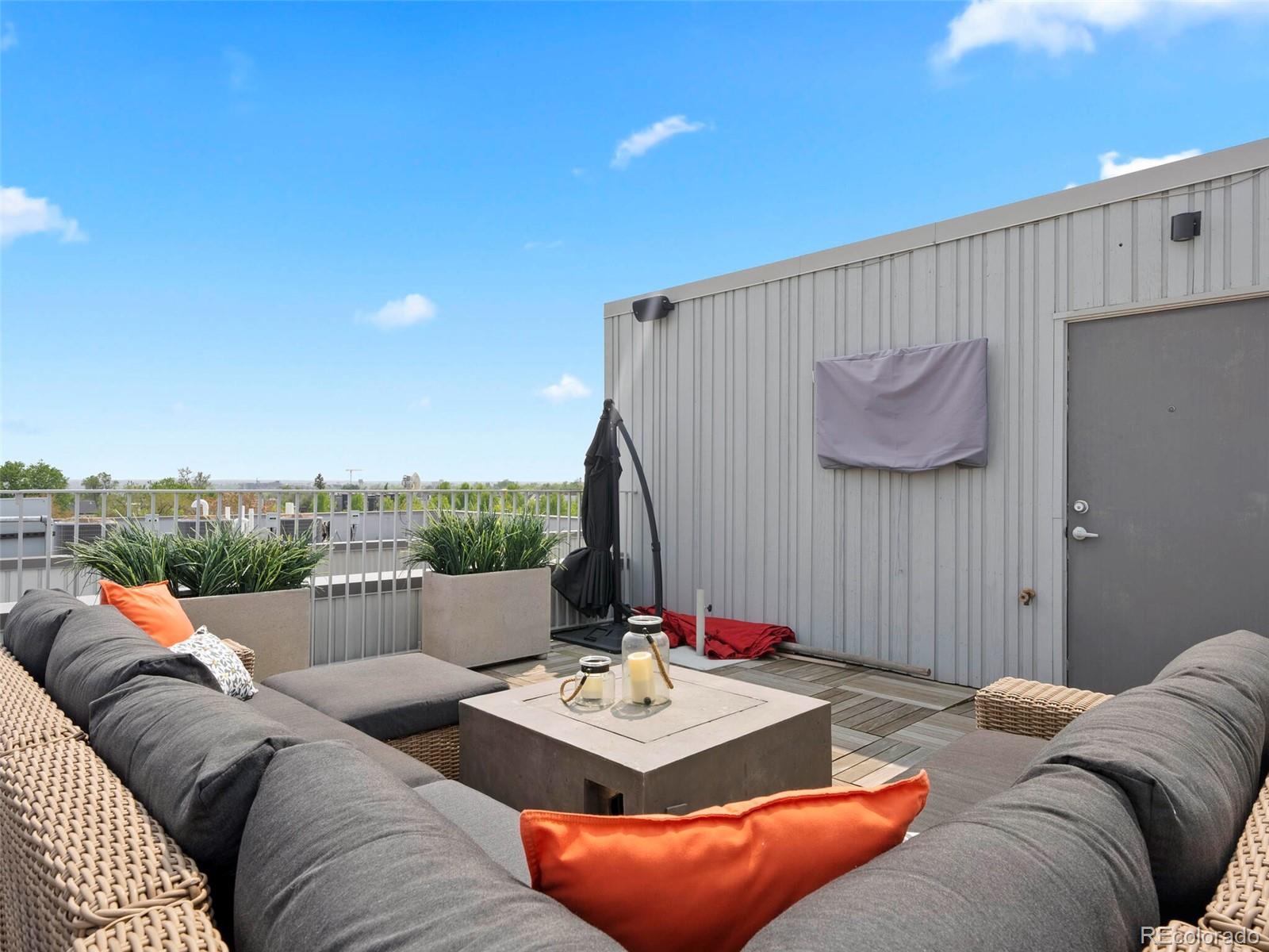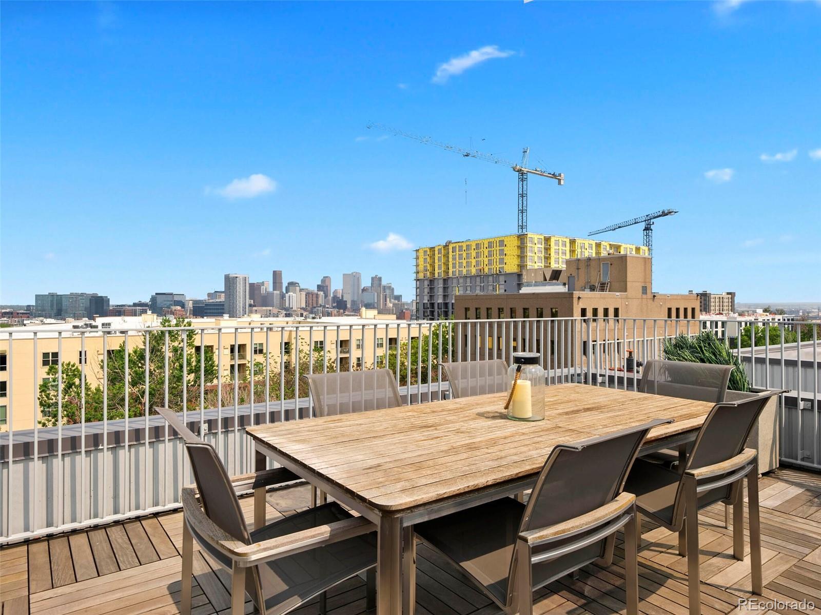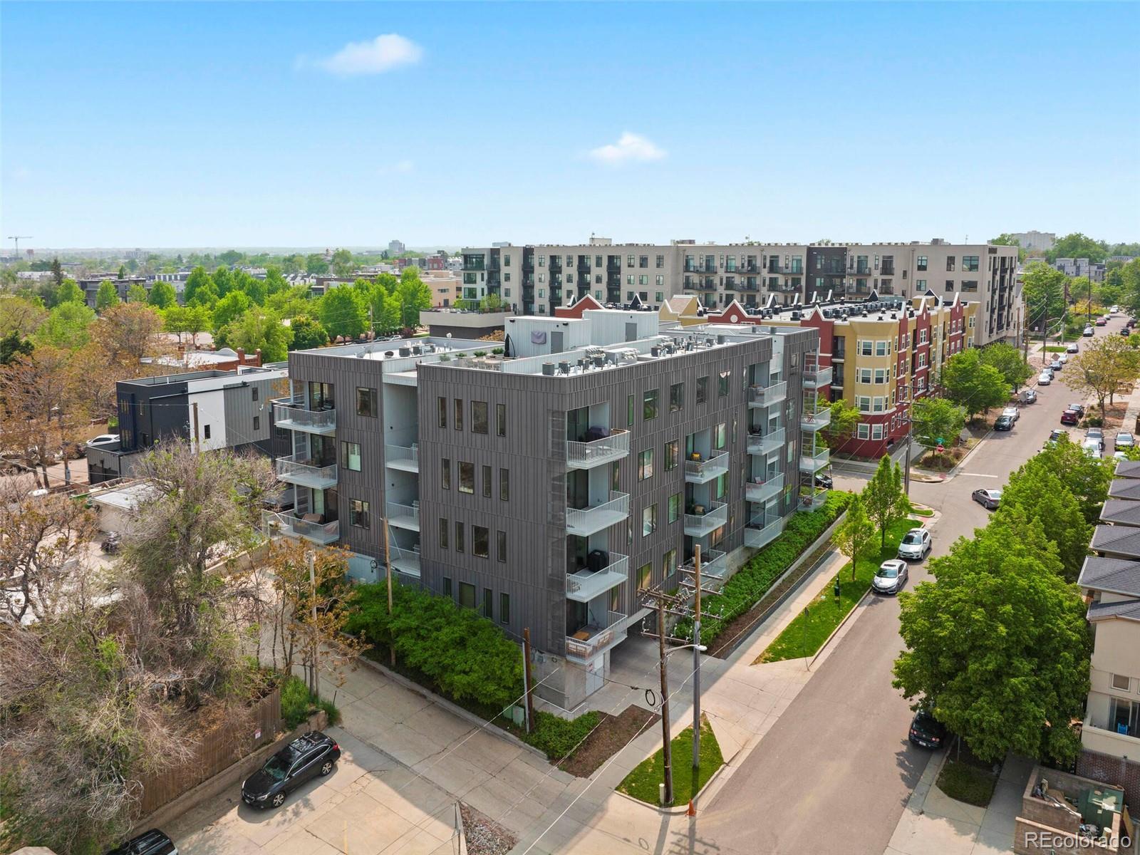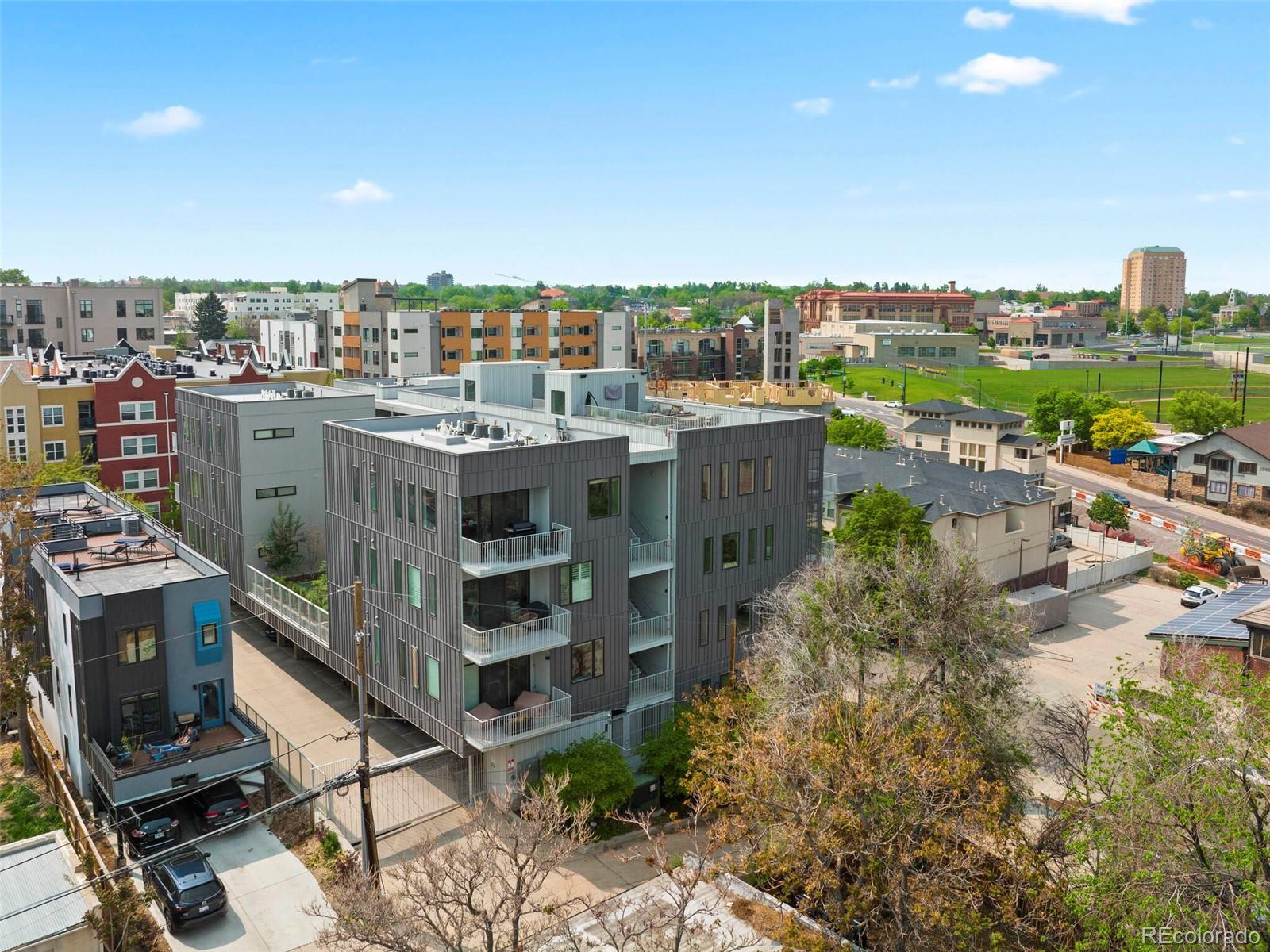 Welcome to this rare and stunning three-bedroom penthouse, perfectly situated in the vibrant Jefferson Park neighborhood—just minutes from downtown Denver. This modern masterpiece impresses with its sleek architectural design, bold exterior, and clean, contemporary interior finishes. Step inside to an open concept living space filled with natural light and framed by breathtaking city views. The gourmet kitchen flows seamlessly into the living and dining areas, creating an ideal space for entertaining or relaxing in style. A private balcony off the living room offers the perfect spot for morning coffee or evening relaxation. The spacious primary suite is a serene retreat, featuring a luxurious five-piece bath with frameless glass shower, soaking tub, and a fully built-out walk-in closet. Two additional bedrooms offer flexible space for a home office, guest room, or creative studio. A generous walk-in laundry room with storage adds to the functionality of the home. One of the true highlights of this penthouse is the expansive rooftop deck—undoubtedly one of the best in the city—offering panoramic, unobstructed views of the downtown Denver skyline. Additional perks include two reserved garage parking spaces and a separate deeded storage unit. Enjoy unparalleled access to Denver’s best dining, shopping, entertainment, and outdoor spaces. With its central location, you're just a short walk or bike ride to LoHi, Sloan’s Lake, downtown, and the city’s top museums and cultural venues.