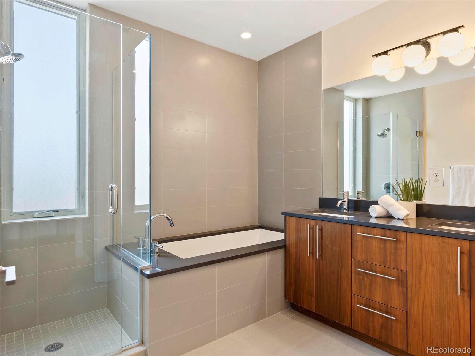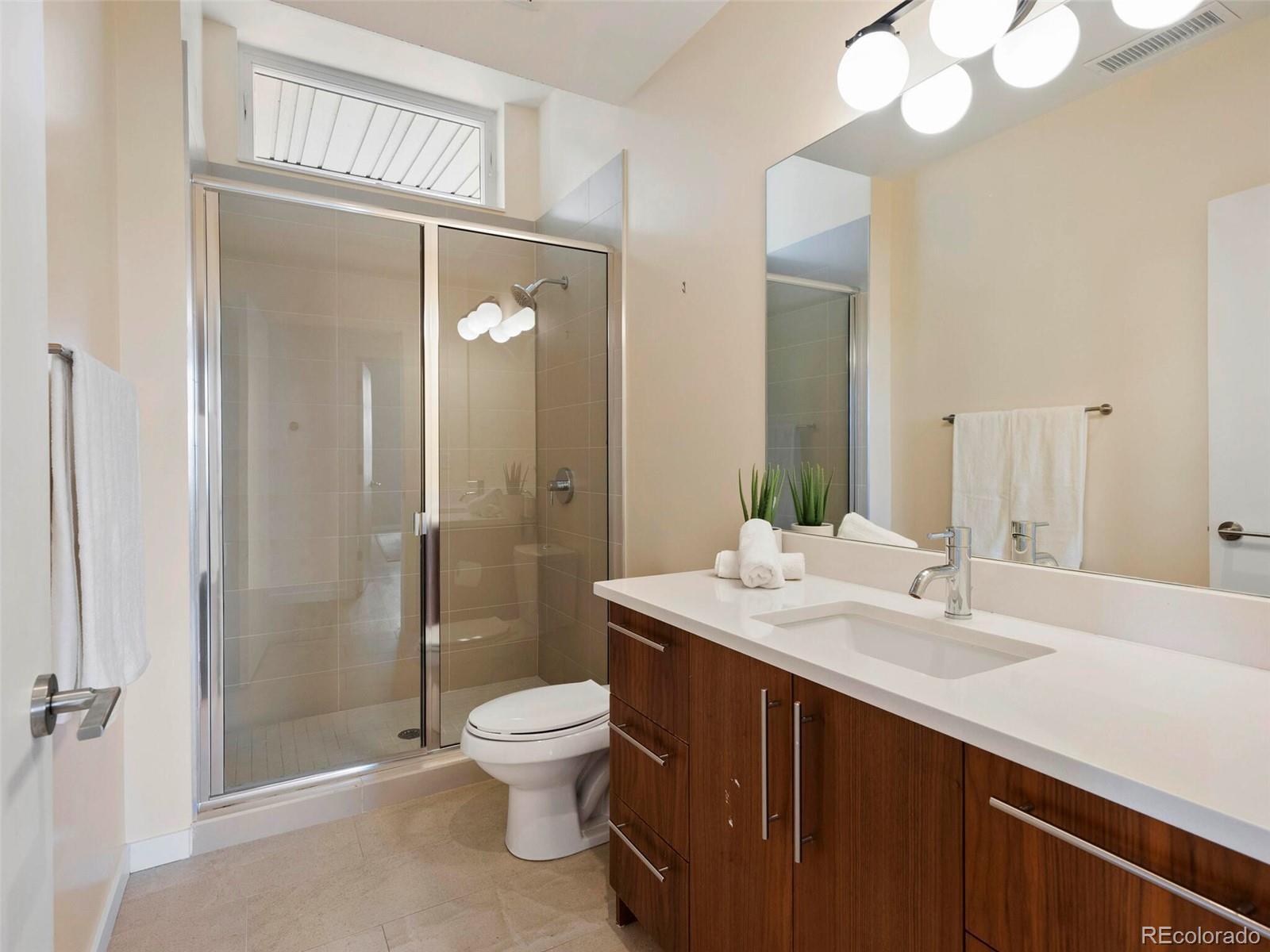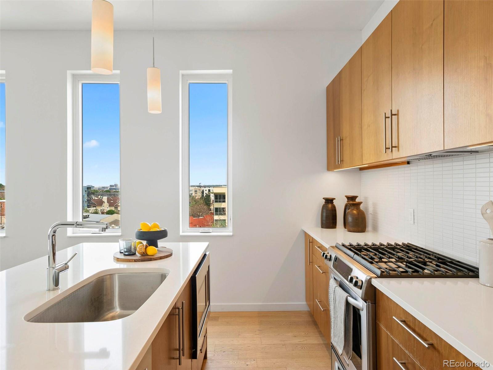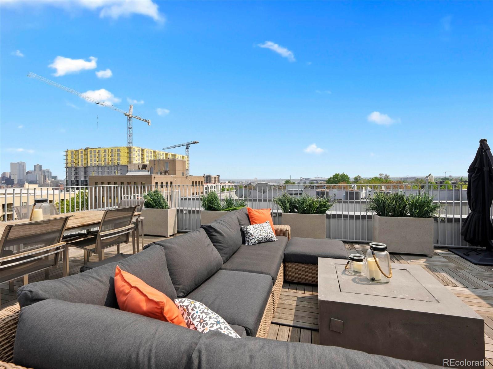 Welcome to this rare and stunning three-bedroom penthouse, perfectly situated in the vibrant Jefferson Park neighborhood—just minutes from downtown Denver. This modern masterpiece impresses with its sleek architectural design, bold exterior, and clean, contemporary interior finishes. Step inside to an open concept living space filled with natural light and framed by breathtaking city views. The gourmet kitchen flows seamlessly into the living and dining areas, creating an ideal space for entertaining or relaxing in style. A private balcony off the living room offers the perfect spot for morning coffee or evening relaxation. The spacious primary suite is a serene retreat, featuring a luxurious five-piece bath with frameless glass shower, soaking tub, and a fully built-out walk-in closet. Two additional bedrooms offer flexible space for a home office, guest room, or creative studio. A generous walk-in laundry room with storage adds to the functionality of the home. One of the true highlights of this penthouse is the expansive rooftop deck—undoubtedly one of the best in the city—offering panoramic, unobstructed views of the downtown Denver skyline. Additional perks include two reserved garage parking spaces and a separate deeded storage unit. Enjoy unparalleled access to Denver’s best dining, shopping, entertainment, and outdoor spaces. With its central location, you're just a short walk or bike ride to LoHi, Sloan’s Lake, downtown, and the city’s top museums and cultural venues.