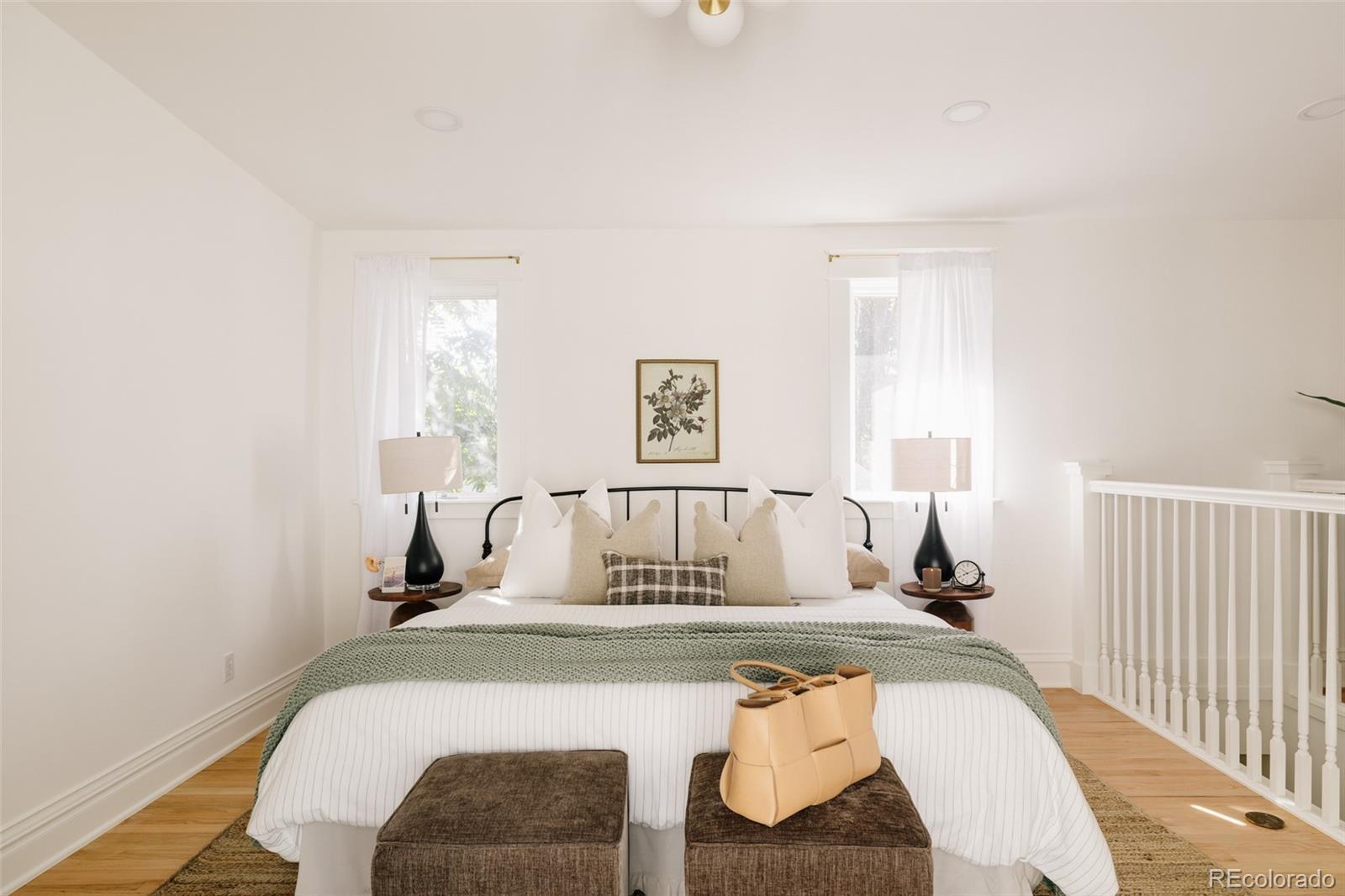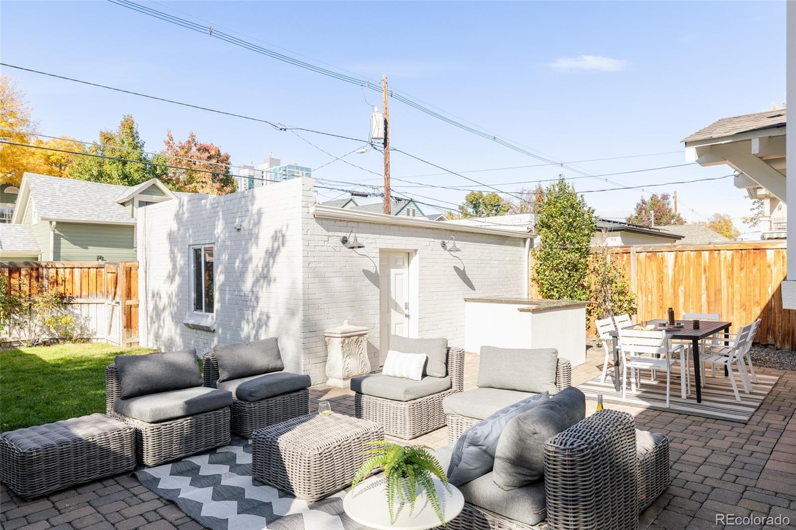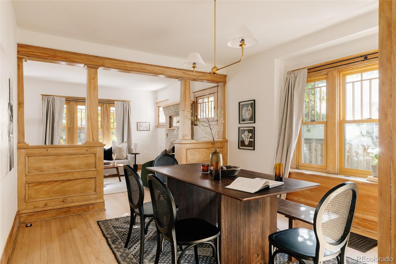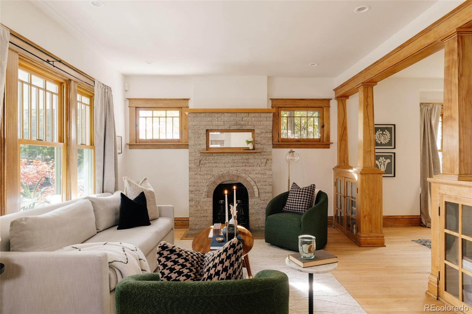 Timeless character meets modern sophistication in this beautifully updated raised bungalow in East Wash Park. Thoughtfully reimagined, this home perfectly balances original 1920s charm with contemporary comfort and design. From the moment you enter, you’re greeted by the warmth of the original fireplace with a handcrafted wood mantel, built-in cabinetry, and refinished hardwood floors. The formal dining room retains its character with stunning original built-ins, offering an inviting space for gatherings. The renovated kitchen is a chef’s dream, featuring new quartz countertops, a custom tile backsplash, and stainless steel appliances. Just beyond, a cozy family room offers the ideal spot for morning coffee, casual lounging, or a comfortable play space. The main level includes two inviting bedrooms—one with an adjoining flex space perfect for a home office or art studio—along with an updated full bathroom. Upstairs, the private primary retreat encompasses the entire second level. This serene space includes a sitting area, second laundry, and a spacious walk-in closet. The newly remodeled five-piece primary bath feels like a spa, with a curbless shower, heated tile floors, and a luxurious soaking tub. Step onto the private balcony and enjoy peaceful moments surrounded by tree-lined views. The full basement offers a generous living area ideal for movie nights or game-day gatherings, plus a stylish guest bedroom and full bath for visitors to enjoy in comfort and privacy. Outside, the backyard is designed for effortless entertaining with an outdoor gas fireplace, and room to relax or dine al fresco. A two-car garage provides excellent storage for vehicles and gear. Located just blocks from Denver’s beloved Washington Park, this home offers easy access to Cherry Creek, I-25, and the city’s best dining and shopping. A rare blend of historic charm, modern updates, and unbeatable location—this East Wash Park residence is Denver living at its finest. Welcome home.