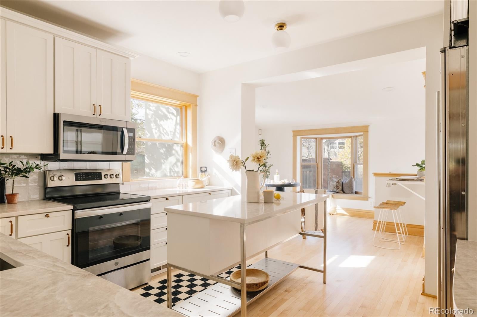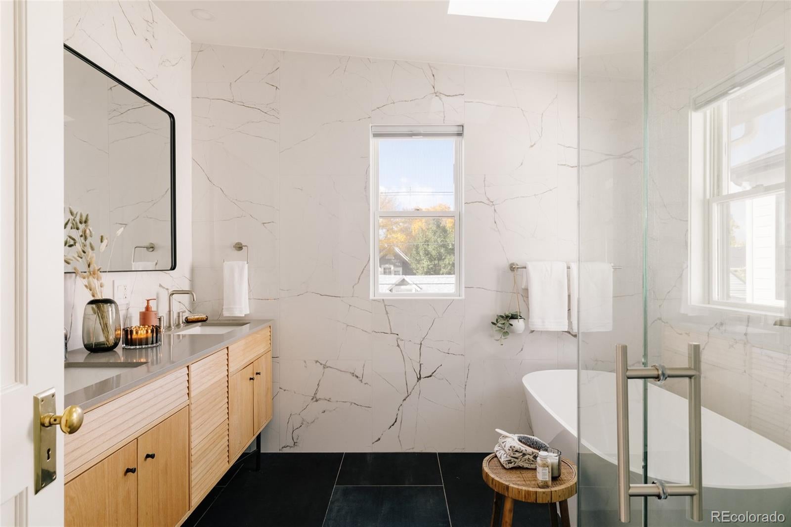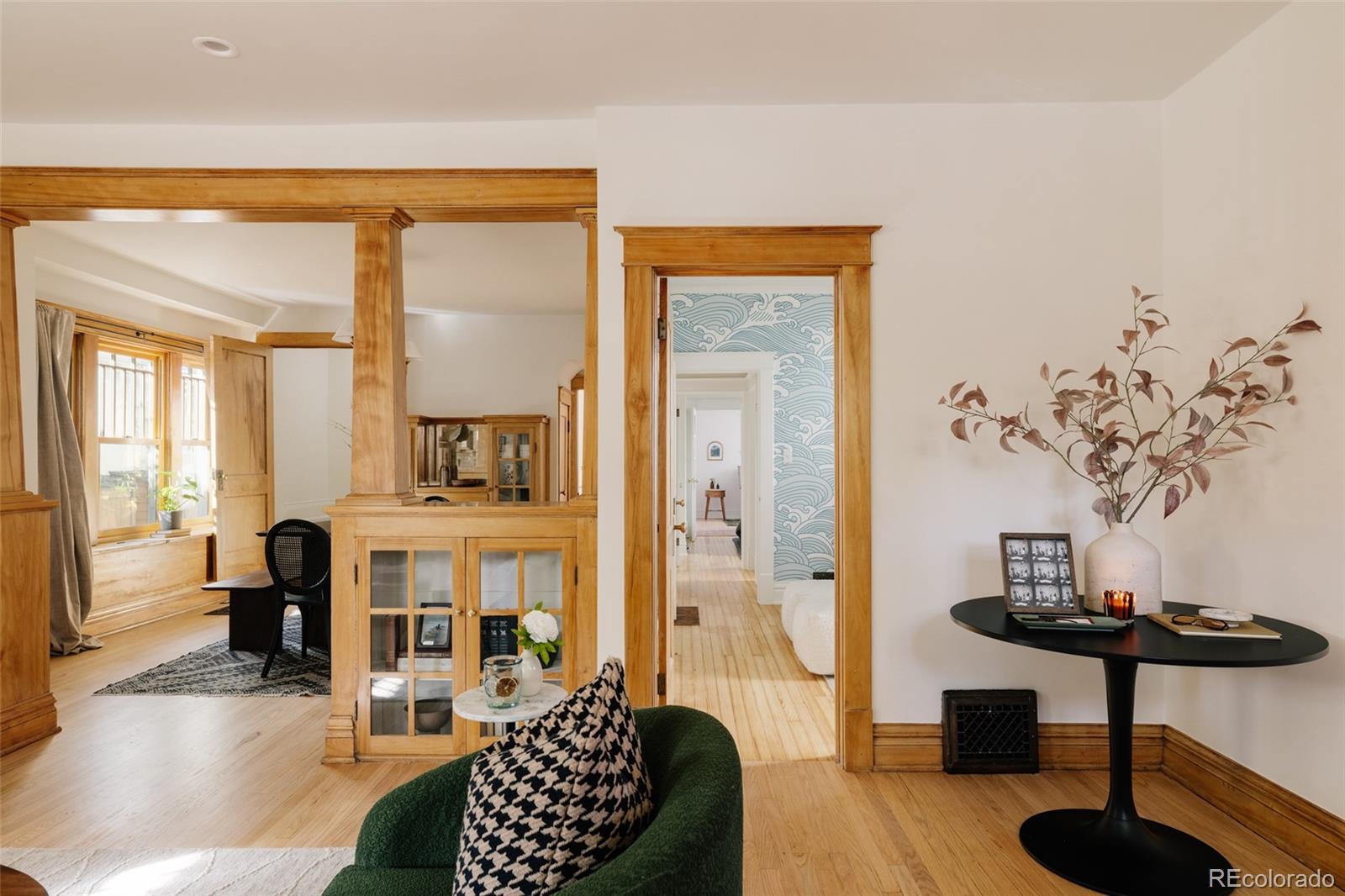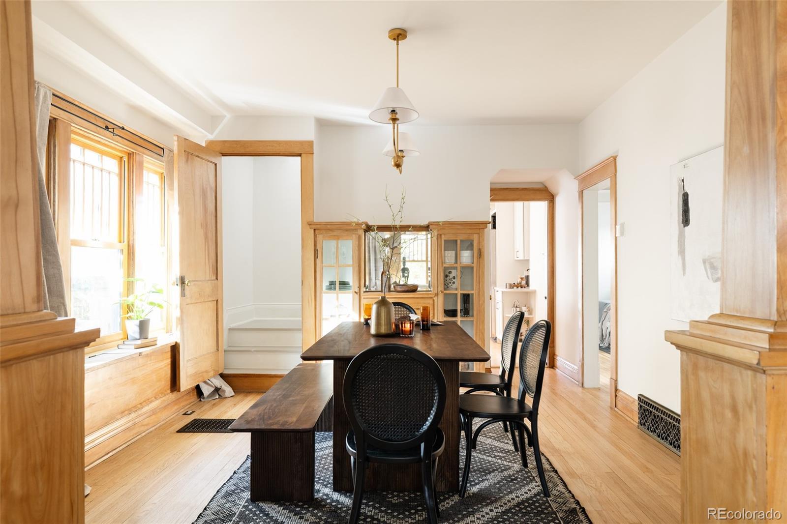 Timeless character meets modern sophistication in this beautifully updated raised bungalow in East Wash Park. Thoughtfully reimagined, this home perfectly balances original 1920s charm with contemporary comfort and design. From the moment you enter, you’re greeted by the warmth of the original fireplace with a handcrafted wood mantel, built-in cabinetry, and refinished hardwood floors. The formal dining room retains its character with stunning original built-ins, offering an inviting space for gatherings. The renovated kitchen is a chef’s dream, featuring new quartz countertops, a custom tile backsplash, and stainless steel appliances. Just beyond, a cozy family room offers the ideal spot for morning coffee, casual lounging, or a comfortable play space. The main level includes two inviting bedrooms—one with an adjoining flex space perfect for a home office or art studio—along with an updated full bathroom. Upstairs, the private primary retreat encompasses the entire second level. This serene space includes a sitting area, second laundry, and a spacious walk-in closet. The newly remodeled five-piece primary bath feels like a spa, with a curbless shower, heated tile floors, and a luxurious soaking tub. Step onto the private balcony and enjoy peaceful moments surrounded by tree-lined views. The full basement offers a generous living area ideal for movie nights or game-day gatherings, plus a stylish guest bedroom and full bath for visitors to enjoy in comfort and privacy. Outside, the backyard is designed for effortless entertaining with an outdoor gas fireplace, and room to relax or dine al fresco. A two-car garage provides excellent storage for vehicles and gear. Located just blocks from Denver’s beloved Washington Park, this home offers easy access to Cherry Creek, I-25, and the city’s best dining and shopping. A rare blend of historic charm, modern updates, and unbeatable location—this East Wash Park residence is Denver living at its finest. Welcome home.