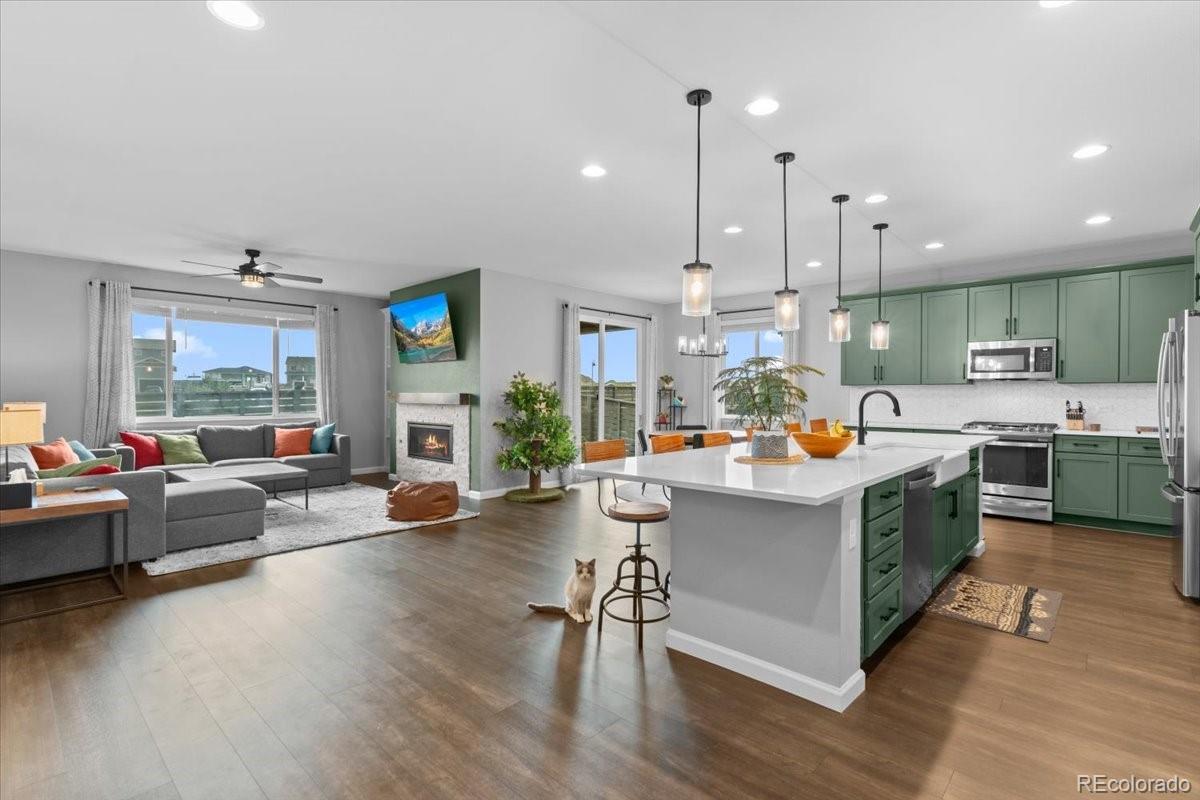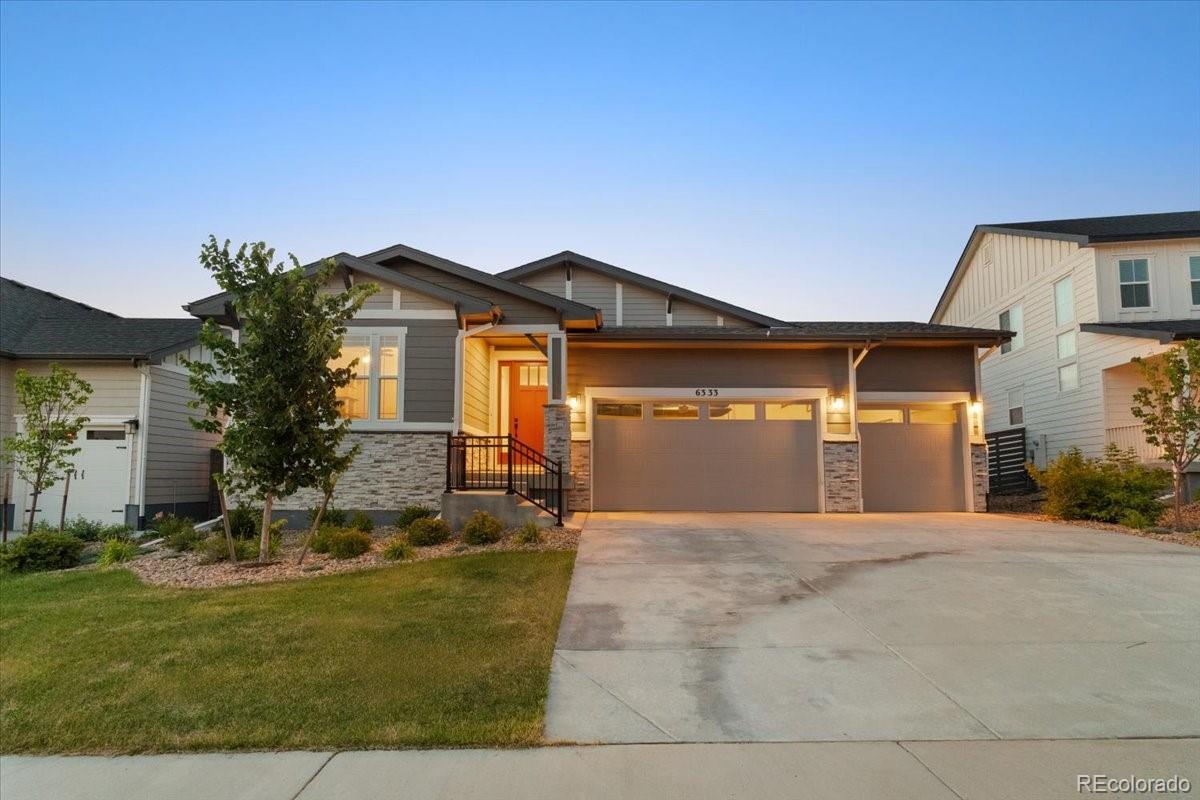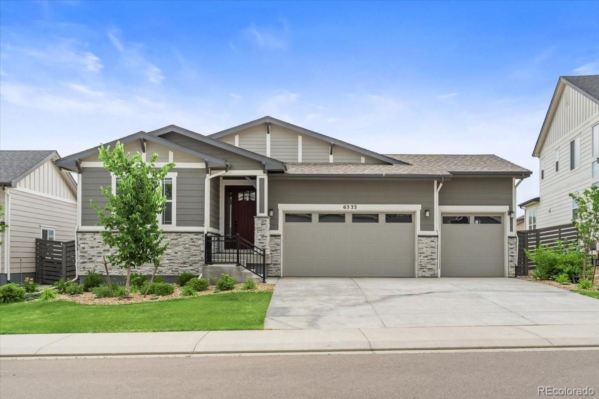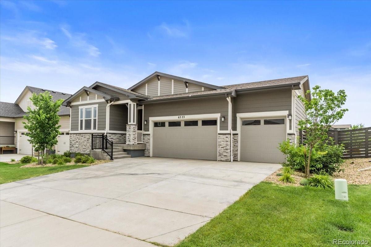 **ASSUMABLE FINANCING AVAILABLE** Seller confirmed the 5.375% interest rate is assumable by a new buyer. Reach out with any questions! 6333 Icegrass is a better-than-new, 3-bed, 3-bath ranch-style home in the heart of Loveland's coveted Kinston neighborhood. This stunning residence with 3-car garage, blends modern elegance with the warmth of a thriving community. Kinston, recently celebrated in Loveland news for its NOCO vibe & exciting new parks & community events, offers an unparalleled lifestyle with easy access to downtown Loveland's charm & Northern Colorado's outdoor adventures. Step through the front door into an open, contemporary interior, painted with Sherwin-Williams' Naturally Refined Color Collection of the Year. This soft gray-blue hue creates a serene, inviting atmosphere, accentuated by the home's abundant natural light. The main floor's open-concept layout is defined by striking black metal post-and-wire railings, adding industrial sophistication. At the heart of the home lies a gourmet kitchen with a 10-seat quartz island, the subway tile backsplash, & a premium gas range are perfect for culinary enthusiasts & entertainers alike. The kitchen flows into the spacious dining & living areas, fostering connection & comfort. The primary suite is a sanctuary, featuring spa-like full bath with tile surround tub, separate shower, & walk-in closet. An additional bedroom, a dedicated office, & a convenient laundry room complete the main level. The finished basement elevates this home even further, offering a built-in surround sound system, versatile rec room, full bath, & third bedroom with ample storage-ideal for guests, hobbies & relaxation. Outside, the home's stone-accented exterior & professionally landscaped yard exude curb appeal, harmonizing with Kinston's commitment to beauty. With its impeccable design & prime location in a neighborhood buzzing with growth, 6333 Icegrass Ave. is more than a home-it's a lifestyle. Schedule your private tour today!