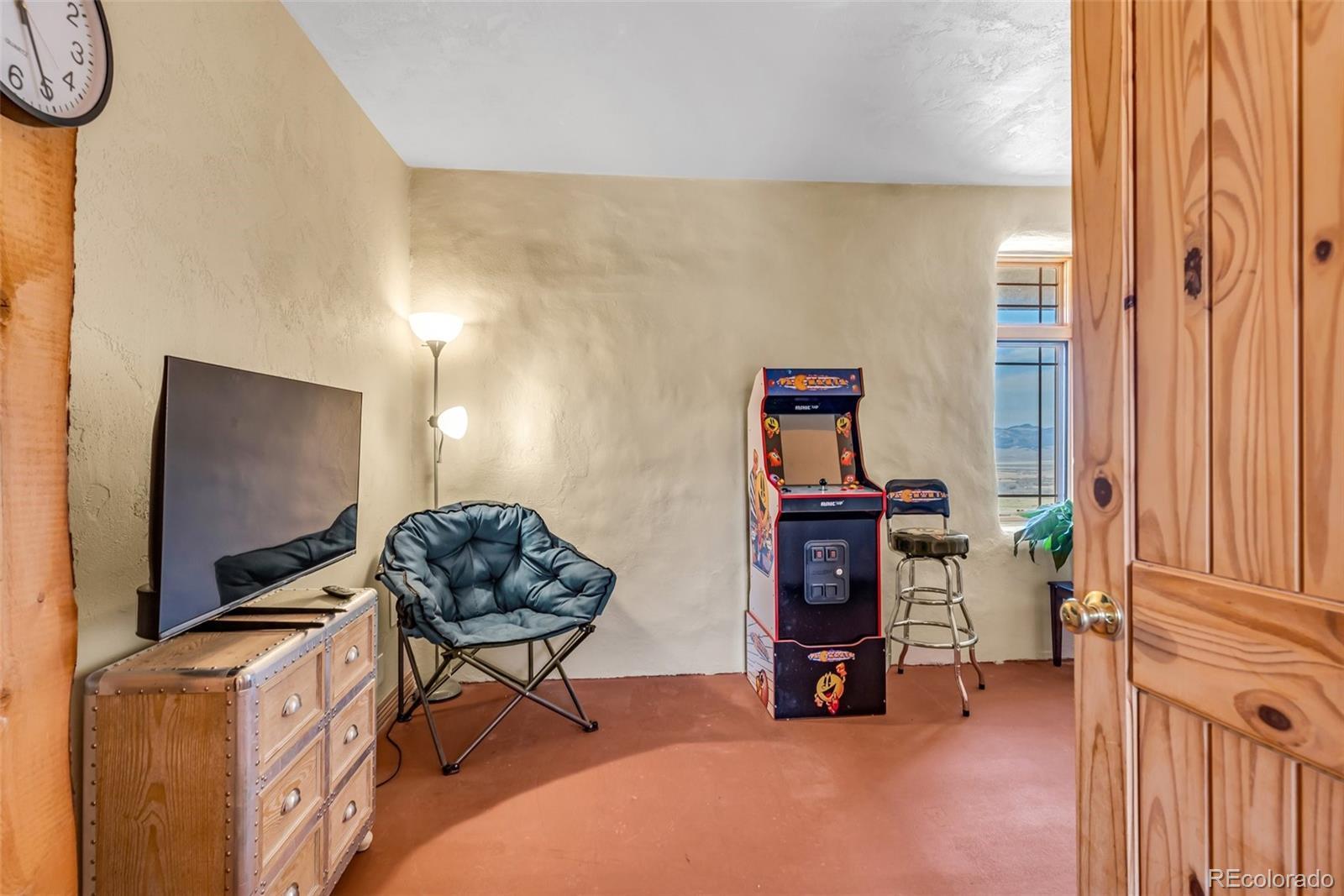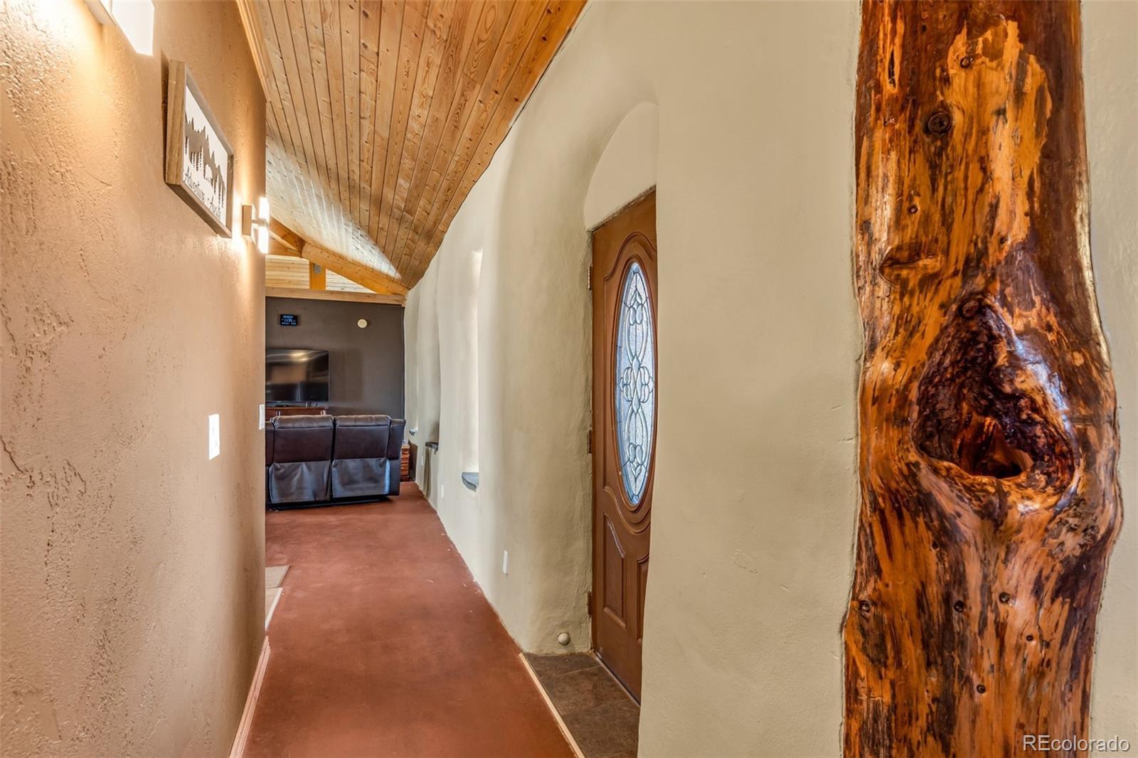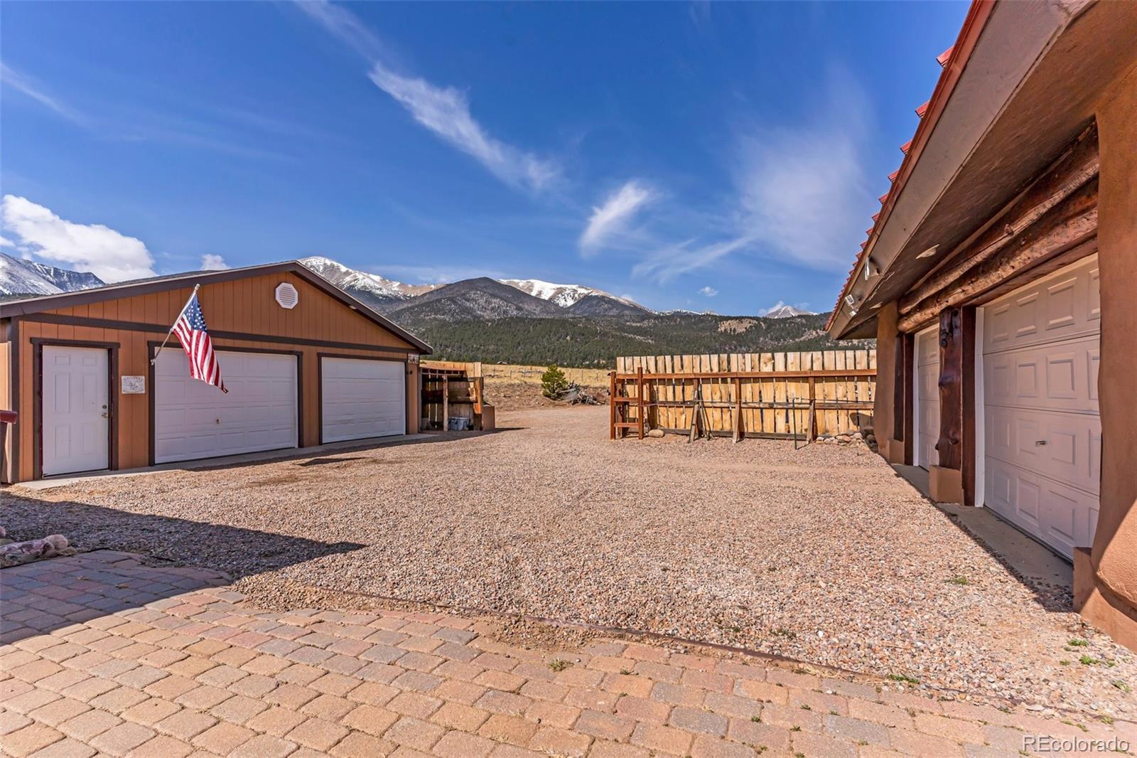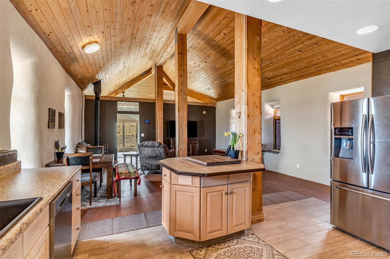 A great location was chosen for this energy-efficient, southwest-style hybrid home. With post & beam construction, hay bale insulation (w/ an R53 insulation factor), & SIP (structural insulated panels (R-17) roofing, earthen plaster interior walls, stucco exterior, concrete floors, in-floor radiant heat, & wood-burning stove, you can plan on reduced utility bills. The center courtyard has brick pavers & latilla fence & provides an excellent spot to soak up the sun & host your BBQs. The one level home has 3 bedrooms, 2 baths, large utility room, bonus/tv/office, great room & kitchen & an attached, heated 2-car garage, plus another detached oversized 2-car garage w/ workshop area. The spacious kitchen w/ cork flooring, has an island w/ seating for 4 & is open to the dining space & great room. This area has tongue& groove vaulted ceilings, 2' Colorado blue stone window sills, large beams, & a wood-burning stove. The master suite, just off the great room has a library/sitting room with double French doors to the outside, & is a nice spot to take time out to appreciate the phenomenal views. The mountains here are up close & personal w/ great hiking & horseback riding nearby. Skidsteer(negotiable)
