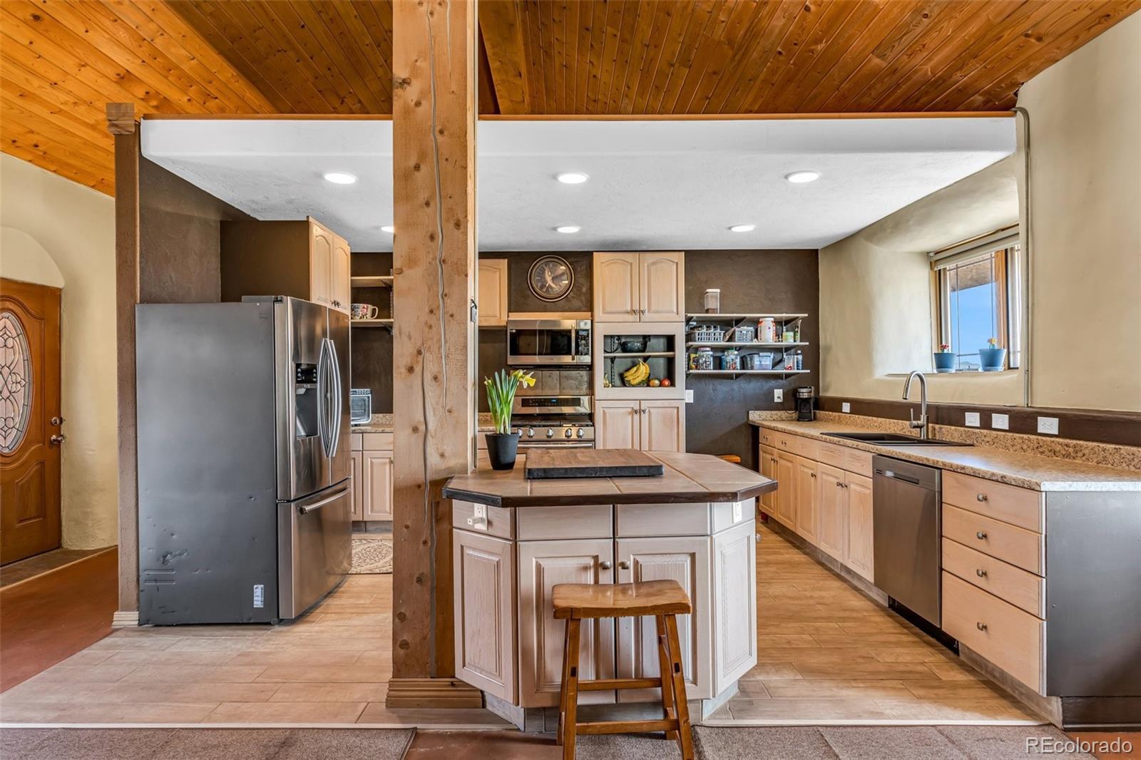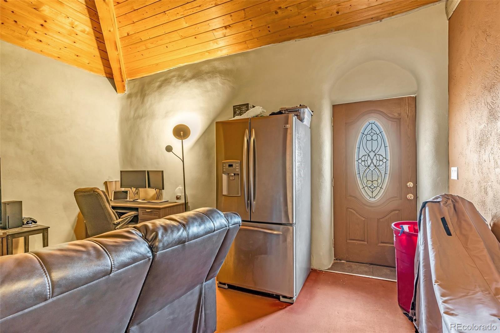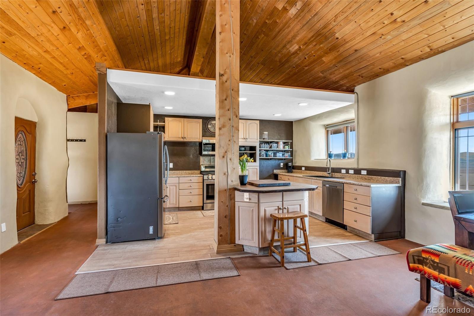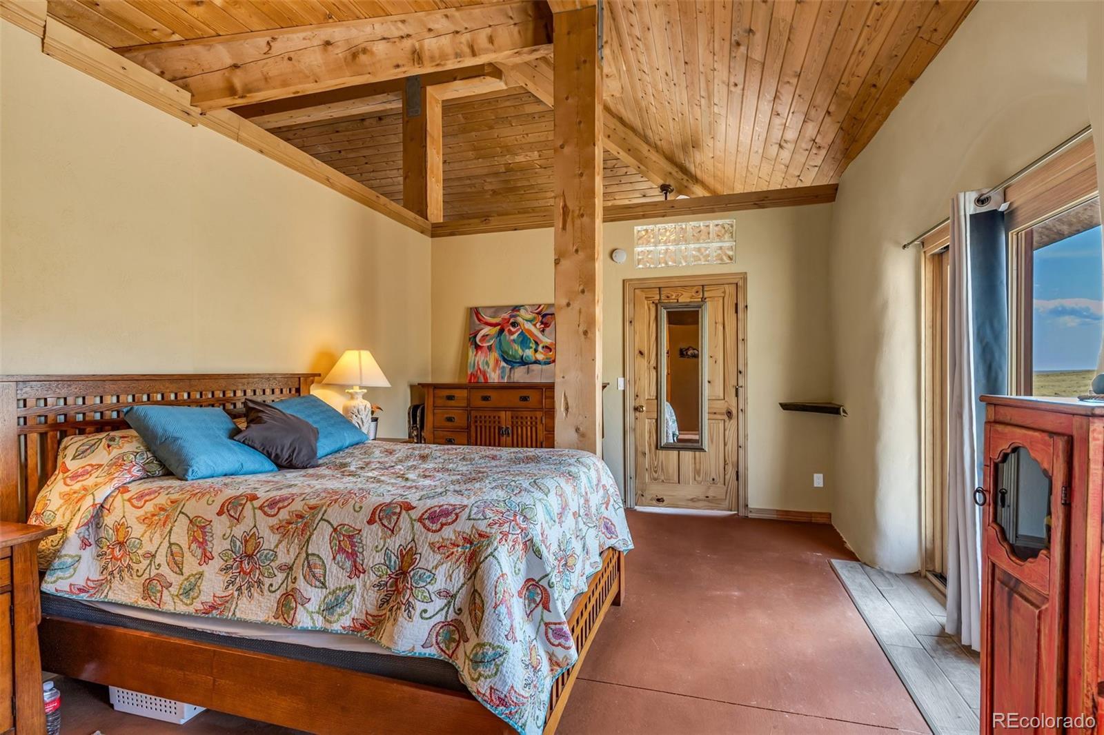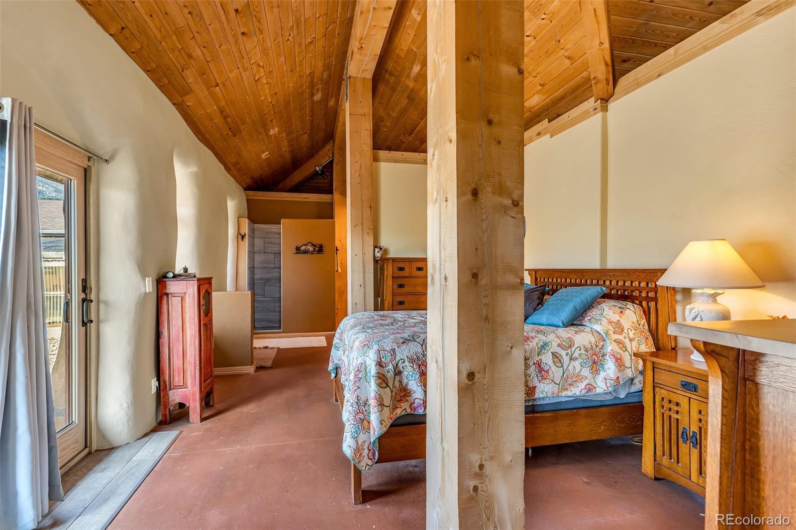 A great location was chosen for this energy-efficient, southwest-style hybrid home. With post & beam construction, hay bale insulation (w/ an R53 insulation factor), & SIP (structural insulated panels (R-17) roofing, earthen plaster interior walls, stucco exterior, concrete floors, in-floor radiant heat, & wood-burning stove, you can plan on reduced utility bills. The center courtyard has brick pavers & latilla fence & provides an excellent spot to soak up the sun & host your BBQs. The one level home has 3 bedrooms, 2 baths, large utility room, bonus/tv/office, great room & kitchen & an attached, heated 2-car garage, plus another detached oversized 2-car garage w/ workshop area. The spacious kitchen w/ cork flooring, has an island w/ seating for 4 & is open to the dining space & great room. This area has tongue& groove vaulted ceilings, 2' Colorado blue stone window sills, large beams, & a wood-burning stove. The master suite, just off the great room has a library/sitting room with double French doors to the outside, & is a nice spot to take time out to appreciate the phenomenal views. The mountains here are up close & personal w/ great hiking & horseback riding nearby. Skidsteer(negotiable)
