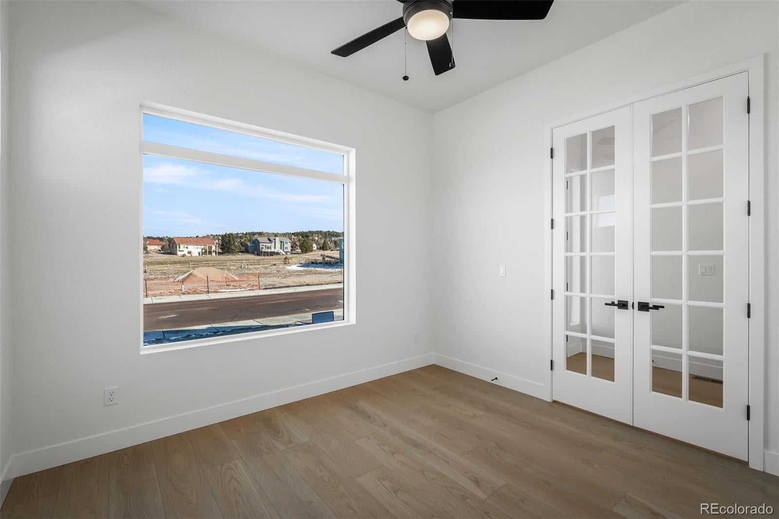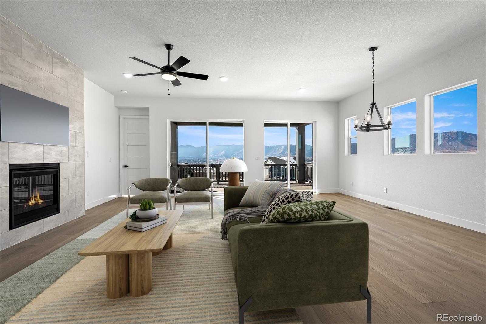 This stunning new construction home in Cloverleaf is nestled in the picturesque Monument area. Classic comforts and modern luxuries come together to make this new home in Monument, CO, a great place to build your future! This new home boasts main level living with two bedrooms and a study, offering convenience and versatility. An extended covered deck provides additional outdoor living and entertaining possibilities. Step into luxury as you explore the upgraded features throughout this home. The gourmet kitchen is a chef's dream, equipped with top-of-the-line Monogram appliances and stylish finishes. The open family room, complete with a cozy fireplace, creates an inviting space for relaxation and entertainment. The spacious utility room with a sink is directly opposite the convenient backpack rack and drop zone. Indulge in the spa-like experience of the Super Shower in your Owner's Retreat, providing a sanctuary for unwinding after a long day. The main level study with French doors offers a quiet space for work or study. Venture downstairs to the finished walk-out basement, where you'll find two additional bedrooms, a full bathroom, and a large game room complete with a wet bar, perfect for hosting guests or enjoying family time. The fully landscaped front and backyards create a beautiful outdoor oasis.