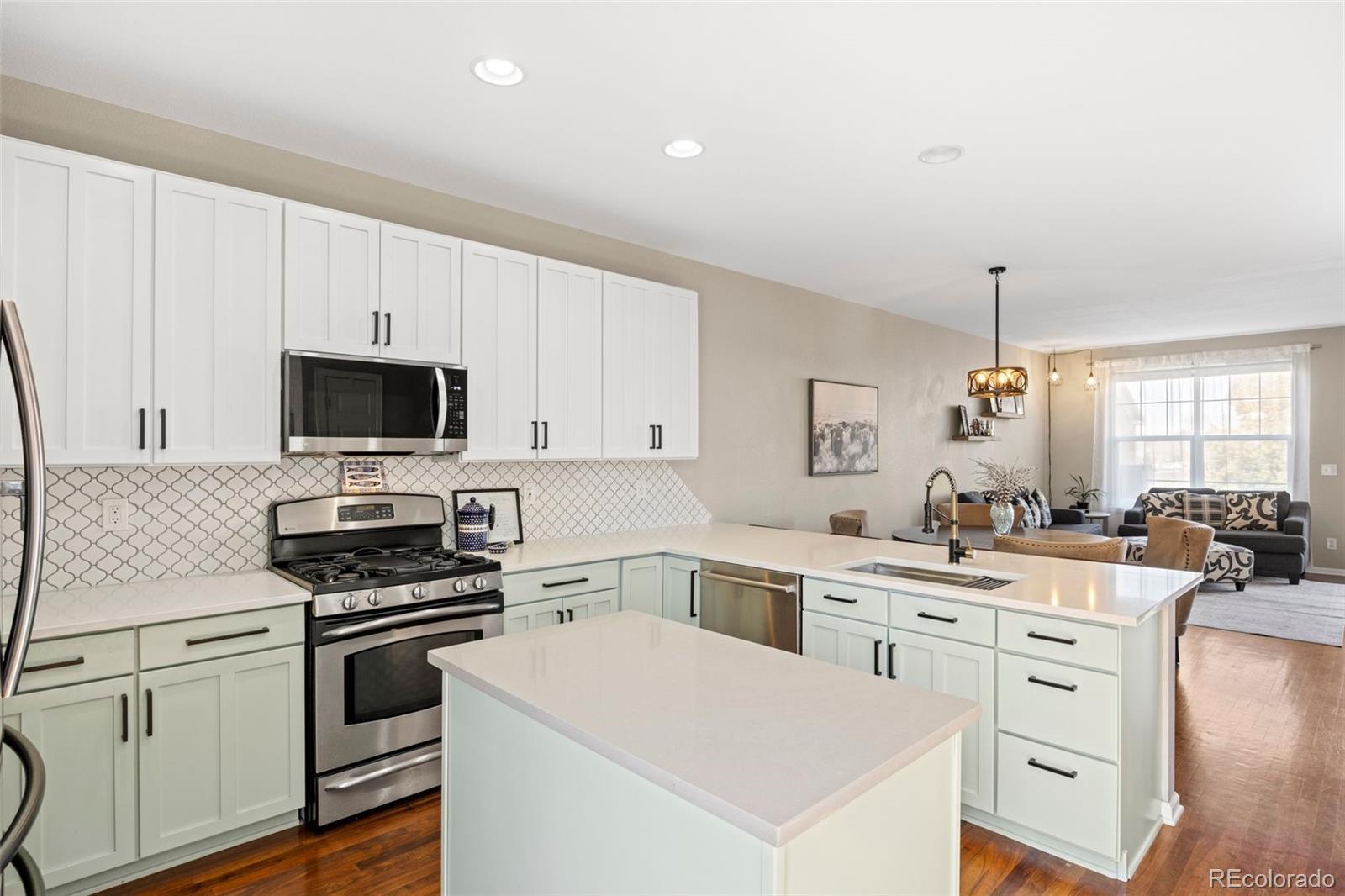 Welcome to 4326 W 118th Place in Westminster, a truly exceptional three bedroom four bathroom townhome where timeless design meets modern comfort. From the moment you arrive the stately brick façade and inviting front porch welcome you inside to experience a home filled with warmth and style. Inside you will find a bright and versatile layout with rich hardwood floors, high ceilings and abundant natural light streaming through large windows. This townhome features newer AC units and furnaces ensuring year-round comfort. The main level offers an open concept living space designed for both relaxing and entertaining. The living room exudes cozy sophistication and flows into the elegant dining area and the gourmet kitchen that will make every meal a delight. With a center island, quartz countertops, custom cabinetry, designer backsplash and stainless steel appliances this kitchen truly becomes the heart of the home. French doors open to one of your private balconies, a peaceful spot for morning coffee or evening sunsets. Upstairs the serene primary suite provides a retreat with a luxurious ensuite bathroom featuring dual vanities, a soaking tub and a walk in shower. Two additional bedrooms offer plenty of space for family, guests or a home office. The lower level adds even more flexibility with a bonus area ideal for a workspace, gym or media room, complete with an additional bathroom for convenience. Outdoors enjoy your second balcony and a private patio framed by beautifully landscaped surroundings. The community’s tree lined walkways and green spaces enhance the sense of tranquility while keeping you close to everything you need. This home sits in a prime location within walking distance to shops, cafes and dining. You can stroll to dinner, grab your morning latte or enjoy weekend shopping all without getting in the car. Stylish, spacious and move in ready, this Westminster gem offers the perfect blend of comfort, elegance and easy living, ready to welcome you home.