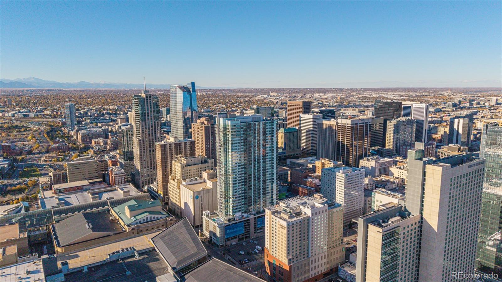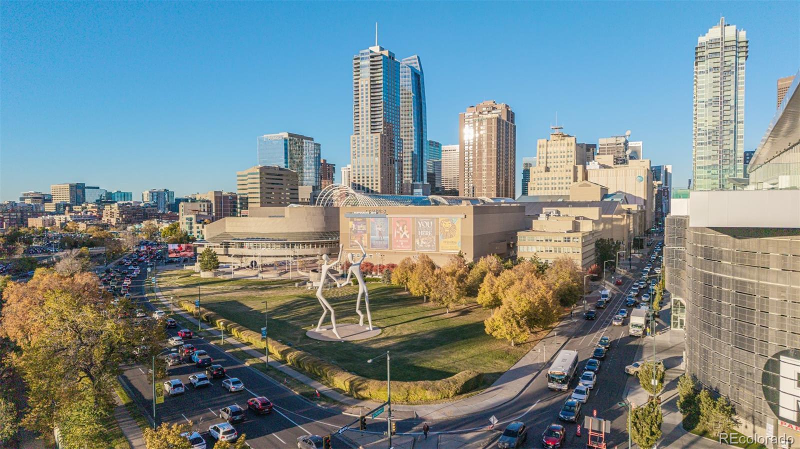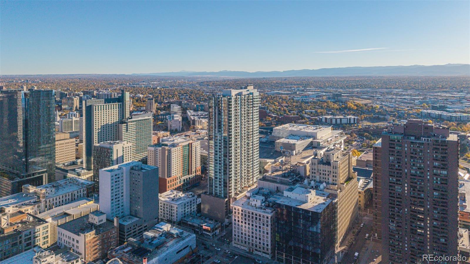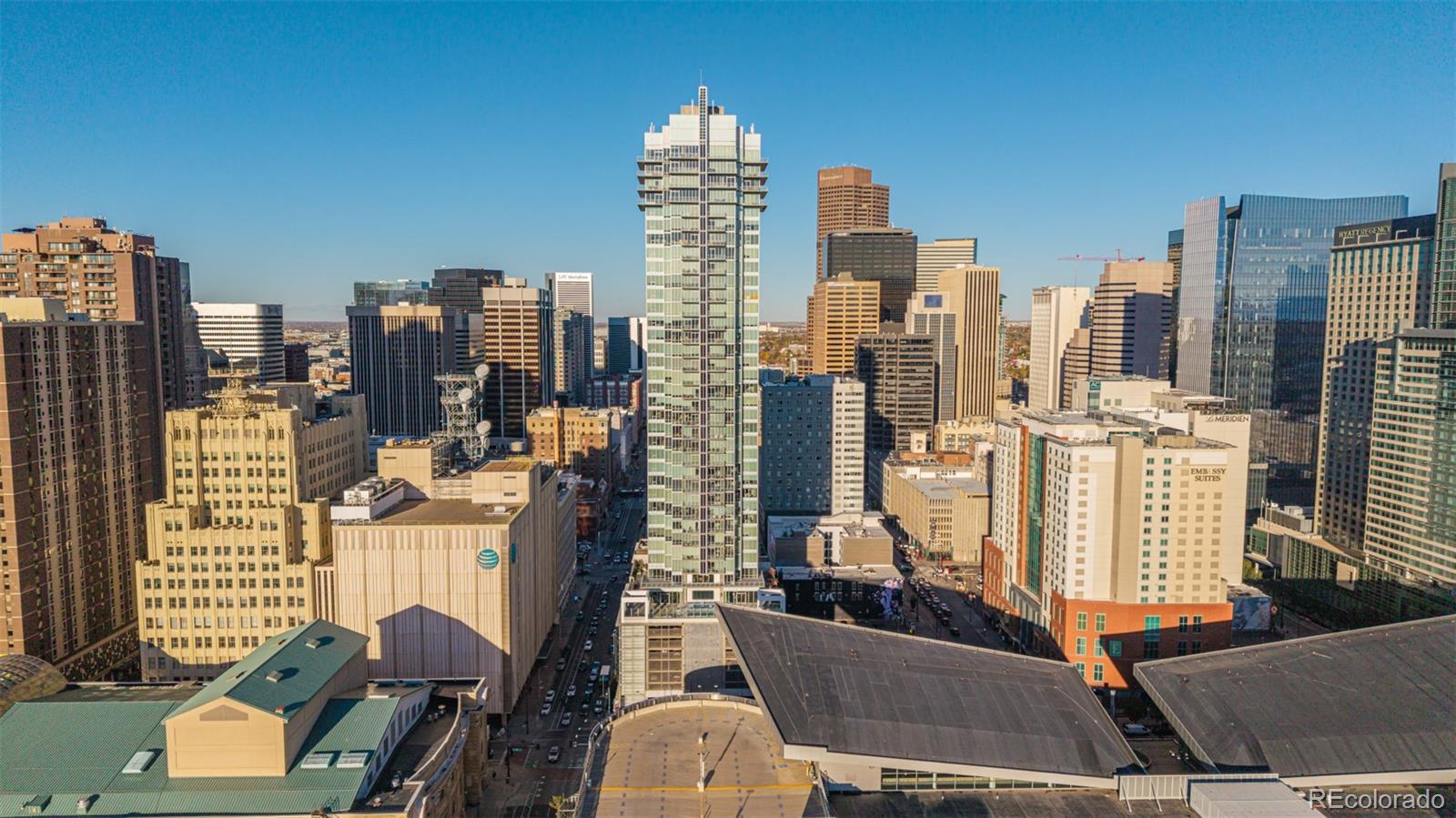 Experience elevated city living in this stunning 1 bedroom/1bathroom condo with incredible skyline views! The welcoming entrance foyer opens to a sophisticated interior featuring high ceilings, engineered hardwood floors, and floor-to-ceiling glass that floods the home with natural light. Enjoy the automatic blinds throughout this stunning residence. The open kitchen is a chef’s delight with custom granite counters, upgraded stainless steel appliances, and a breakfast bar island perfect for casual dining or entertaining. Bright bedroom offers a serene retreat with a walk-in closet, while the bathroom showcases a glass-enclosed tub/shower combo and modern finishes. A stacked washer and dryer adds everyday convenience. The charming balcony is perfect for enjoying fresh air and amazing mountains/city views. This condo also includes a reserved deeded parking space (desirably located on level 2) and access to resort-style amenities such as a pool, hot tub, club room, movie theater and gym. The location is unbeatable! The building sits within walking distance to 16th Street Mall, DCPA, Sculpture Park on Speer and all the amazing restaurants on Larimer Square. One amazing perk of owning this unit - enjoy access to the penthouse SkyClub lounge high atop the 42-story SPIRE.
