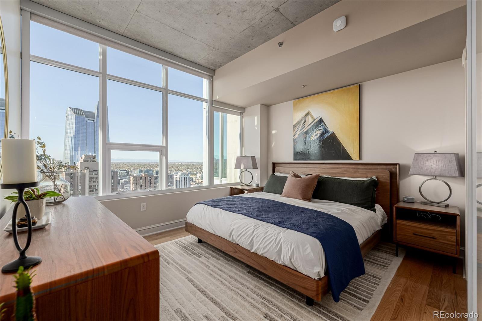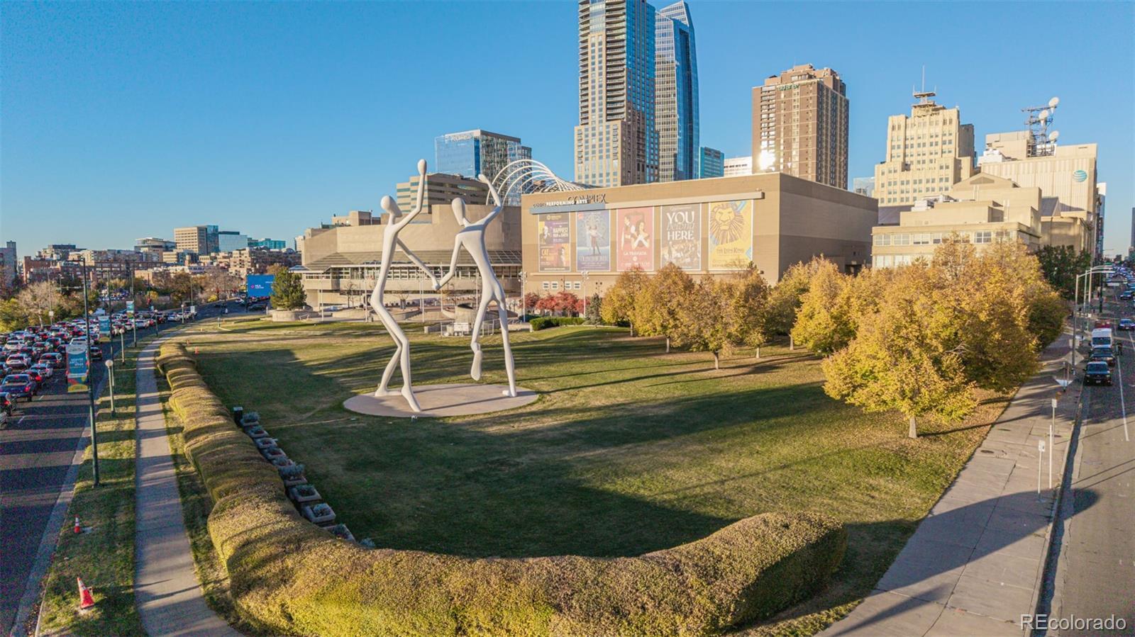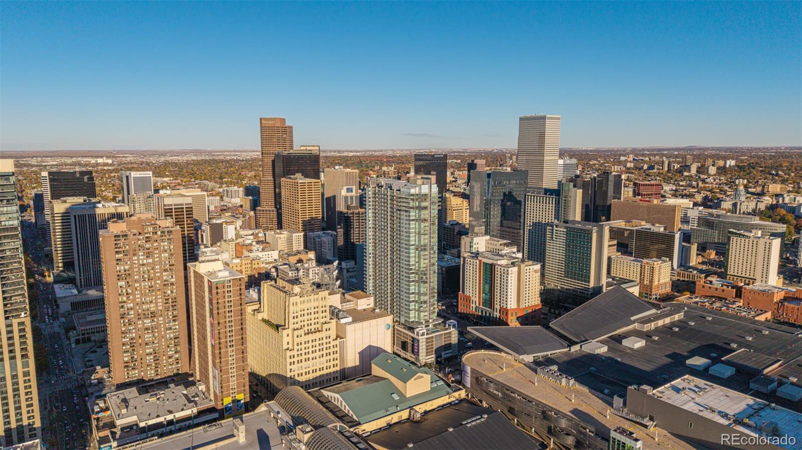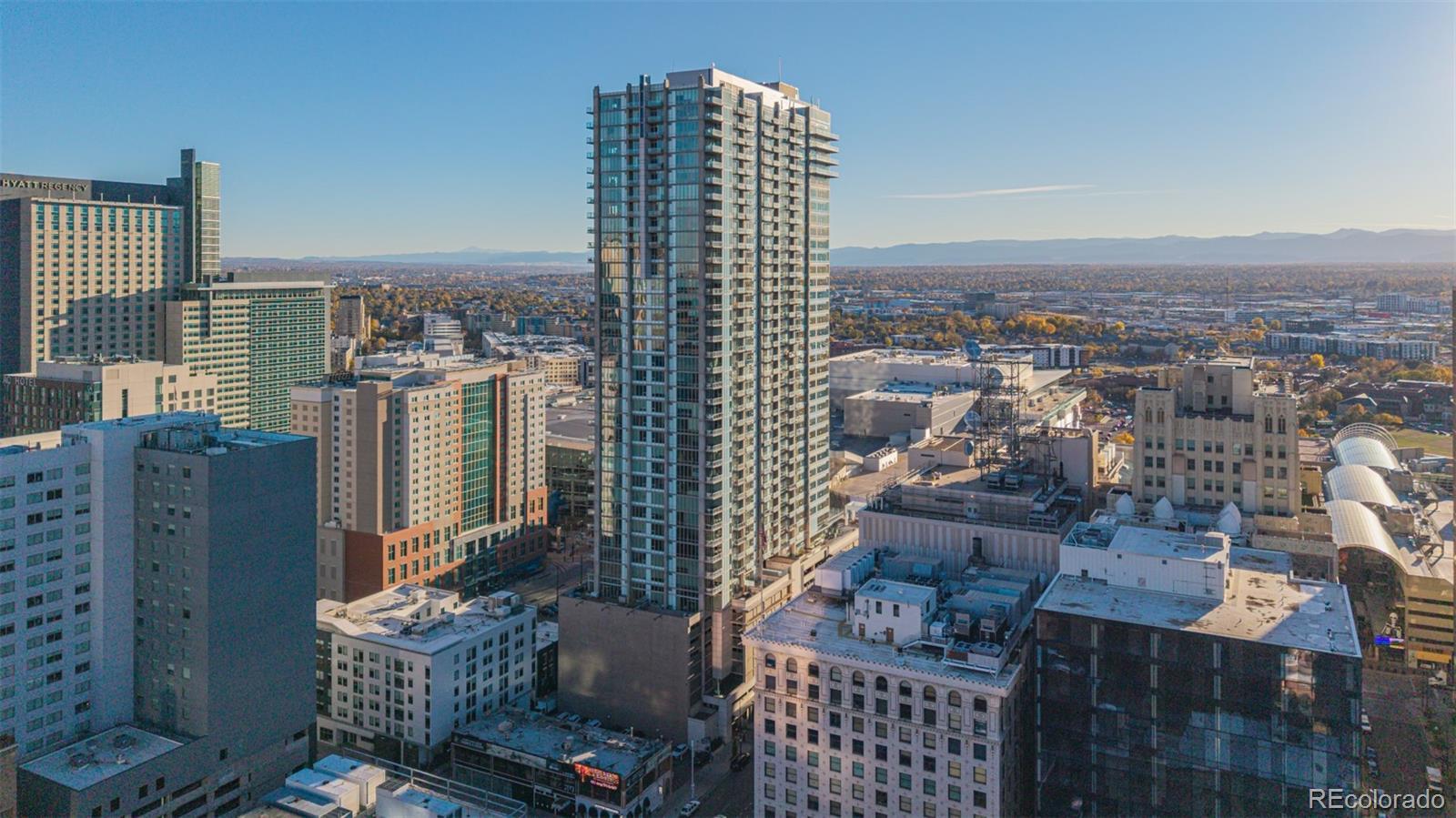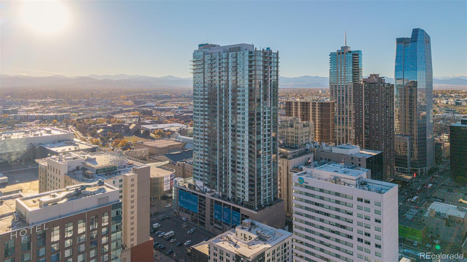 Experience elevated city living in this stunning 1 bedroom/1bathroom condo with incredible skyline views! The welcoming entrance foyer opens to a sophisticated interior featuring high ceilings, engineered hardwood floors, and floor-to-ceiling glass that floods the home with natural light. Enjoy the automatic blinds throughout this stunning residence. The open kitchen is a chef’s delight with custom granite counters, upgraded stainless steel appliances, and a breakfast bar island perfect for casual dining or entertaining. Bright bedroom offers a serene retreat with a walk-in closet, while the bathroom showcases a glass-enclosed tub/shower combo and modern finishes. A stacked washer and dryer adds everyday convenience. The charming balcony is perfect for enjoying fresh air and amazing mountains/city views. This condo also includes a reserved deeded parking space (desirably located on level 2) and access to resort-style amenities such as a pool, hot tub, club room, movie theater and gym. The location is unbeatable! The building sits within walking distance to 16th Street Mall, DCPA, Sculpture Park on Speer and all the amazing restaurants on Larimer Square. One amazing perk of owning this unit - enjoy access to the penthouse SkyClub lounge high atop the 42-story SPIRE.