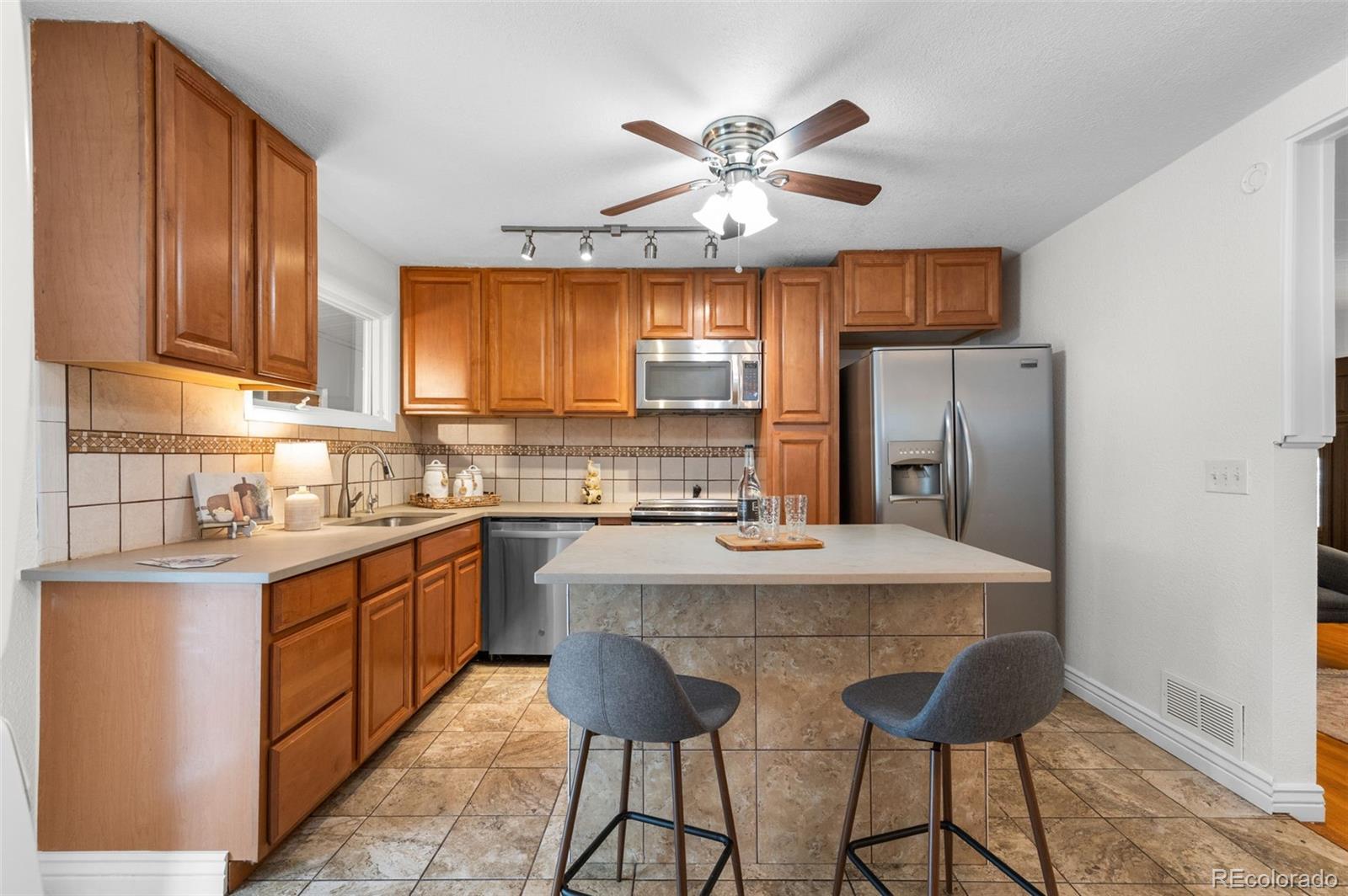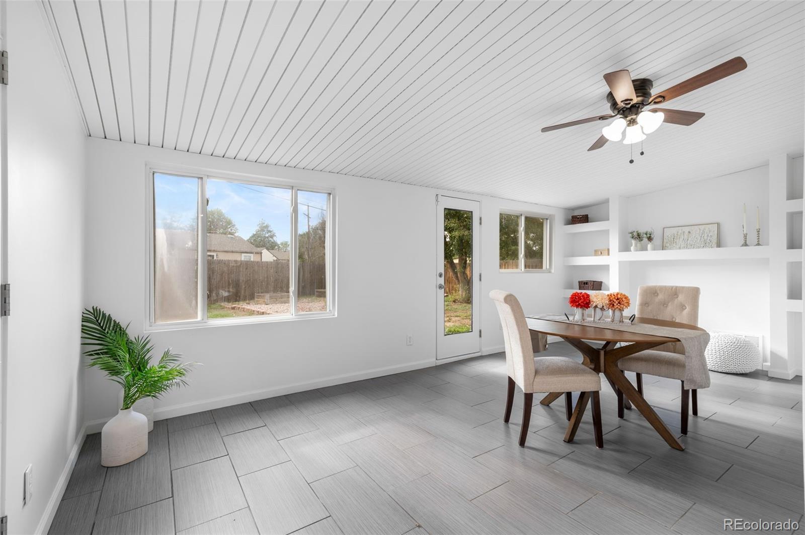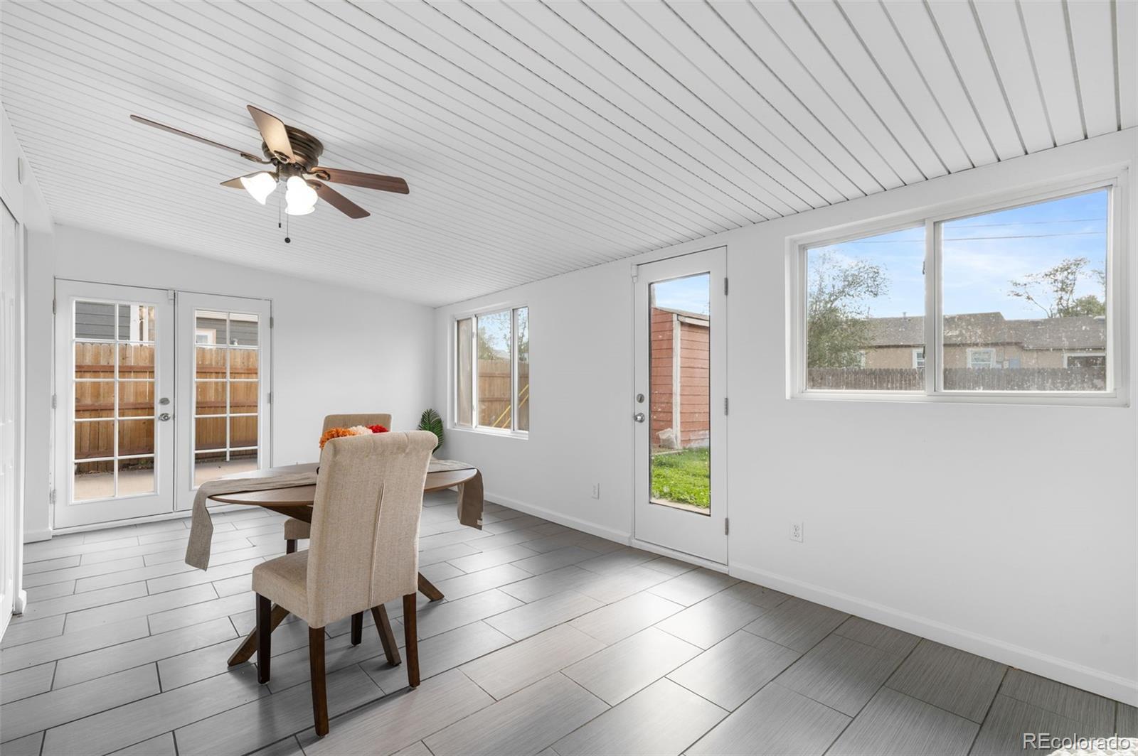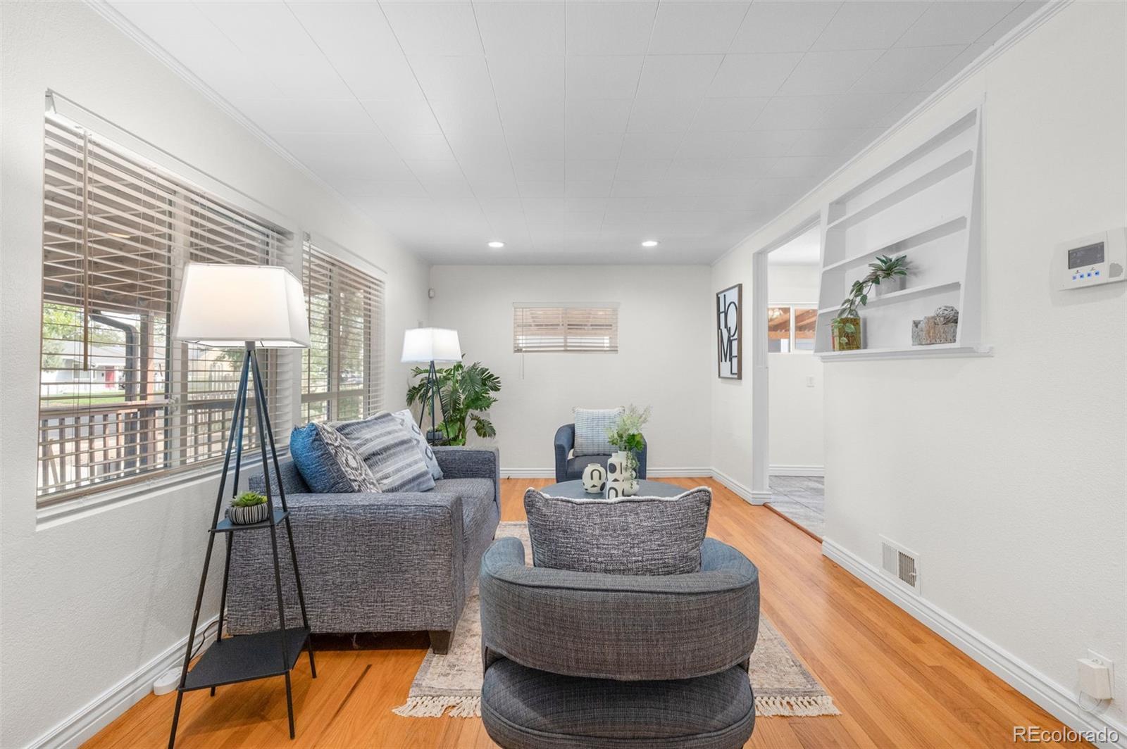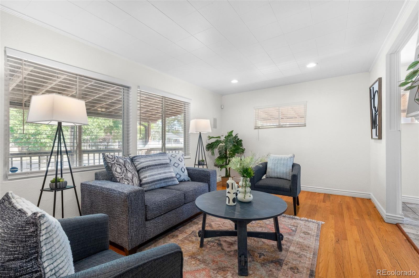 Welcome to this charming Aurora ranch home that checks all the boxes for comfort, convenience, and opportunity. This 3-bedroom, 1-bath home sits on a large lot with plenty of outdoor space to relax, entertain, or garden. The covered front patio is the perfect setting for morning coffee, and don't miss the bonus sunroom offering year-round flexibility including a second living area, a dining room, an office or fourth bedroom and even has the potential to add a second bathroom down the road. The kitchen features stainless steel appliances and an eat-in kitchen island. New paint, wood flooring throughout, and a newer A/C system. Easy access to I-225, and close to all the shopping, dining, and entertainment along Havana Street, as well as Anschutz Medical Campus.