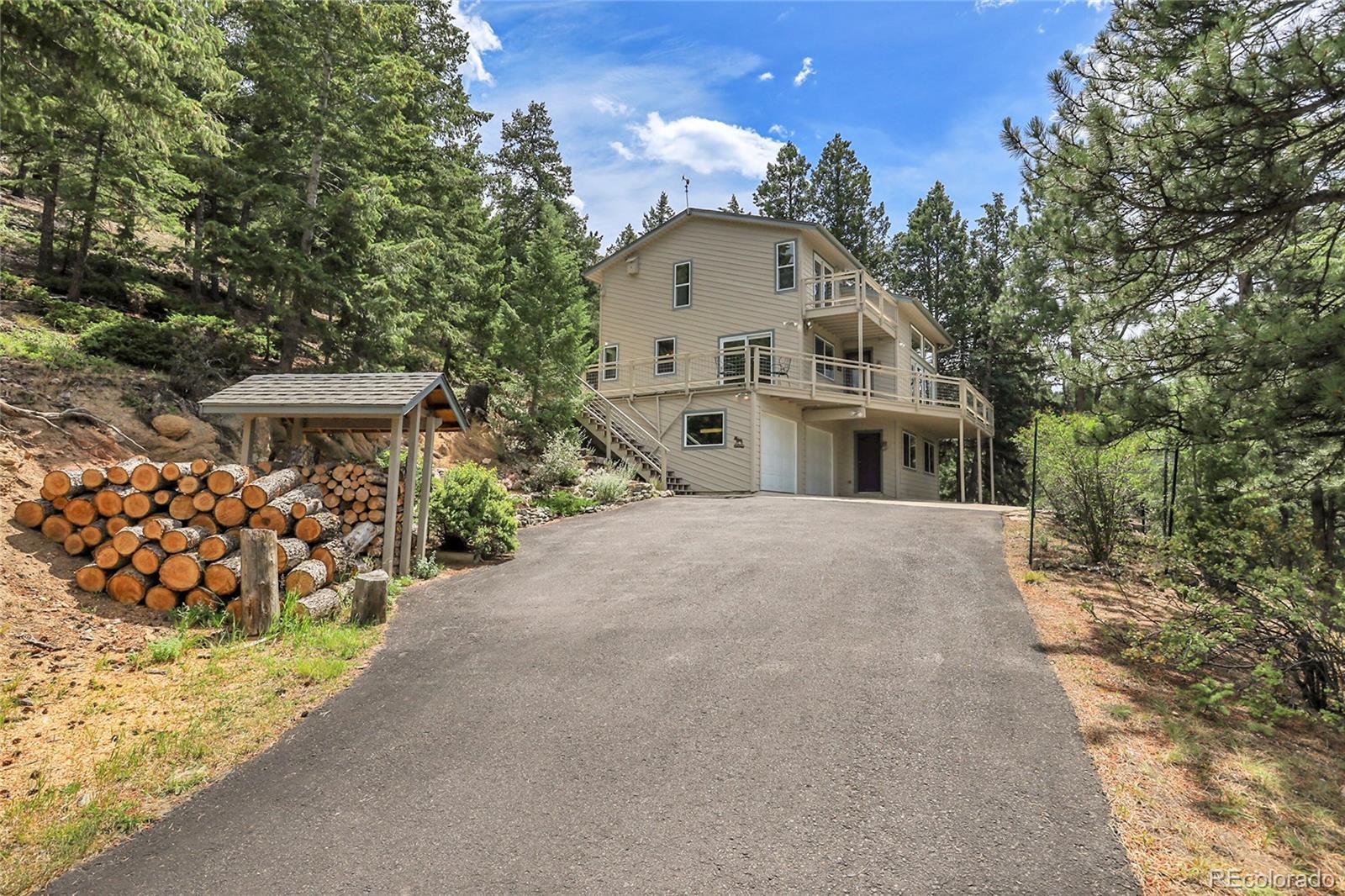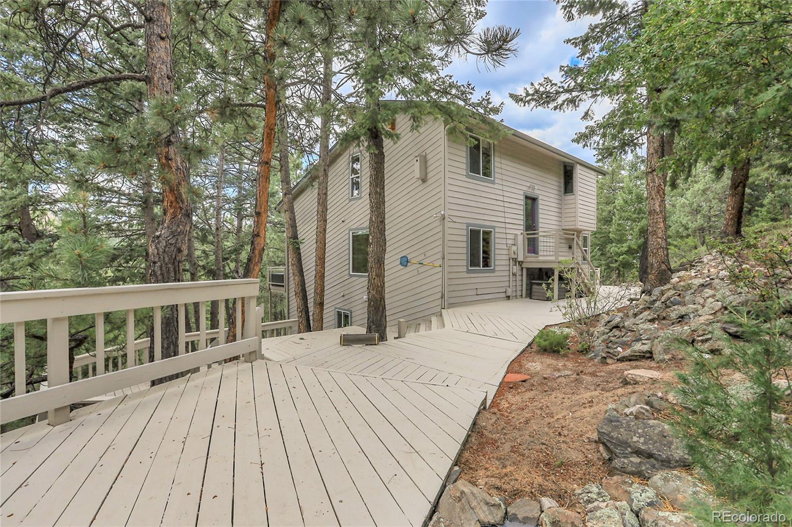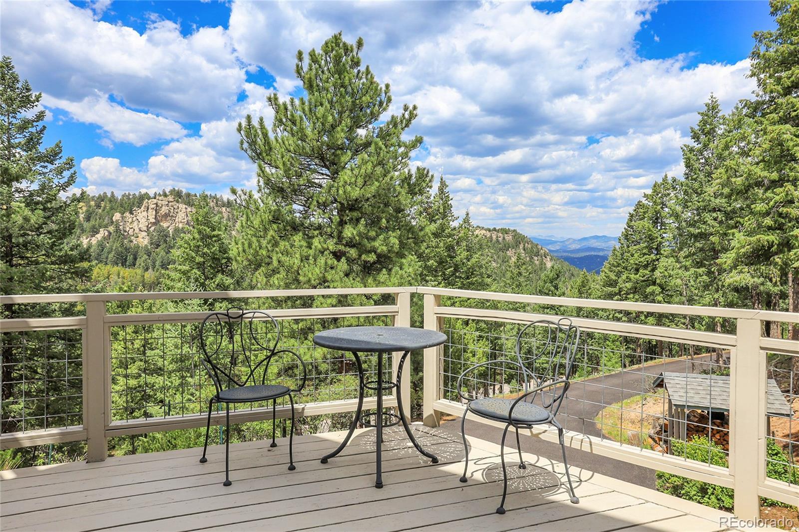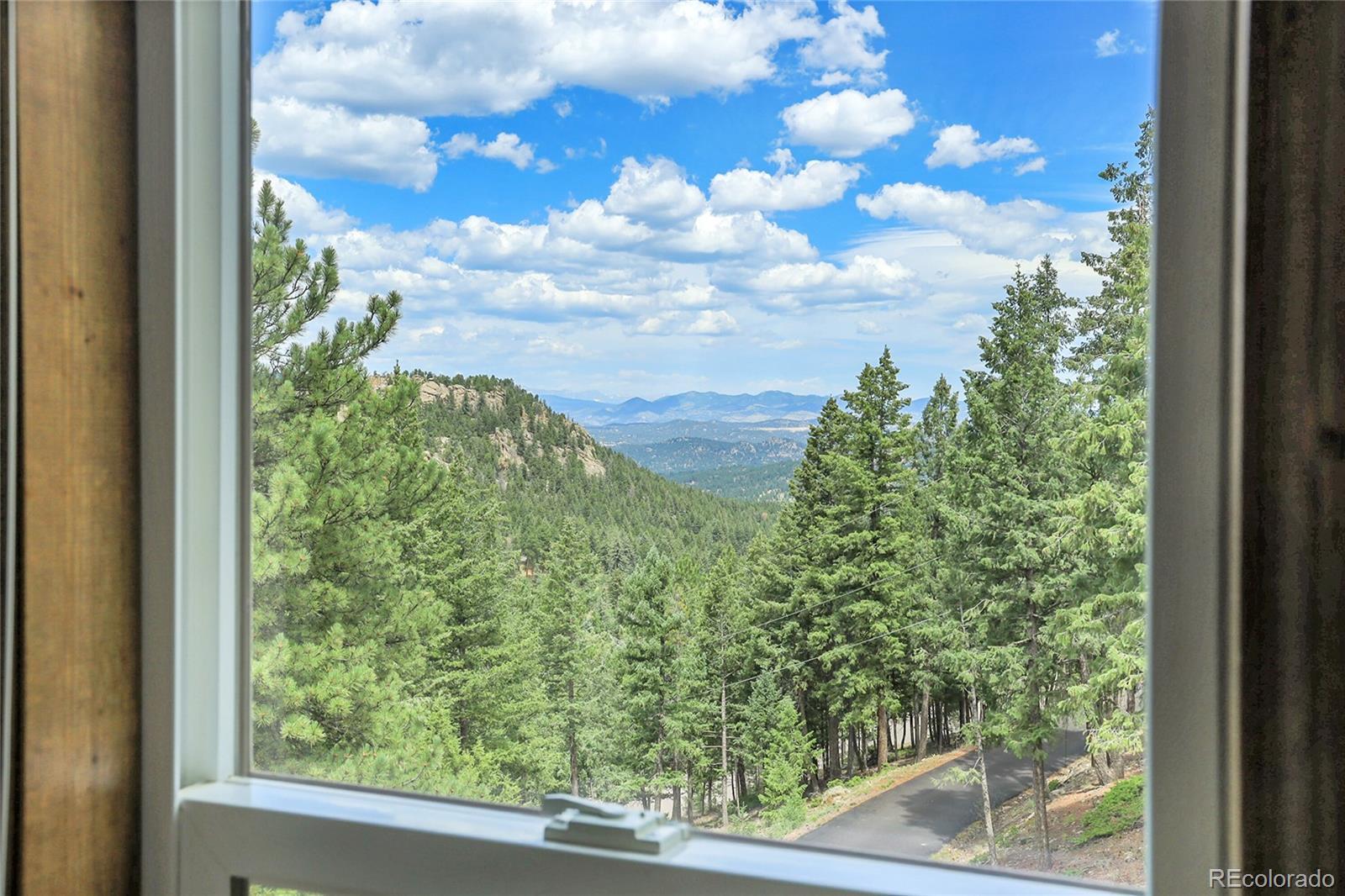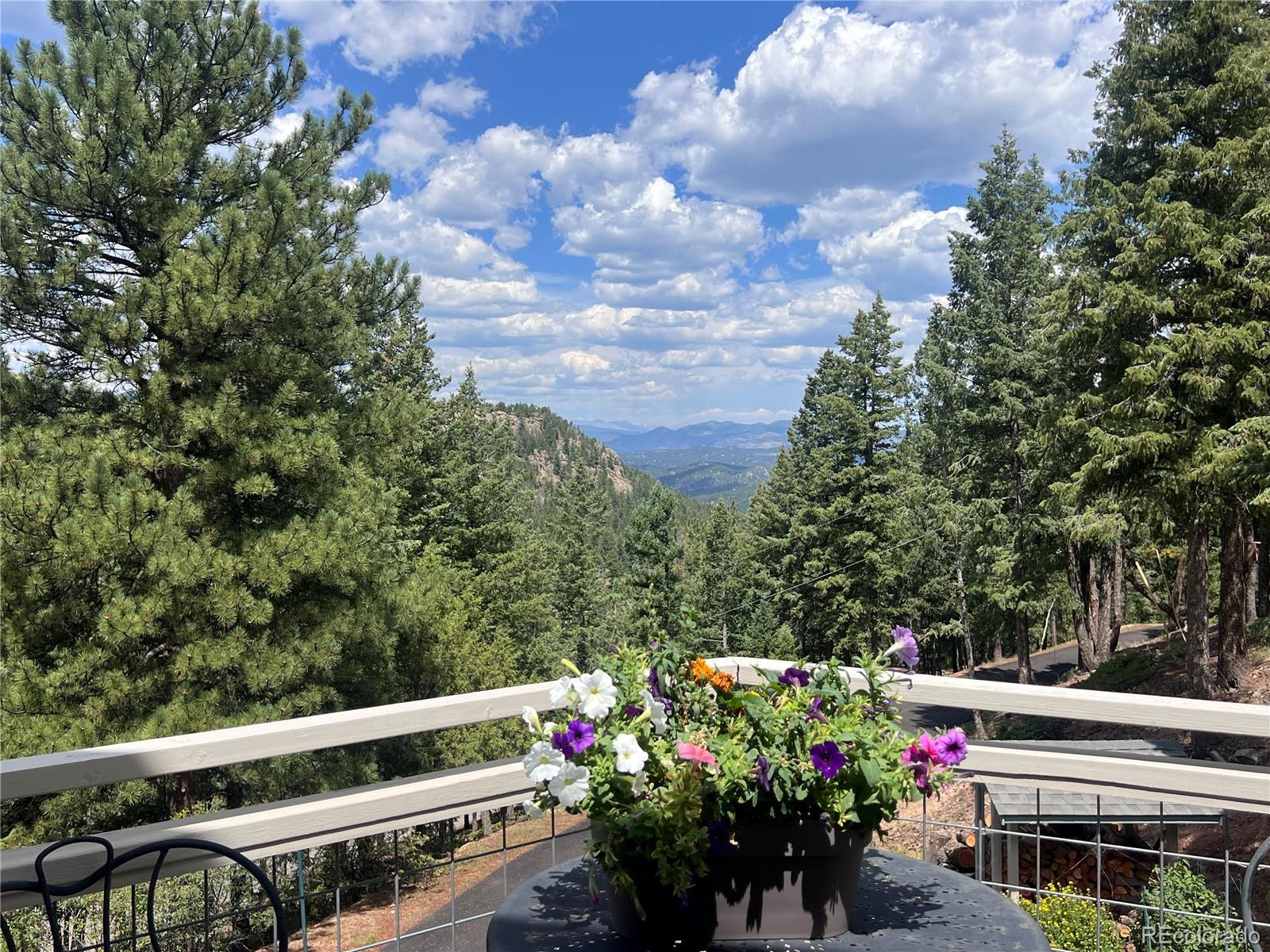 2/1 Rate Buy Down Offered! Obtain a savings of over $900/mo the 1st year! Enjoy privacy, nature, and ease of living in this a well-cared-for mountain retreat. Nestled on almost 4 acres with snowcapped views, this thoughtfully updated home offers the best of Colorado living—quiet surroundings, big skies, & frequent wildlife all just minutes to neighborhood amenities. A paved driveway & easy year-round access take you to this lovely home. Step onto the expansive deck – whether you want sun or shade, you will enjoy beautiful outdoor living with complete privacy & lovely views. Inside find hardwood flooring & a gorgeous remodeled kitchen complete with gas stove, pantry, & cherry cabinetry with the latest features. The lofted living room has a stone fireplace, new paint, plentiful windows to take in the sunshine, & exteriors doors to the deck. Radiant in-floor natural gas heat keeps the home toasty. The primary suite has new carpet, walk-in closet & its own private coffee deck to greet the day. On the lower walk-out level, find a cozy family room w/ private entrance, which could make a 4th bedroom or mother-in-law suite. The oversized garage features a large workbench & plentiful storage. Newer roof, smart thermostats & high speed internet make living here a breeze. Natures creatures abound here, as this 4 acre property has been lovingly cared for with virtually no noxious weeds, no chemicals used, and water features that attract the deer, fox and elk. Walk the trail to above the home for even bigger views & great sunsets! This delightful neighborhood includes amenities such as a 20+ acre common area, fishing pond, tennis/pickleball courts, play area, volleyball court, horse stable, & rentable barn for events. Lots of community gatherings too. It’s just 9 minutes to Hwy 285 for a quick trip to Denver, and just 15 minutes to downtown Evergreen and close proximity to a myriad of trails to hike and bike. Video, 3D walk thru, & more photos at: www.6684OlympusDrive.com