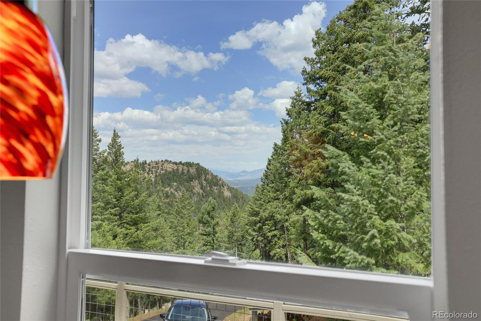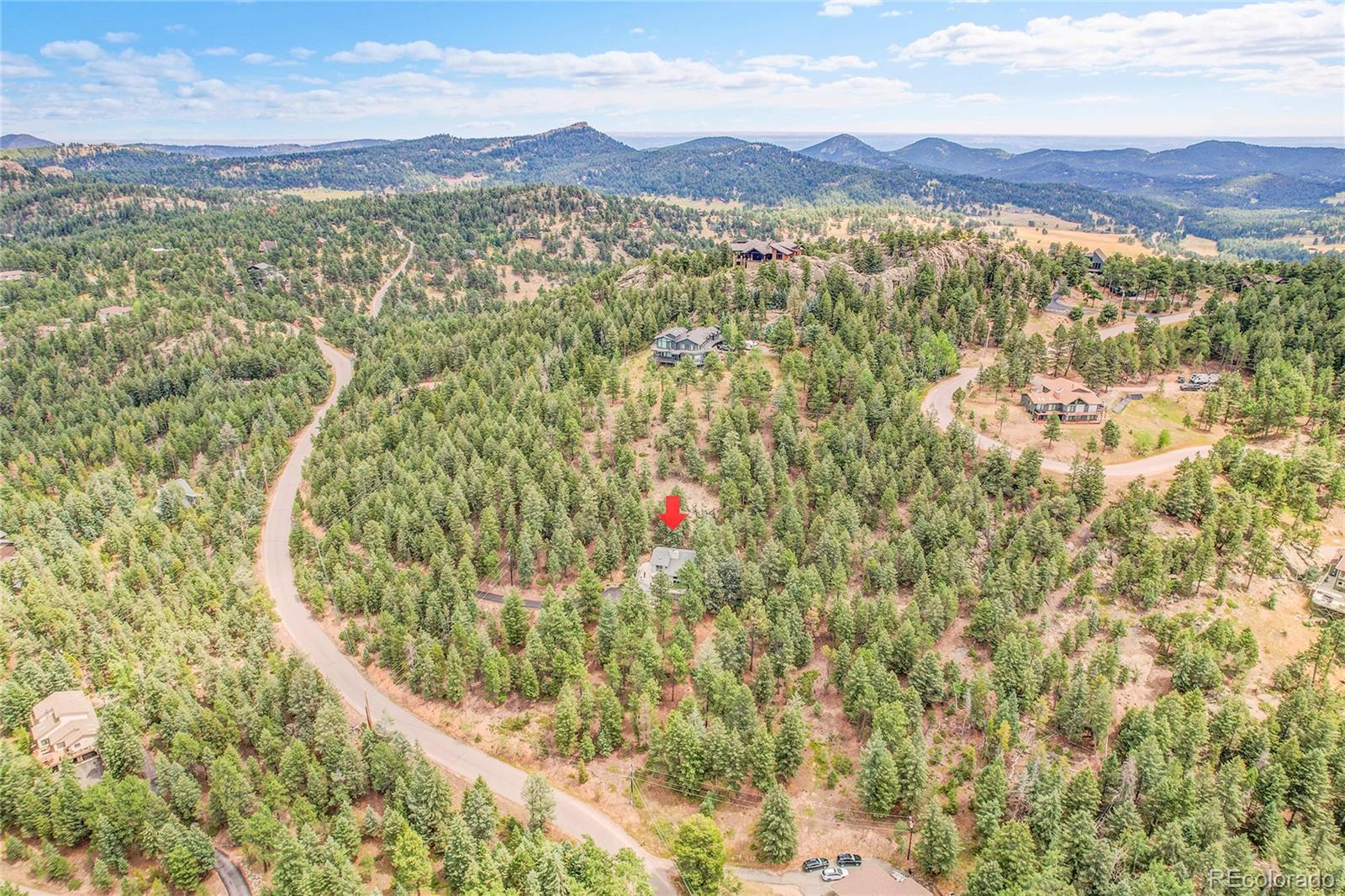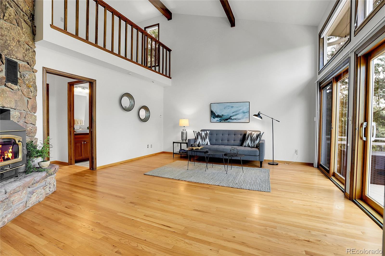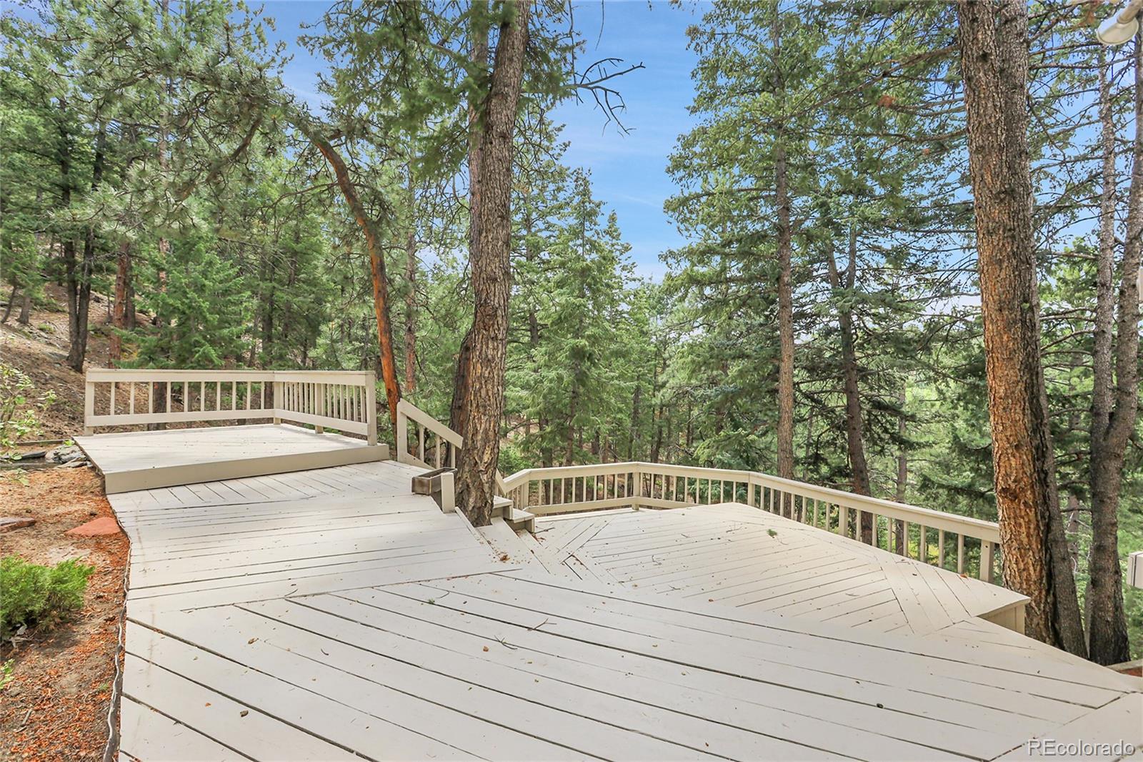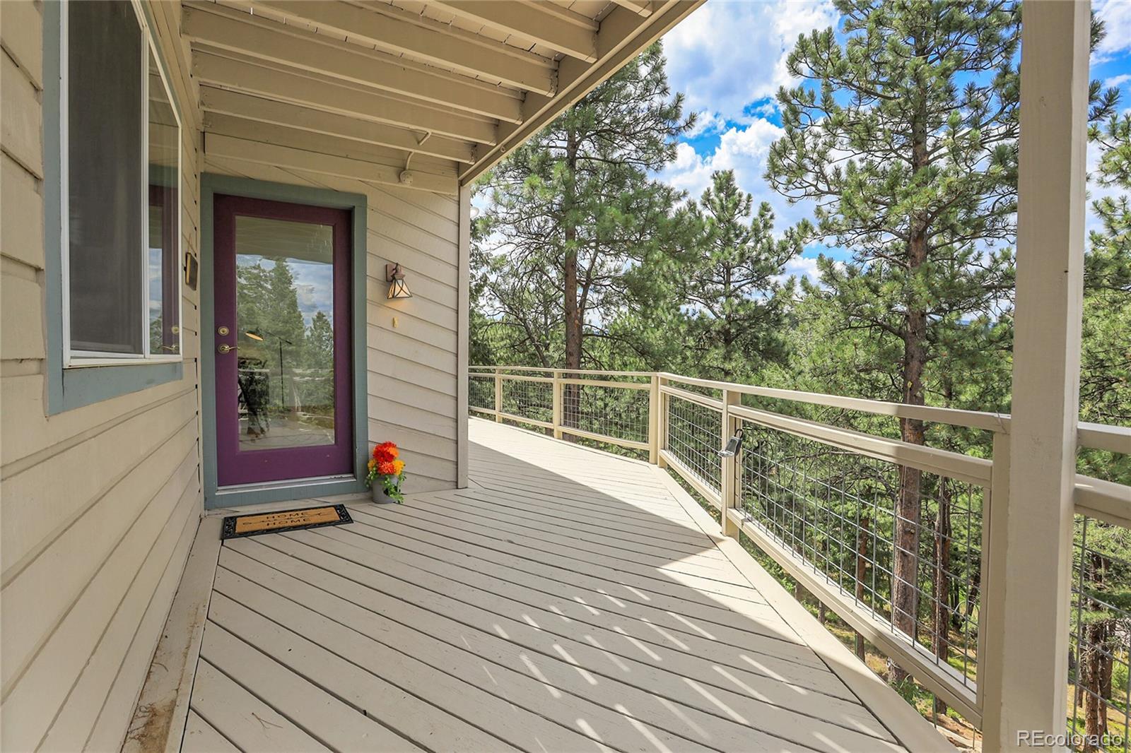 2/1 Rate Buy Down Offered! Obtain a savings of over $900/mo the 1st year! Enjoy privacy, nature, and ease of living in this a well-cared-for mountain retreat. Nestled on almost 4 acres with snowcapped views, this thoughtfully updated home offers the best of Colorado living—quiet surroundings, big skies, & frequent wildlife all just minutes to neighborhood amenities. A paved driveway & easy year-round access take you to this lovely home. Step onto the expansive deck – whether you want sun or shade, you will enjoy beautiful outdoor living with complete privacy & lovely views. Inside find hardwood flooring & a gorgeous remodeled kitchen complete with gas stove, pantry, & cherry cabinetry with the latest features. The lofted living room has a stone fireplace, new paint, plentiful windows to take in the sunshine, & exteriors doors to the deck. Radiant in-floor natural gas heat keeps the home toasty. The primary suite has new carpet, walk-in closet & its own private coffee deck to greet the day. On the lower walk-out level, find a cozy family room w/ private entrance, which could make a 4th bedroom or mother-in-law suite. The oversized garage features a large workbench & plentiful storage. Newer roof, smart thermostats & high speed internet make living here a breeze. Natures creatures abound here, as this 4 acre property has been lovingly cared for with virtually no noxious weeds, no chemicals used, and water features that attract the deer, fox and elk. Walk the trail to above the home for even bigger views & great sunsets! This delightful neighborhood includes amenities such as a 20+ acre common area, fishing pond, tennis/pickleball courts, play area, volleyball court, horse stable, & rentable barn for events. Lots of community gatherings too. It’s just 9 minutes to Hwy 285 for a quick trip to Denver, and just 15 minutes to downtown Evergreen and close proximity to a myriad of trails to hike and bike. Video, 3D walk thru, & more photos at: www.6684OlympusDrive.com