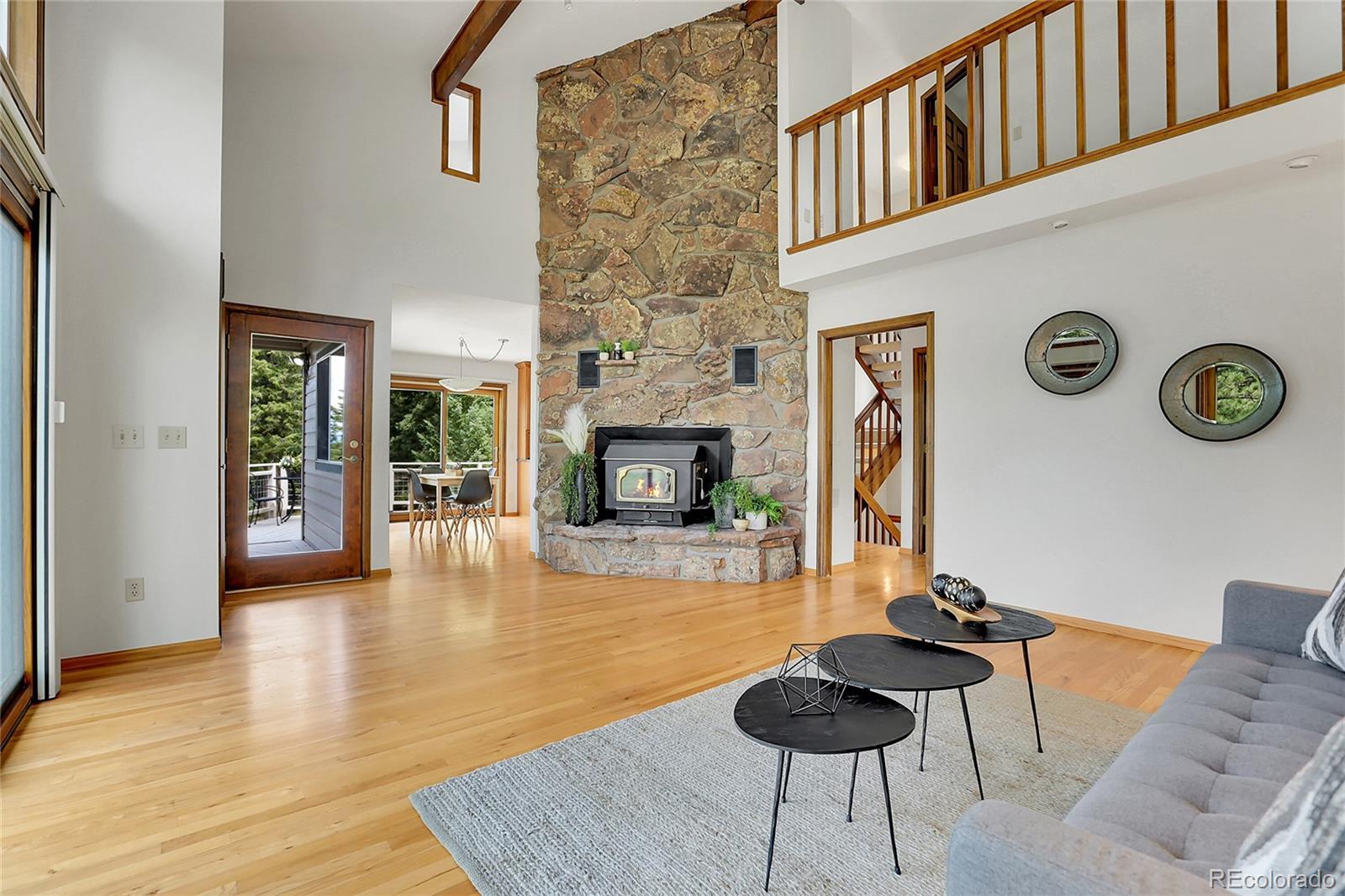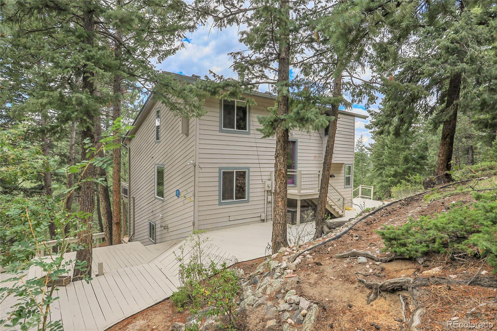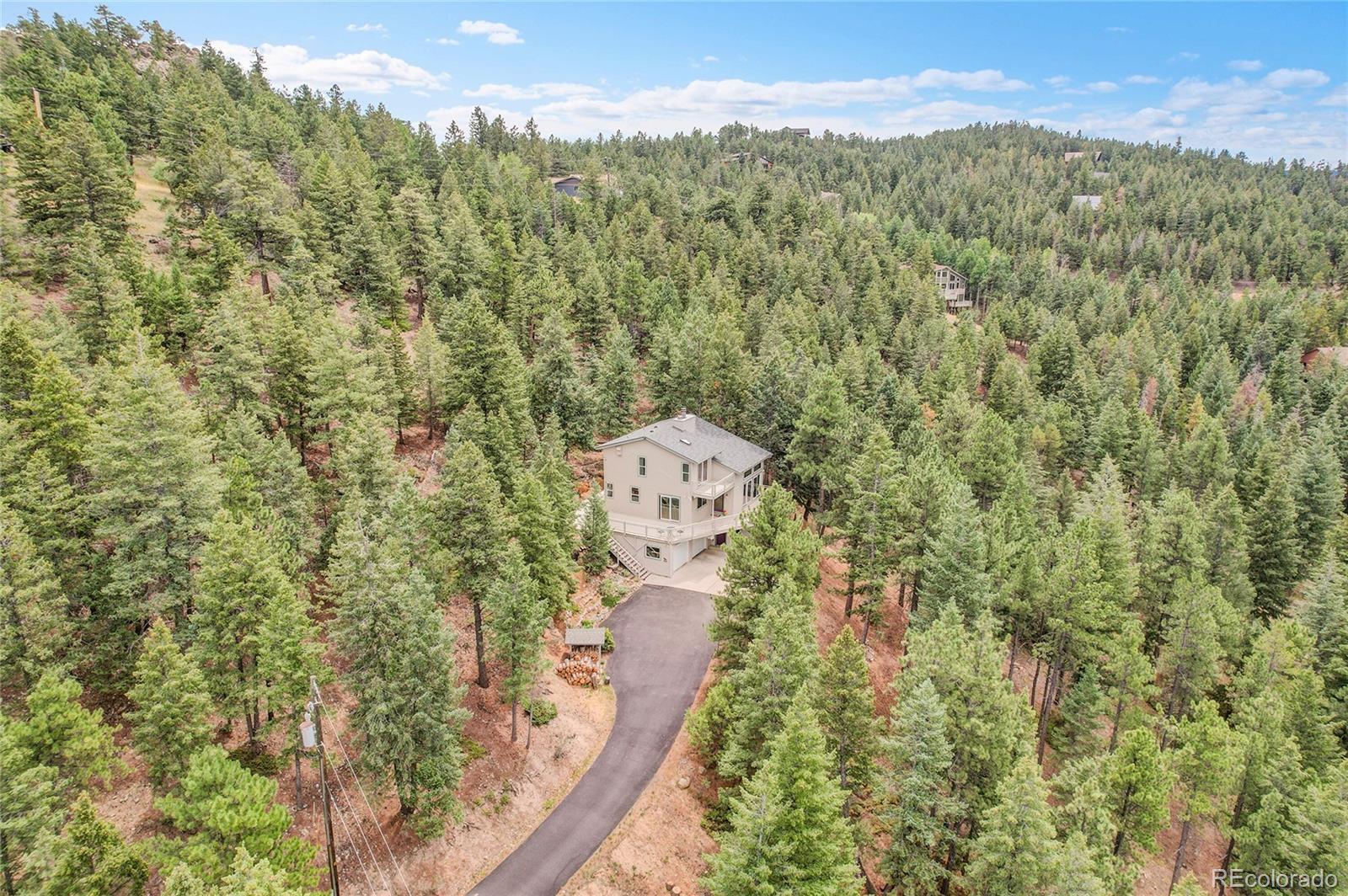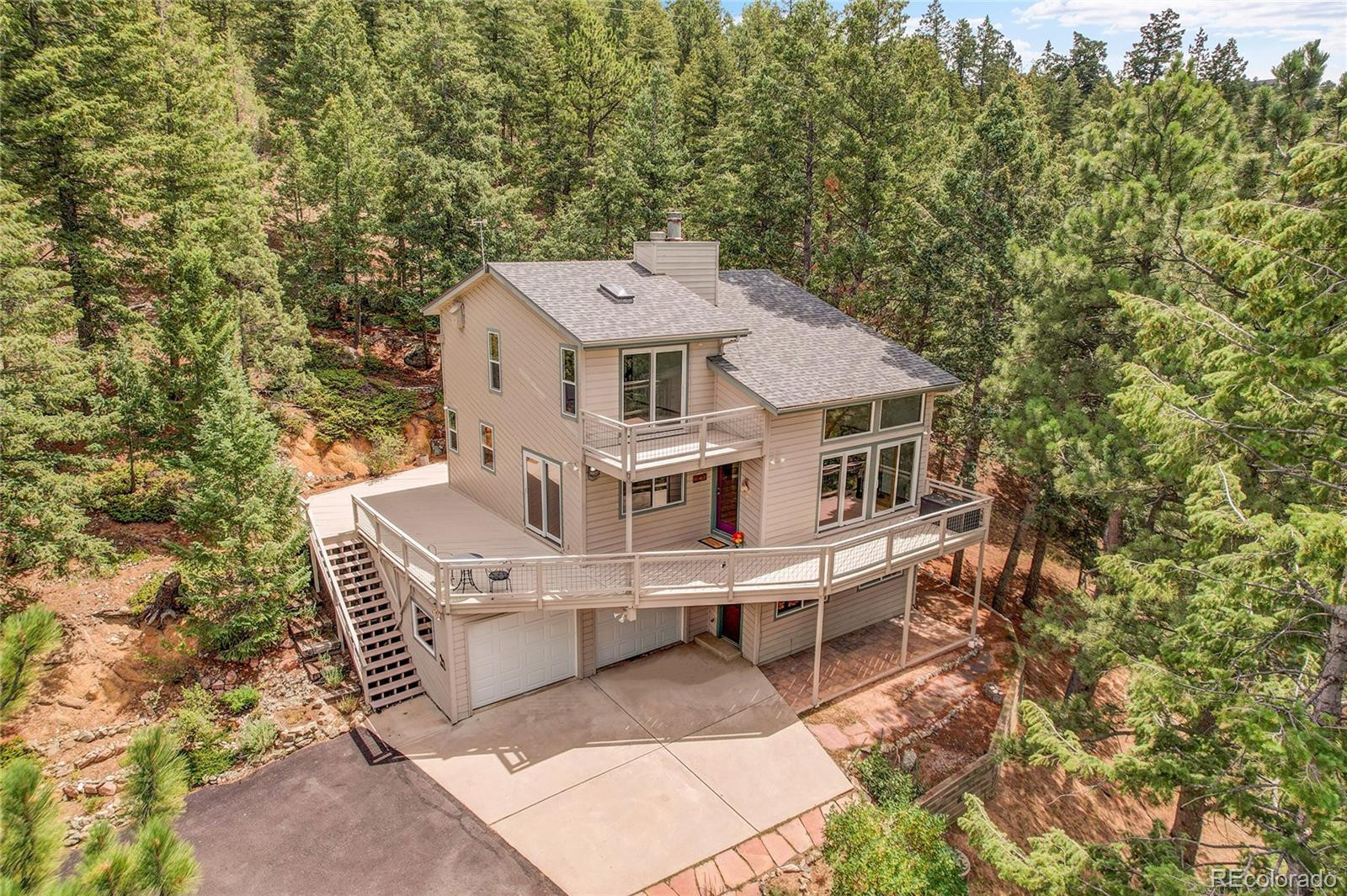 2/1 Rate Buy Down Offered! Obtain a savings of over $900/mo the 1st year! Enjoy privacy, nature, and ease of living in this a well-cared-for mountain retreat. Nestled on almost 4 acres with snowcapped views, this thoughtfully updated home offers the best of Colorado living—quiet surroundings, big skies, & frequent wildlife all just minutes to neighborhood amenities. A paved driveway & easy year-round access take you to this lovely home. Step onto the expansive deck – whether you want sun or shade, you will enjoy beautiful outdoor living with complete privacy & lovely views. Inside find hardwood flooring & a gorgeous remodeled kitchen complete with gas stove, pantry, & cherry cabinetry with the latest features. The lofted living room has a stone fireplace, new paint, plentiful windows to take in the sunshine, & exteriors doors to the deck. Radiant in-floor natural gas heat keeps the home toasty. The primary suite has new carpet, walk-in closet & its own private coffee deck to greet the day. On the lower walk-out level, find a cozy family room w/ private entrance, which could make a 4th bedroom or mother-in-law suite. The oversized garage features a large workbench & plentiful storage. Newer roof, smart thermostats & high speed internet make living here a breeze. Natures creatures abound here, as this 4 acre property has been lovingly cared for with virtually no noxious weeds, no chemicals used, and water features that attract the deer, fox and elk. Walk the trail to above the home for even bigger views & great sunsets! This delightful neighborhood includes amenities such as a 20+ acre common area, fishing pond, tennis/pickleball courts, play area, volleyball court, horse stable, & rentable barn for events. Lots of community gatherings too. It’s just 9 minutes to Hwy 285 for a quick trip to Denver, and just 15 minutes to downtown Evergreen and close proximity to a myriad of trails to hike and bike. Video, 3D walk thru, & more photos at: www.6684OlympusDrive.com