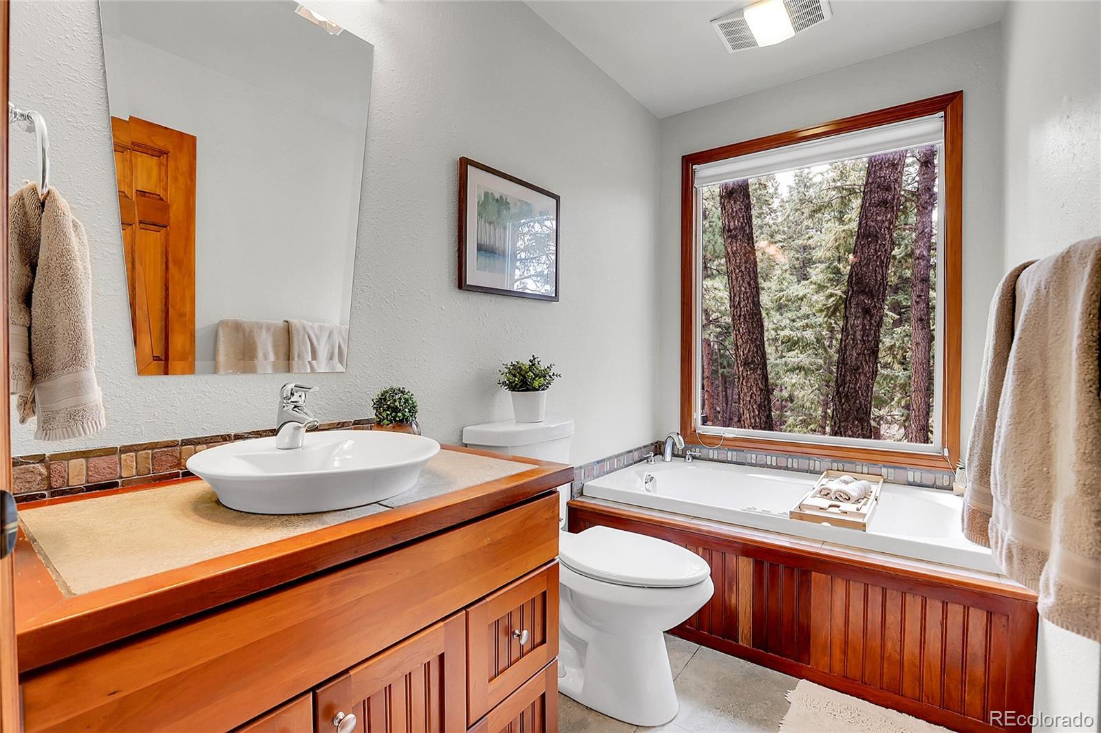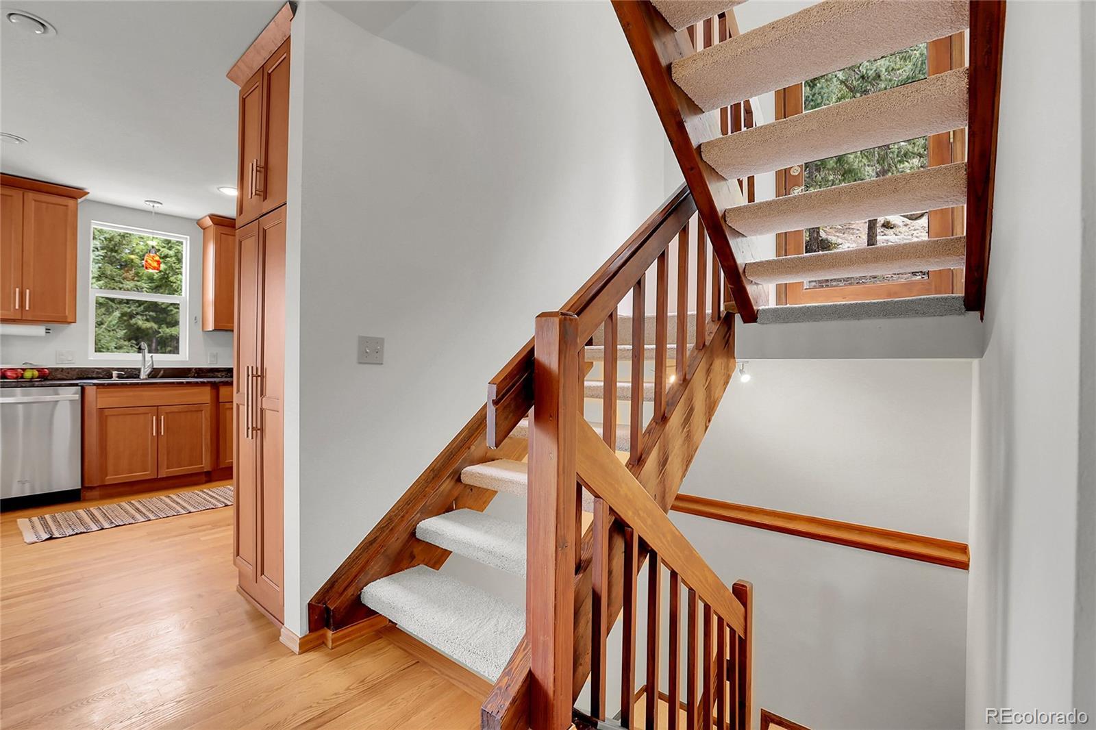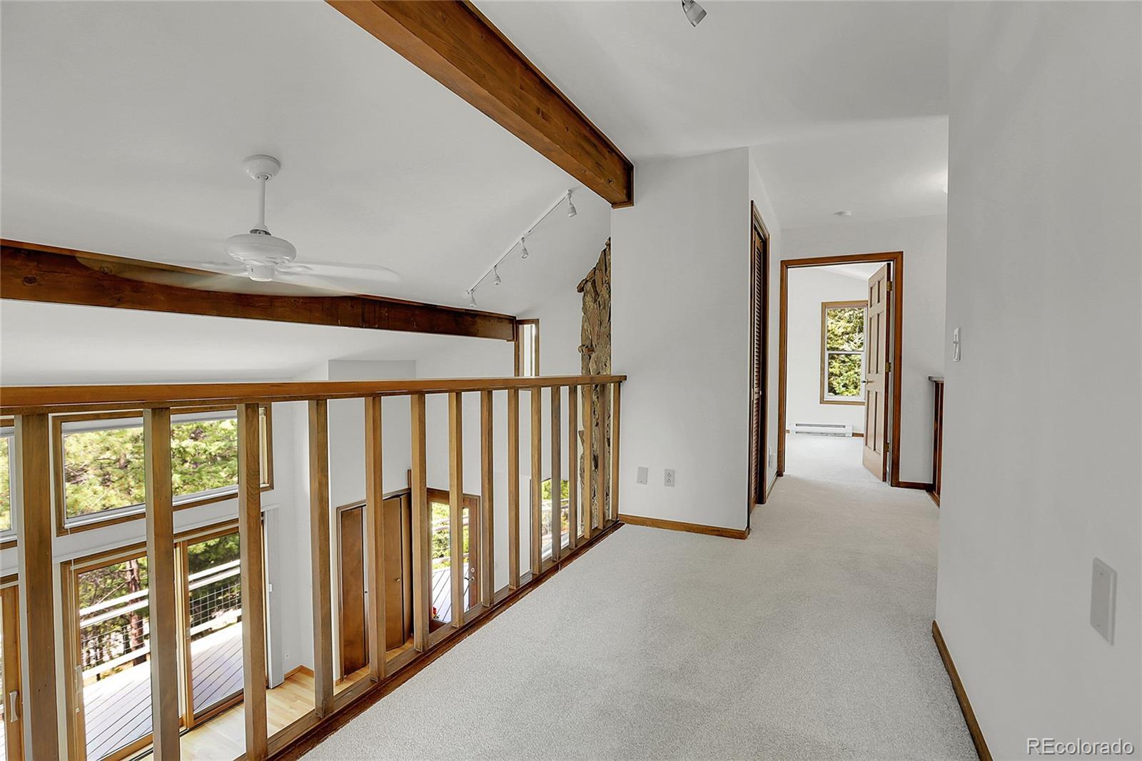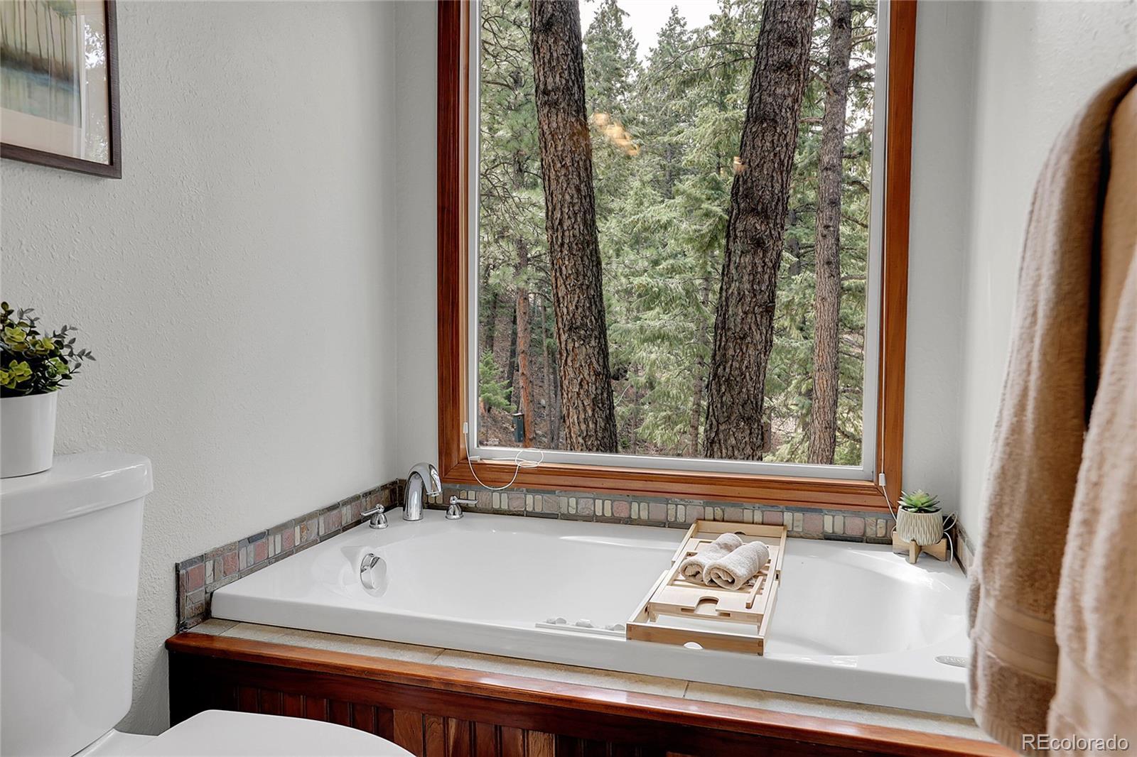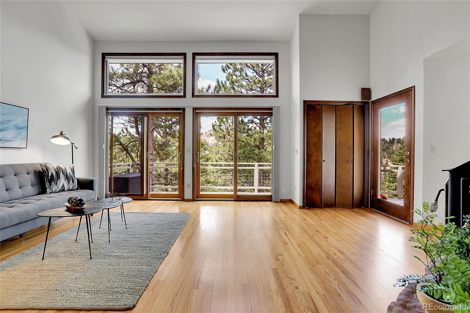 2/1 Rate Buy Down Offered! Obtain a savings of over $900/mo the 1st year! Enjoy privacy, nature, and ease of living in this a well-cared-for mountain retreat. Nestled on almost 4 acres with snowcapped views, this thoughtfully updated home offers the best of Colorado living—quiet surroundings, big skies, & frequent wildlife all just minutes to neighborhood amenities. A paved driveway & easy year-round access take you to this lovely home. Step onto the expansive deck – whether you want sun or shade, you will enjoy beautiful outdoor living with complete privacy & lovely views. Inside find hardwood flooring & a gorgeous remodeled kitchen complete with gas stove, pantry, & cherry cabinetry with the latest features. The lofted living room has a stone fireplace, new paint, plentiful windows to take in the sunshine, & exteriors doors to the deck. Radiant in-floor natural gas heat keeps the home toasty. The primary suite has new carpet, walk-in closet & its own private coffee deck to greet the day. On the lower walk-out level, find a cozy family room w/ private entrance, which could make a 4th bedroom or mother-in-law suite. The oversized garage features a large workbench & plentiful storage. Newer roof, smart thermostats & high speed internet make living here a breeze. Natures creatures abound here, as this 4 acre property has been lovingly cared for with virtually no noxious weeds, no chemicals used, and water features that attract the deer, fox and elk. Walk the trail to above the home for even bigger views & great sunsets! This delightful neighborhood includes amenities such as a 20+ acre common area, fishing pond, tennis/pickleball courts, play area, volleyball court, horse stable, & rentable barn for events. Lots of community gatherings too. It’s just 9 minutes to Hwy 285 for a quick trip to Denver, and just 15 minutes to downtown Evergreen and close proximity to a myriad of trails to hike and bike. Video, 3D walk thru, & more photos at: www.6684OlympusDrive.com