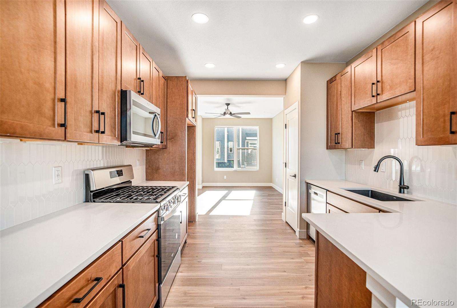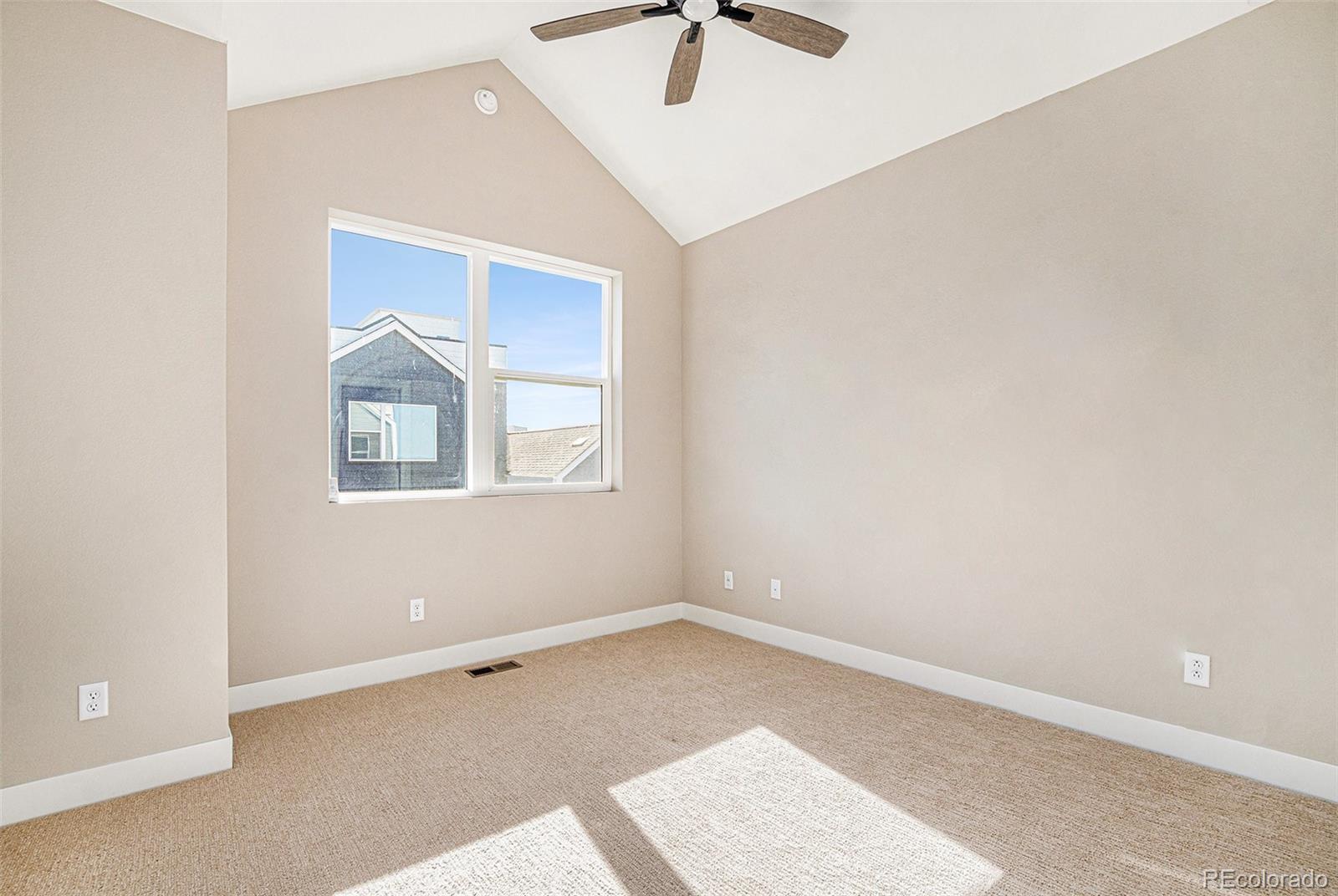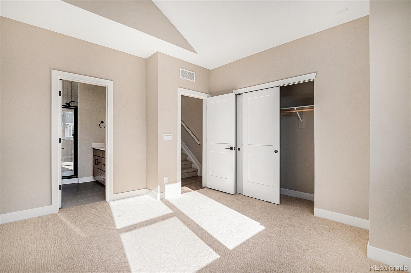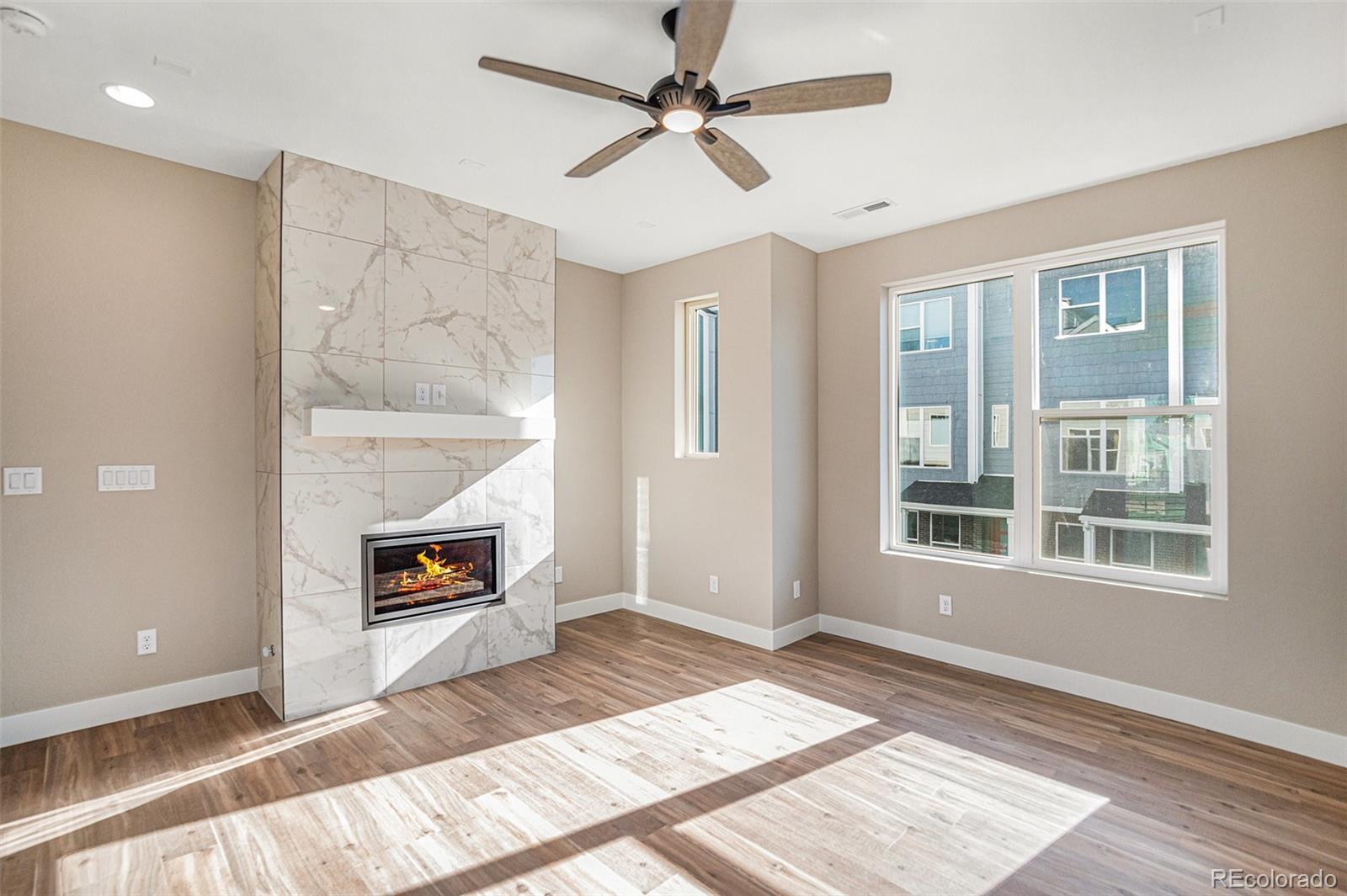Move-in ready, new construction! Lower your monthly mortgage payments with Seller’s generous Mortgage Rate Buy Down incentive. Reduce your required initial investment with a $17,500 Down Payment Assistance Grant Program. Contact Community Sales Manager to learn more about both offers. This energy-efficient 2-bedroom, 3.5-bathroom townhome with flex space/office and smart home technology offers a modern, low-maintenance lifestyle. Enter through the spacious one-car attached garage and past the versatile flex space and ¾ bathroom—ideal for an office, gym, or music room. Upstairs, the open-concept main level is filled with natural light from a large sliding glass door and picture window. The gourmet kitchen features a five-burner gas range, and you can enjoy meals at the breakfast bar, dining room, or cozy up by the living room fireplace. Relax outdoors on the front porch, covered balcony, or rooftop deck. The third level offers a spacious primary suite with a vaulted ceiling, picture window, and plenty of room for a king-size bed. The en-suite bathroom features dual vanities and an ample shower with a bench. The second bedroom includes its own attached full bathroom and walk-in closet. The laundry closet is conveniently located on this level. Located in the community, Prelude at TAVA Waters, built by local family-owned builder, Koelbel Communities, with 70+ years of experience. Prelude is located inside the gated community of TAVA Waters, formerly part of the original iconic Breakers Resort property. The community has been called an “oasis in the city” as it has a private lake, walking paths, large trees, and a resort-style amenity center with an outdoor pool and hot tub, and a state-of-the-art gym + rock climbing wall. It is located next to the Highline Canal, a couple minutes from Lowry, minutes to Cherry Creek North, Anschutz Medical Center, downtown Denver, DTC, and DIA.