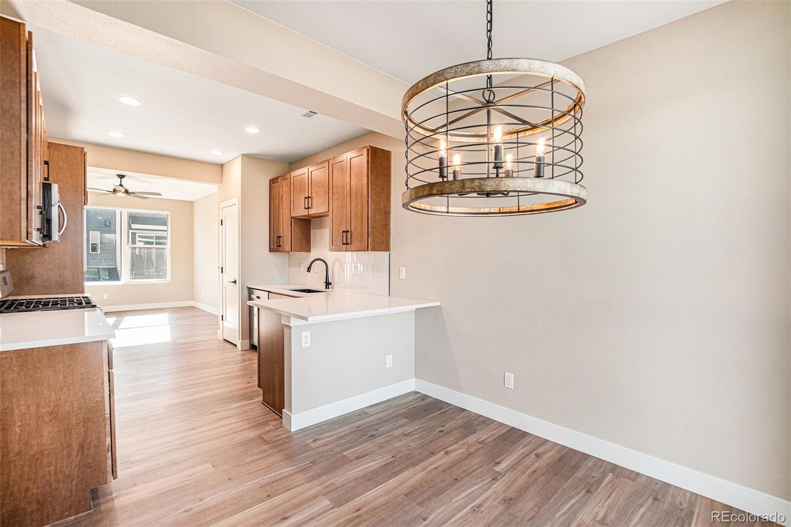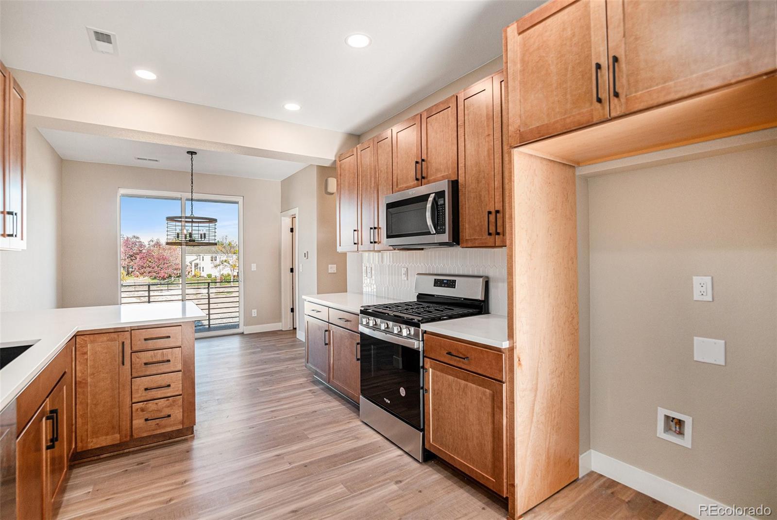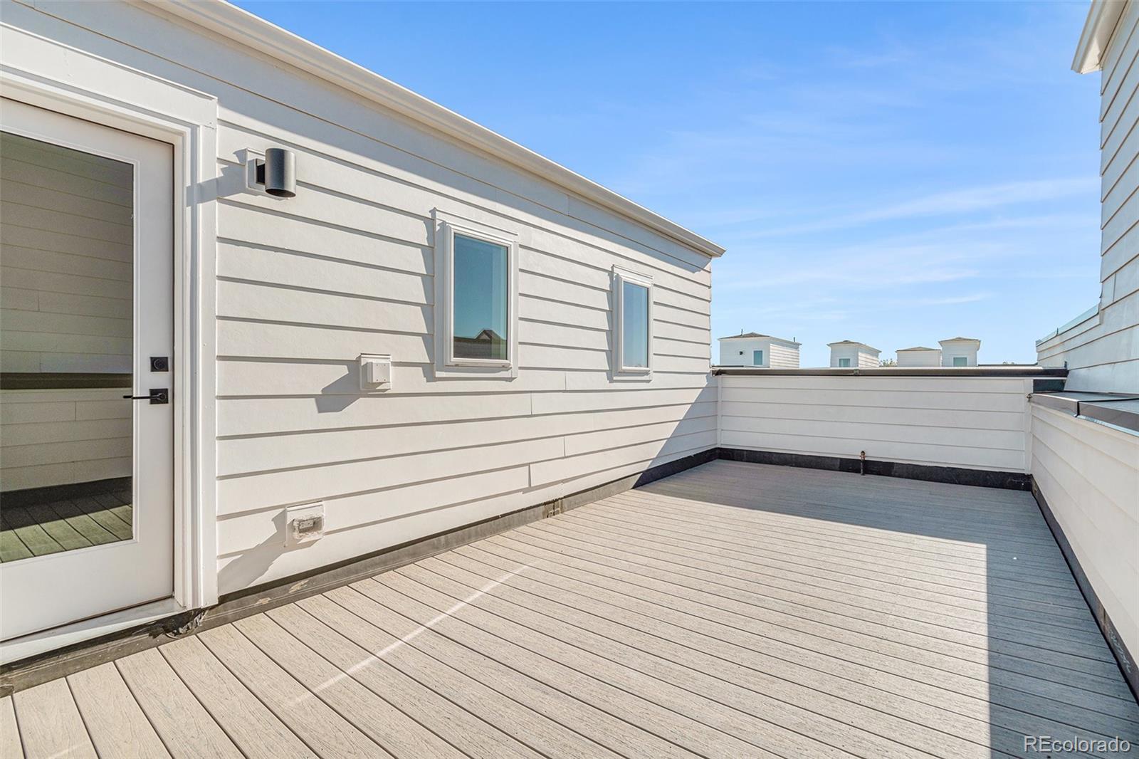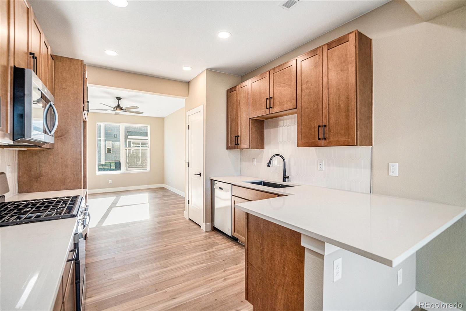 Move-in ready, new construction! Lower your monthly mortgage payments with Seller’s generous Mortgage Rate Buy Down incentive. Reduce your required initial investment with a $17,500 Down Payment Assistance Grant Program. Contact Community Sales Manager to learn more about both offers. This energy-efficient 2-bedroom, 3.5-bathroom townhome with flex space/office and smart home technology offers a modern, low-maintenance lifestyle. Enter through the spacious one-car attached garage and past the versatile flex space and ¾ bathroom—ideal for an office, gym, or music room. Upstairs, the open-concept main level is filled with natural light from a large sliding glass door and picture window. The gourmet kitchen features a five-burner gas range, and you can enjoy meals at the breakfast bar, dining room, or cozy up by the living room fireplace. Relax outdoors on the front porch, covered balcony, or rooftop deck. The third level offers a spacious primary suite with a vaulted ceiling, picture window, and plenty of room for a king-size bed. The en-suite bathroom features dual vanities and an ample shower with a bench. The second bedroom includes its own attached full bathroom and walk-in closet. The laundry closet is conveniently located on this level. Located in the community, Prelude at TAVA Waters, built by local family-owned builder, Koelbel Communities, with 70+ years of experience. Prelude is located inside the gated community of TAVA Waters, formerly part of the original iconic Breakers Resort property. The community has been called an “oasis in the city” as it has a private lake, walking paths, large trees, and a resort-style amenity center with an outdoor pool and hot tub, and a state-of-the-art gym + rock climbing wall. It is located next to the Highline Canal, a couple minutes from Lowry, minutes to Cherry Creek North, Anschutz Medical Center, downtown Denver, DTC, and DIA.