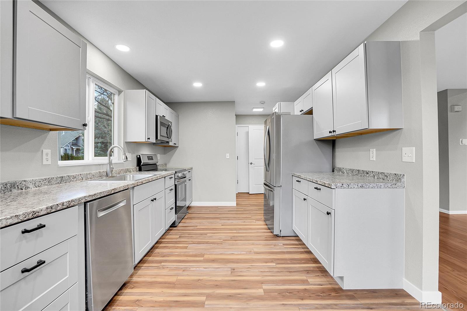 Spacious 5-bed, 3.5-bath single-family home with an attached 2-car garage and fully fenced yard. Enjoy an inviting living area with a cozy fireplace and dining room. The beautifully remodeled kitchen features modern finishes, ample storage, and new stainless steel appliances. There is an additional 1/2 bath finishing off the main level. When you proceed upstairs you will see the laundry and 3 generously sized bedrooms with 2 full baths. In the basement you will find an additional 2 large bedrooms and a full bath with heated, jetted tub. The fenced yard is perfect for outdoor gatherings, pets, or play. Located in a desirable neighborhood close to schools, parks, and shopping. Ready for immediate move-in! Washer and dryer included pets ok with a $300 pet deposit and $57 monthly pet rent. Apply at www.denverrentals.info. HB23-1099 Portable Tenant Screening Reports (PTSR): 1) Applicant has the right to provide MHT Property Management with a PTSR that is not more than 30 days old, as defined in § 38-12-902(2.5), Colorado Revised Statutes; and 2) if Applicant provides MHT Property Management with a PTSR, MHT Property Management is prohibited from: a) charging Applicant a rental application fee; or b) charging Applicant a fee for MHT Property Management o access or use the PTSR. If Applicant provides MHT Property Management with a PTSR: a) the PTSR must be available to MHT Property Management by a consumer reporting agency/third-party website that regularly engages in the business of providing consumer reports; 2) the PTSR must comply with all state and federal laws pertaining to use and disclosure of information contained in a consumer report by a consumer reporting agency; and c) Applicant certifies that there has not been a material change in the information in the PTSR, including the Applicant's name, address, bankruptcy status, criminal history, or eviction history, since the PTSR was generated.